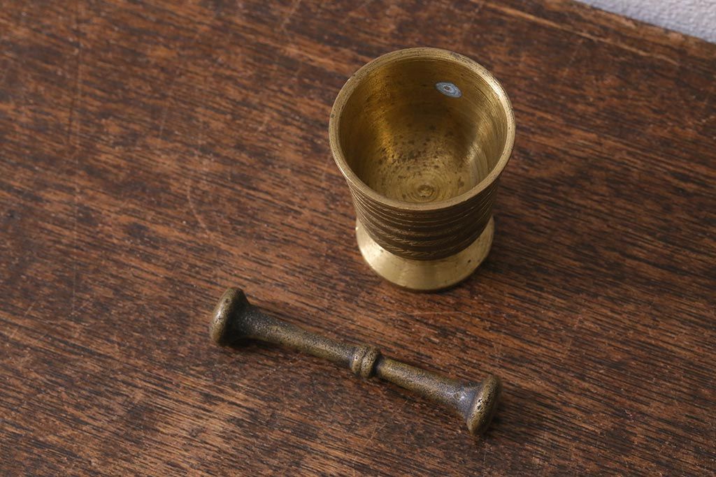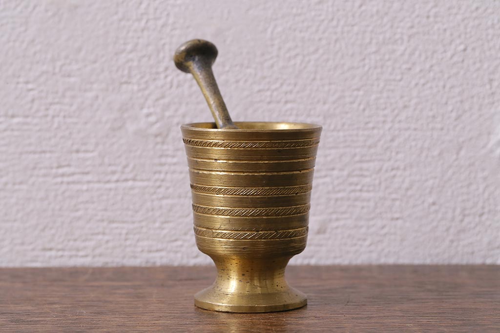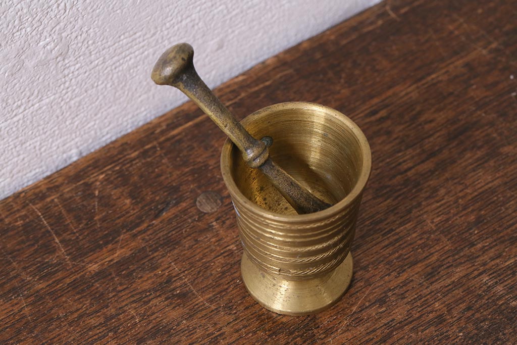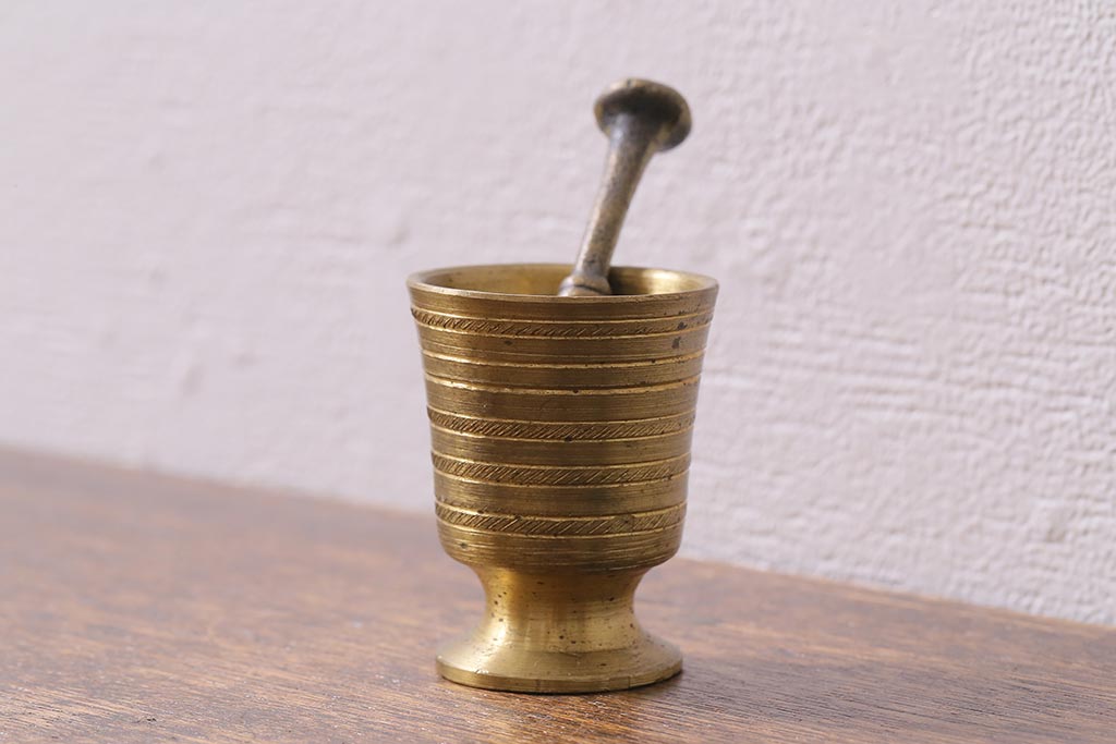 ヴィンテージ雑貨 フランスビンテージ 真鍮製のスパイスマッシャー(すり鉢、すりこぎ)(R-041477)