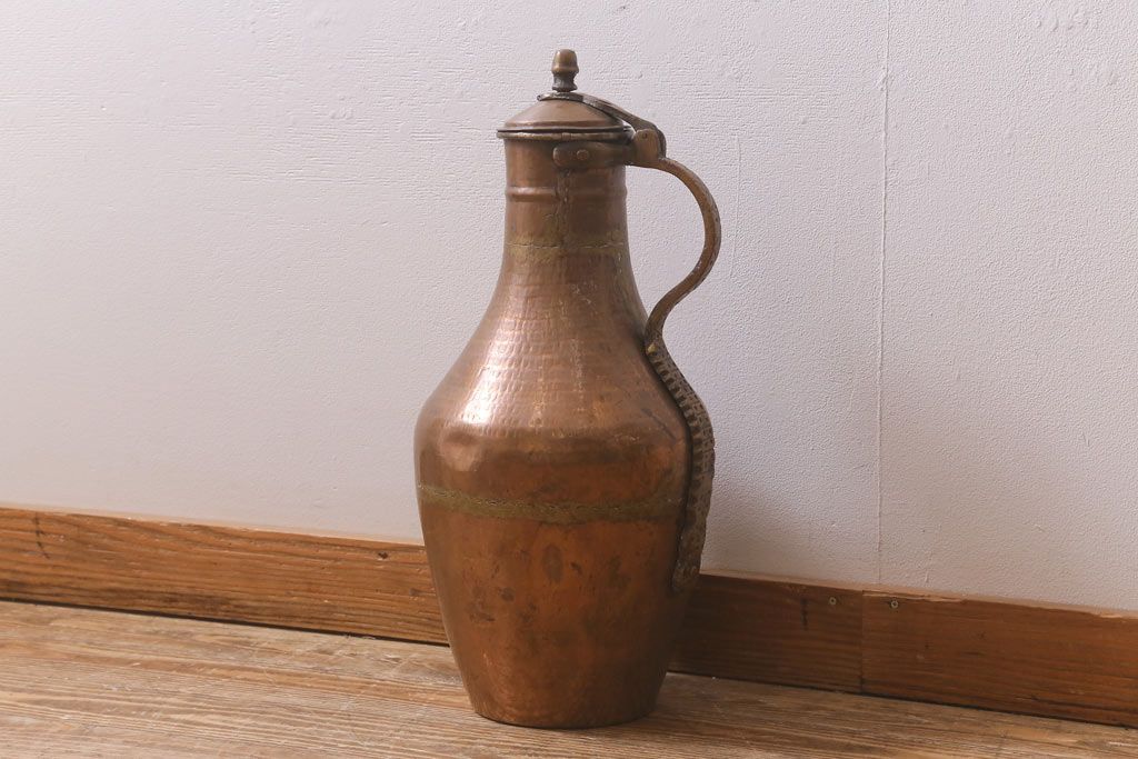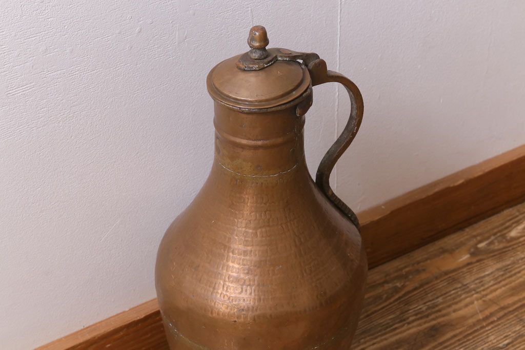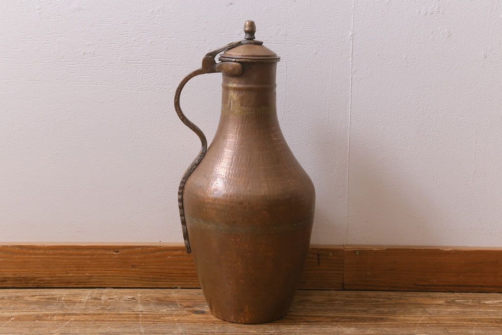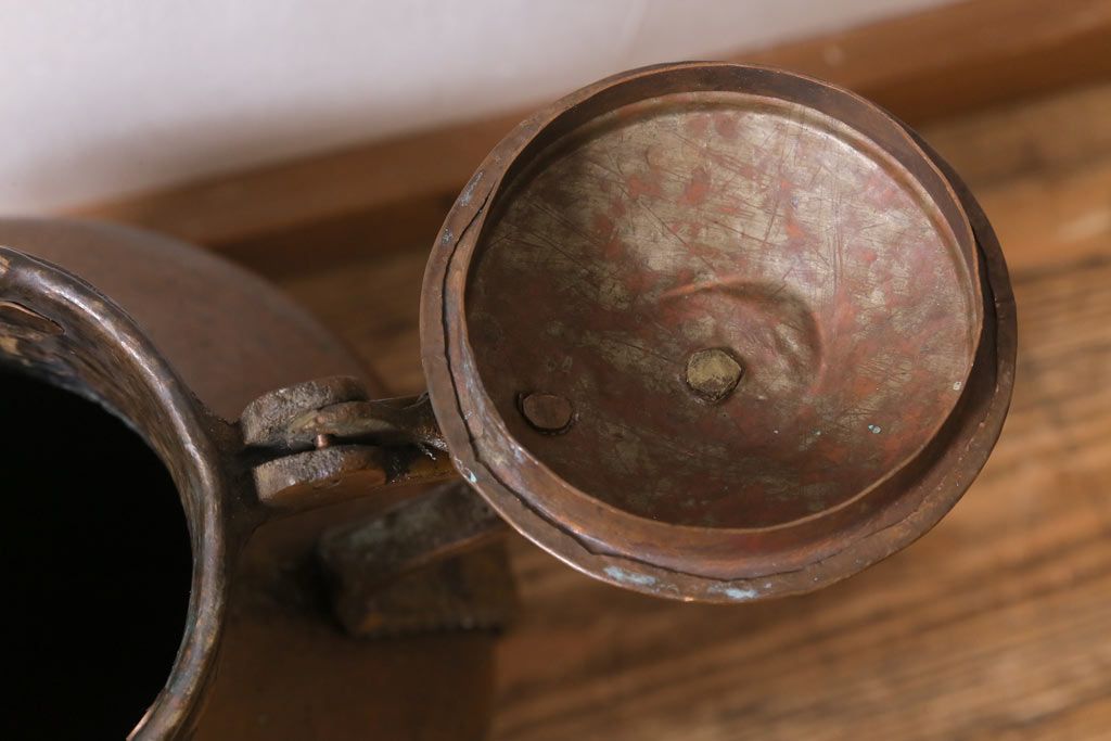 アンティーク雑貨 フランス 蓋付き アンティークスタイルを引き立てる銅製の水瓶(ジャグ、ピッチャー)(R-041465)
