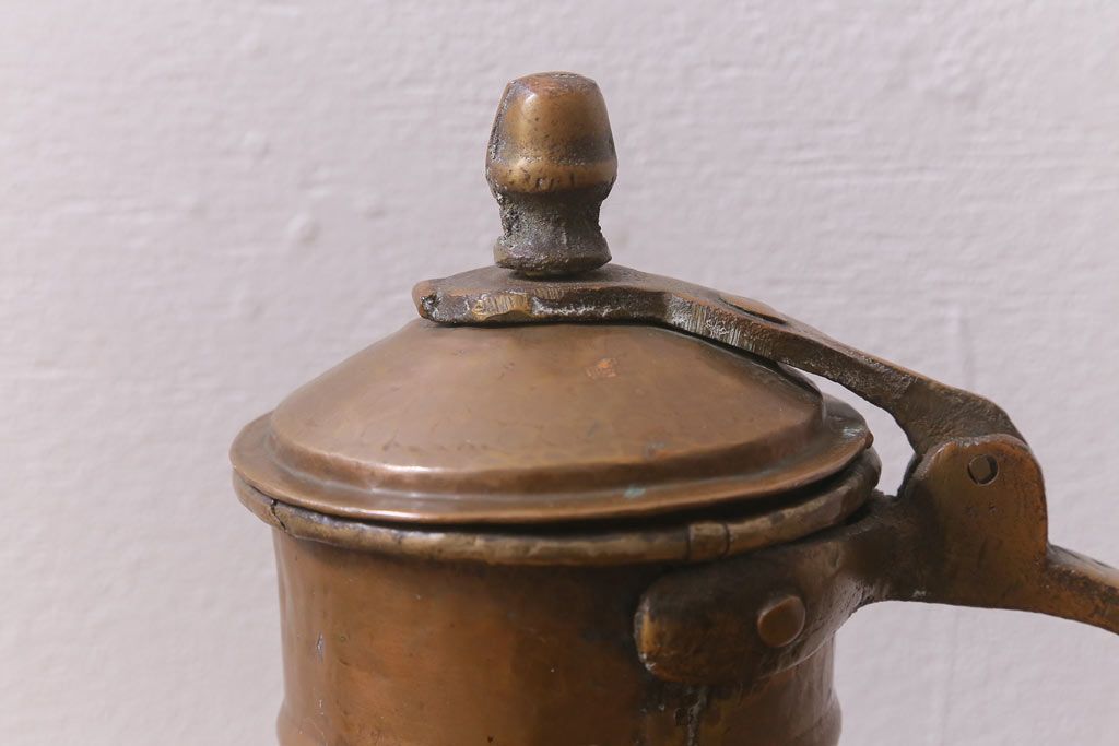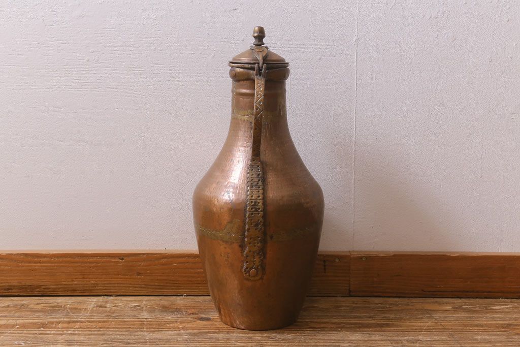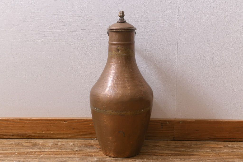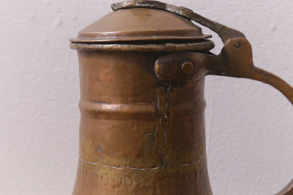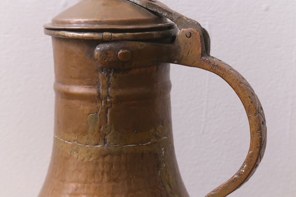 アンティーク雑貨 フランス 蓋付き アンティークスタイルを引き立てる銅製の水瓶(ジャグ、ピッチャー)(R-041465)