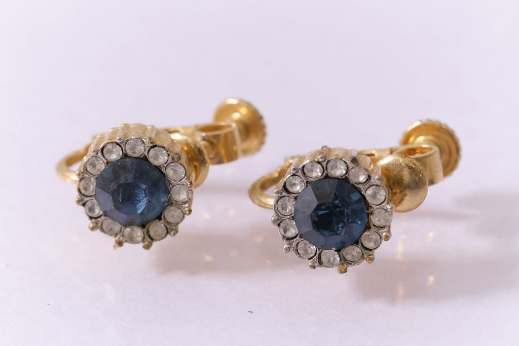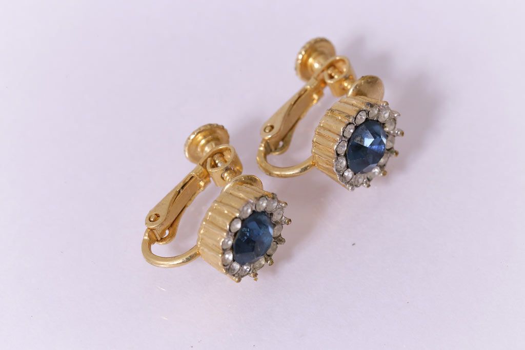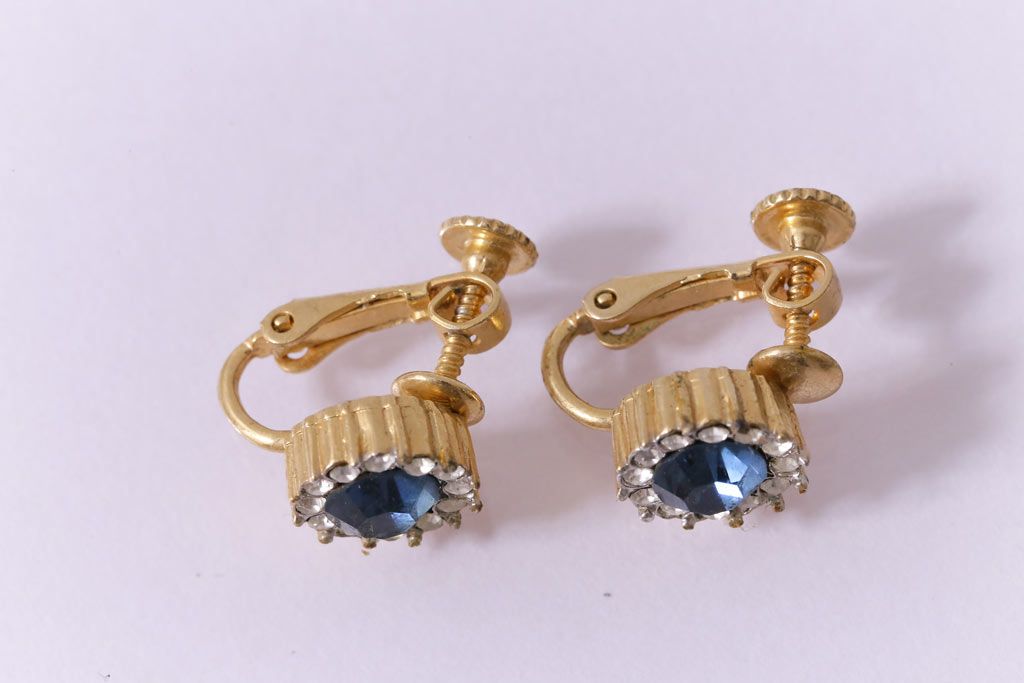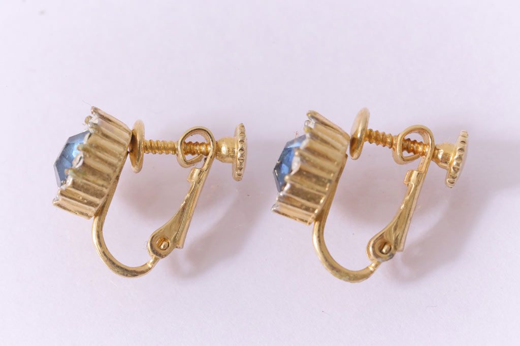 ヴィンテージ雑貨 ブルーのストーンが上品なビンテージイヤリング(アクセサリー)(R-041542)
