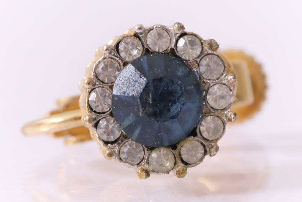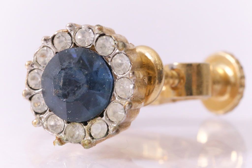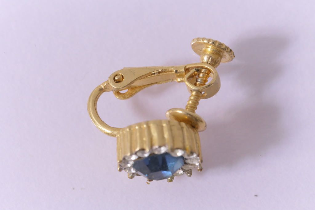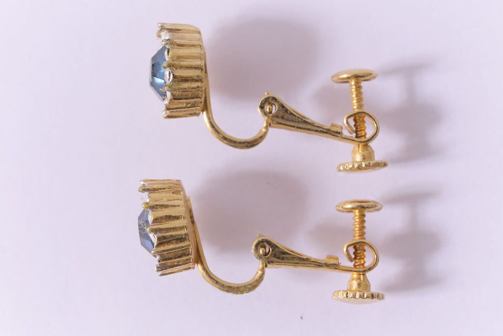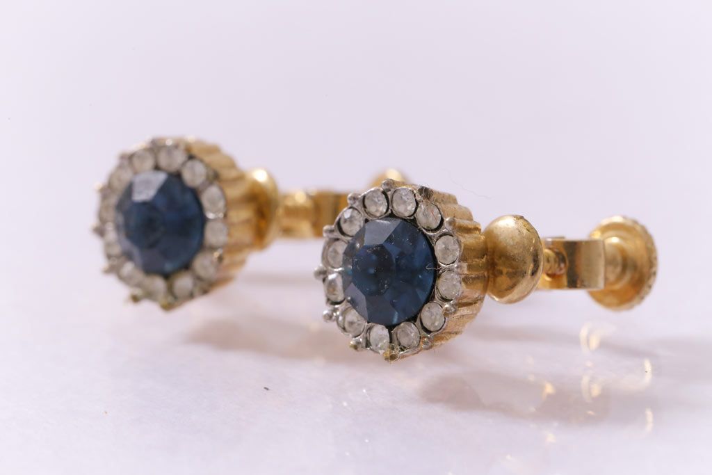 ヴィンテージ雑貨 ブルーのストーンが上品なビンテージイヤリング(アクセサリー)(R-041542)