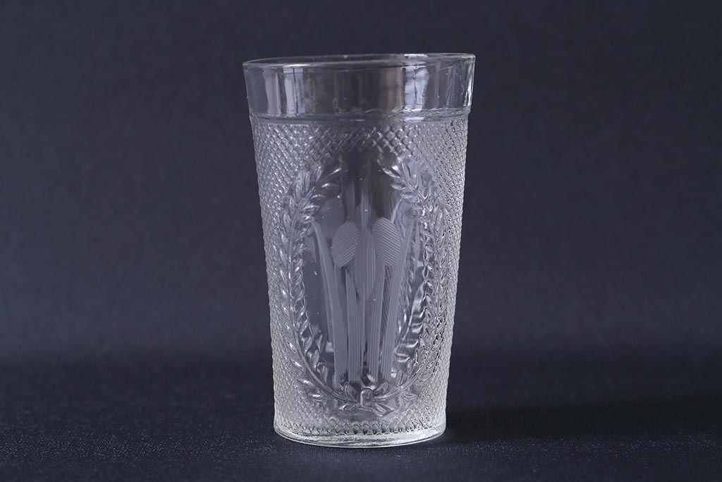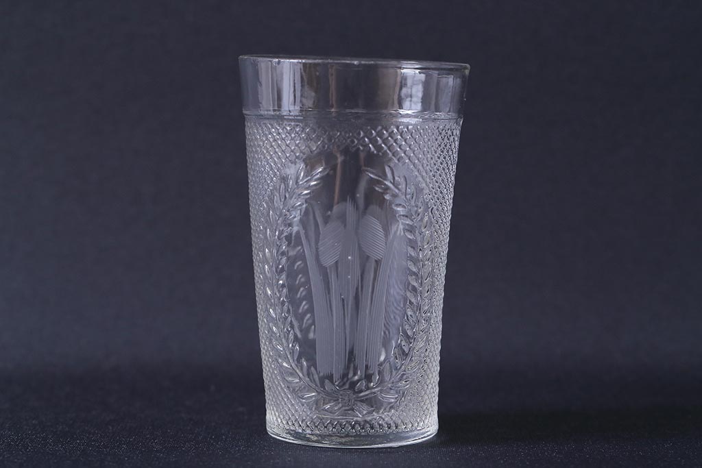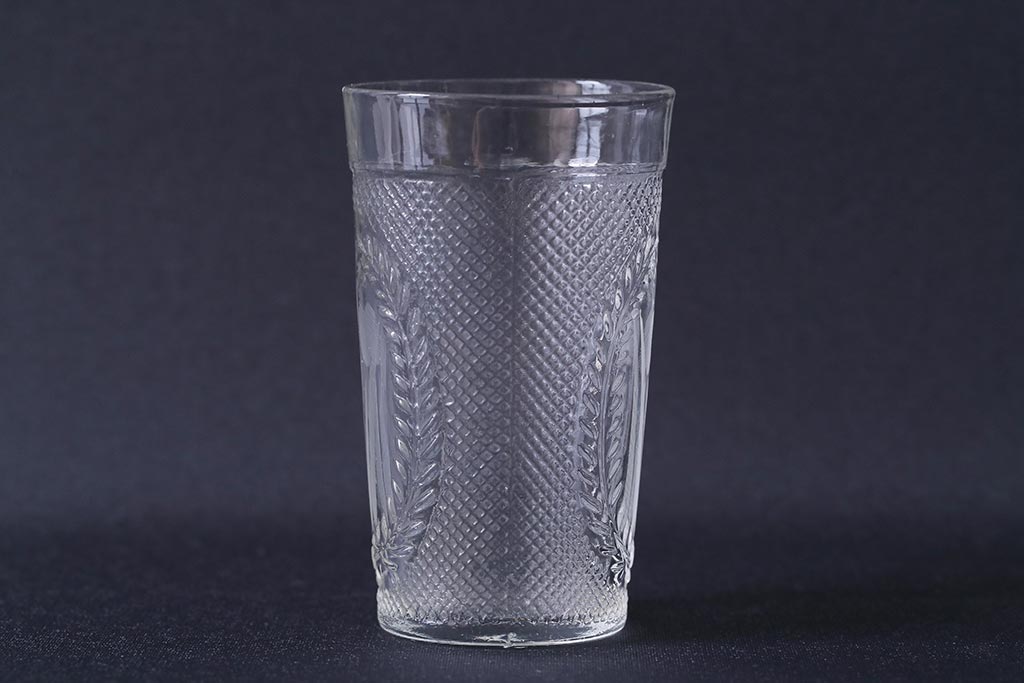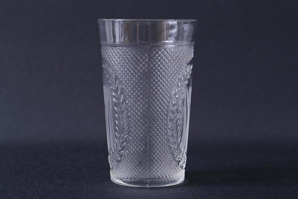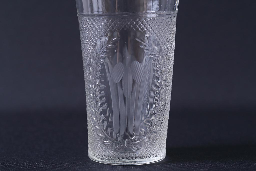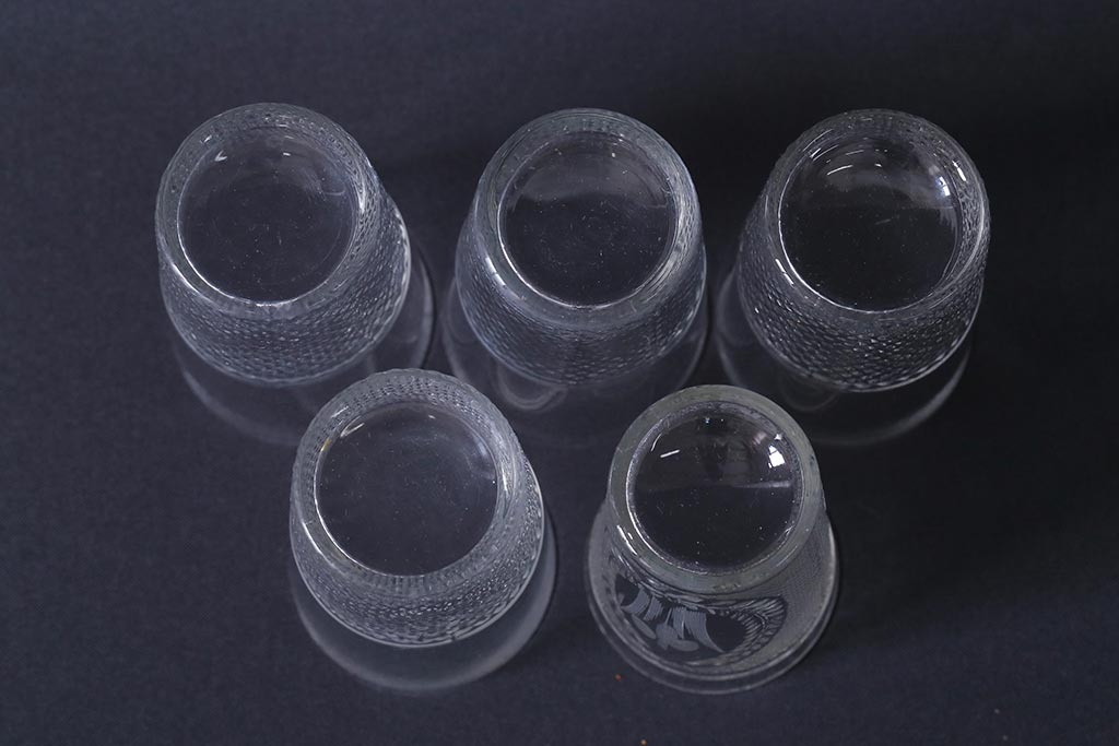 ラフジュ工房> 骨董・美術品> 骨董-ガラス食器 > アンティーク雑貨 レトロ プレスガラス 菖蒲(アヤメ)他 グラス5個セット(コップ、和ガラス)(R-041139)