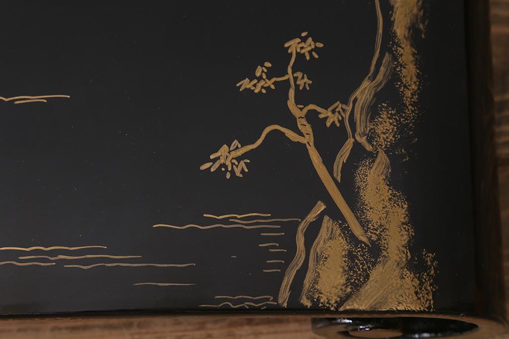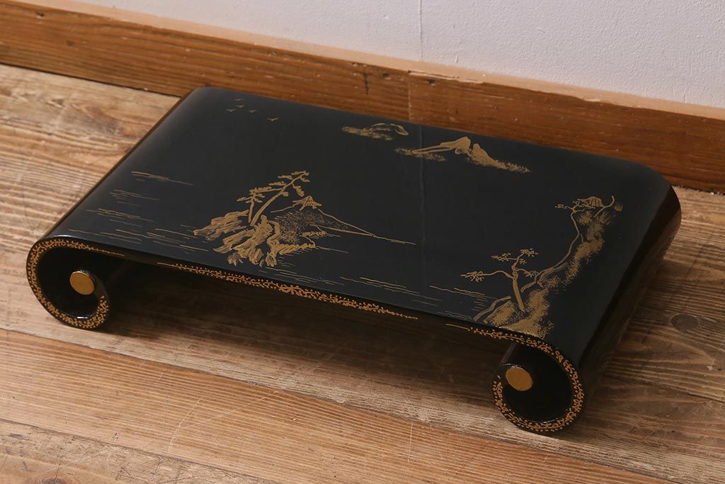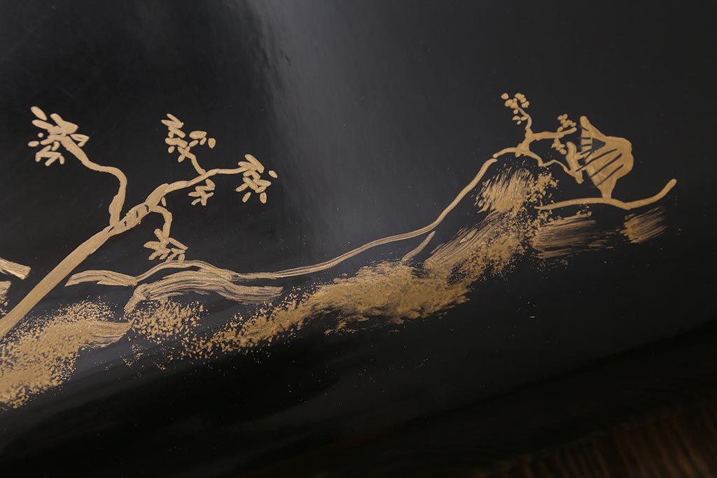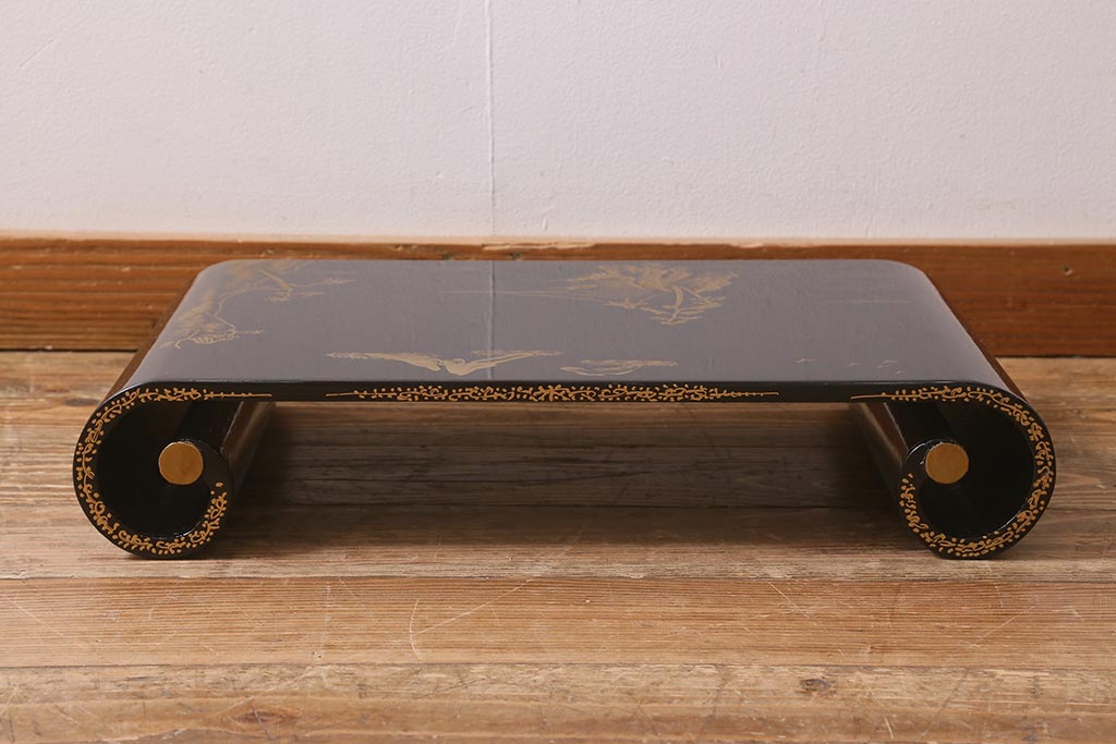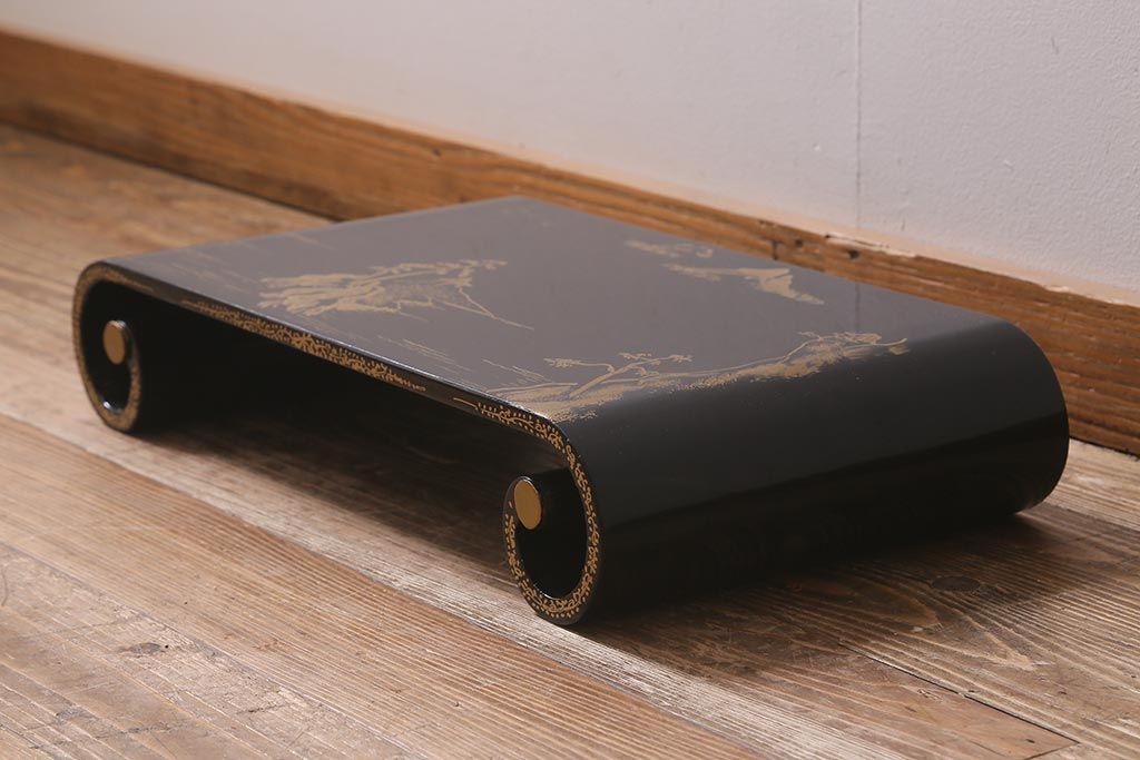 アンティーク雑貨 大正昭和初期 金蒔絵木製巻花台(漆器梨地)(R-041281)