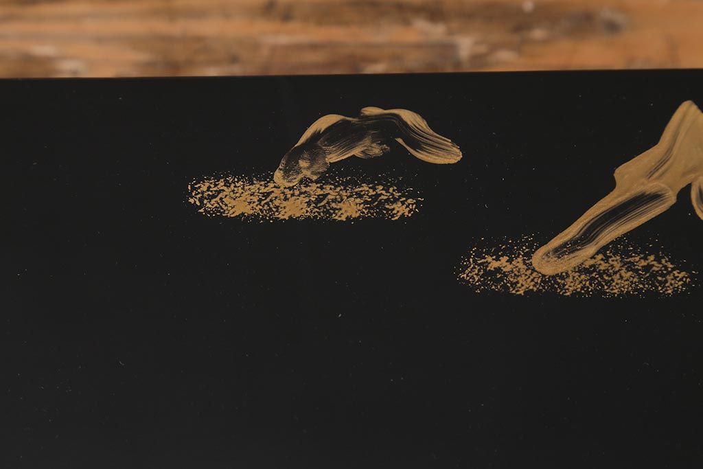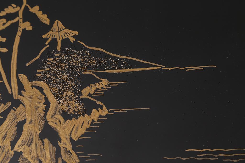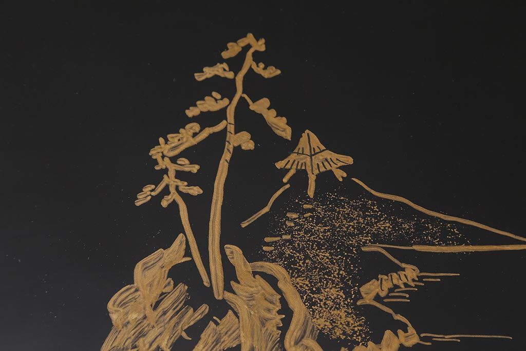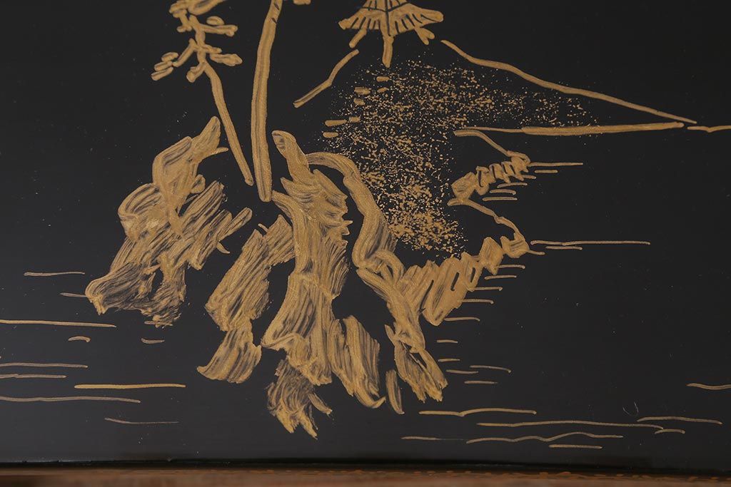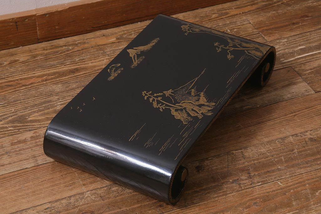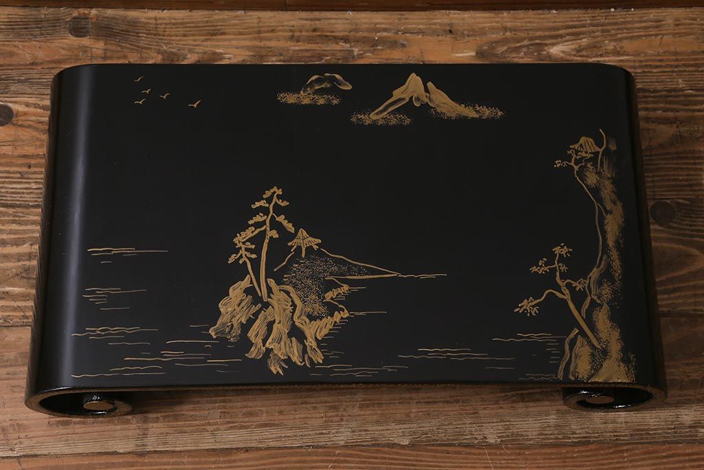 アンティーク雑貨 大正昭和初期 金蒔絵木製巻花台(漆器梨地)(R-041281)