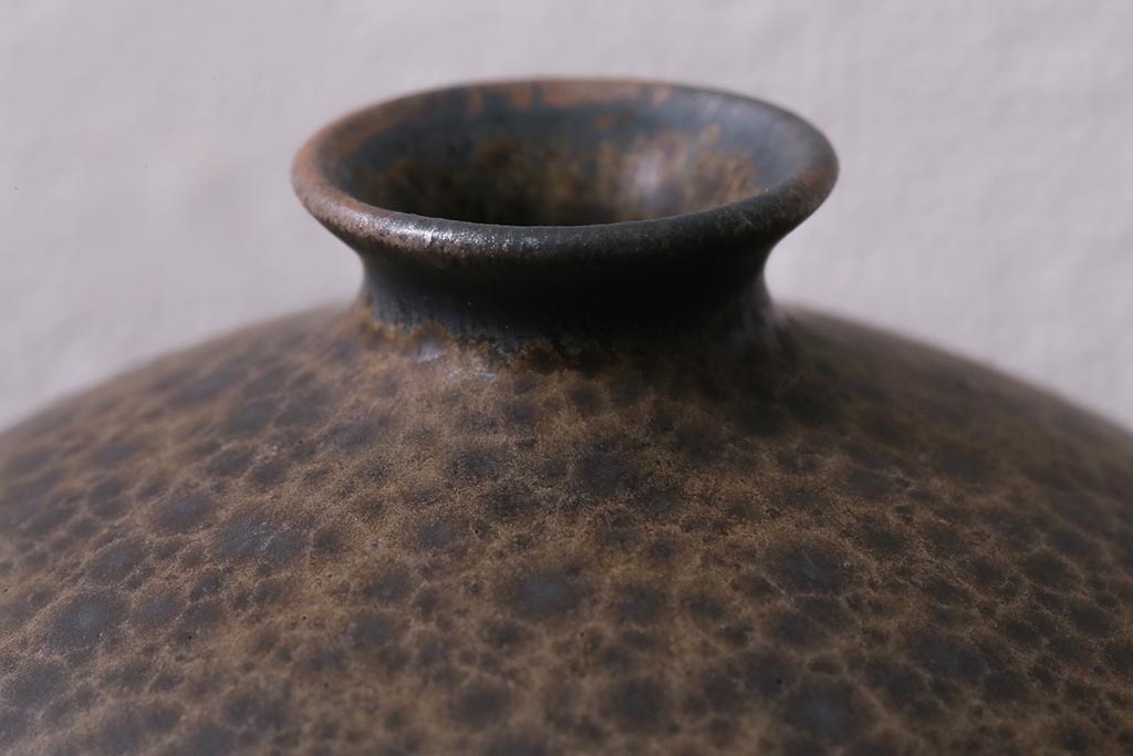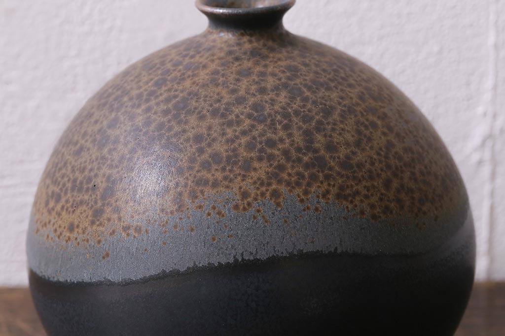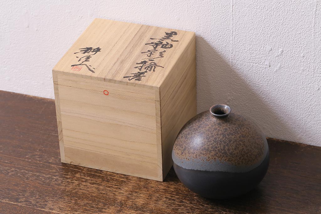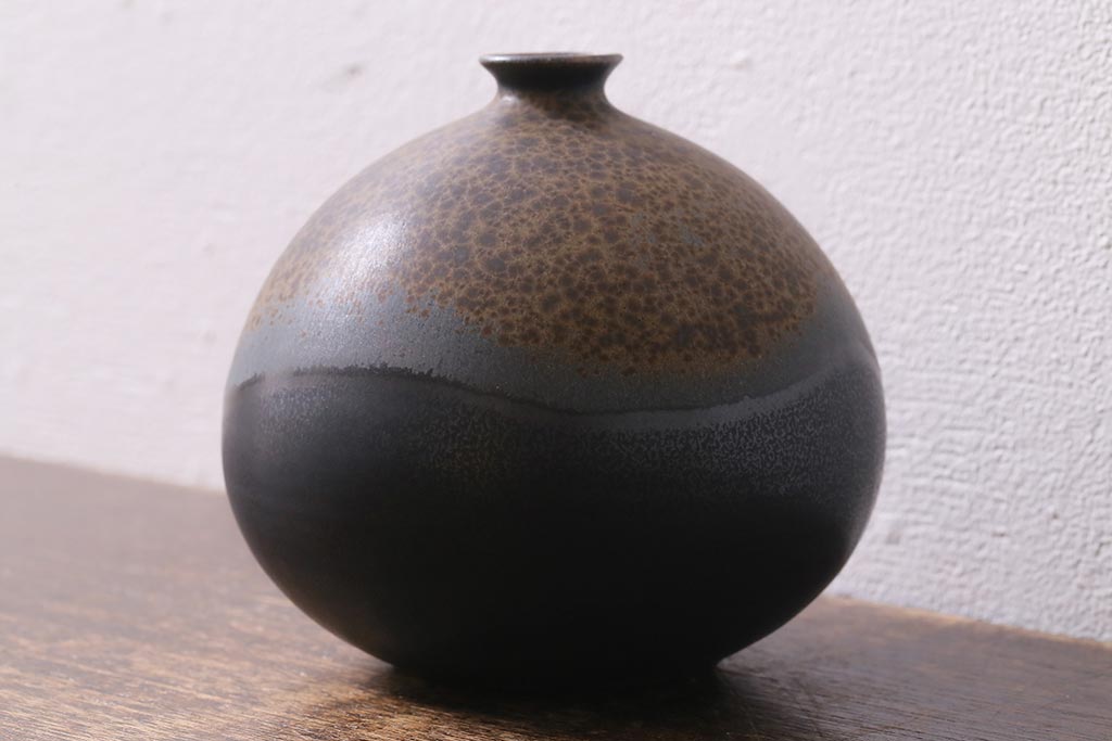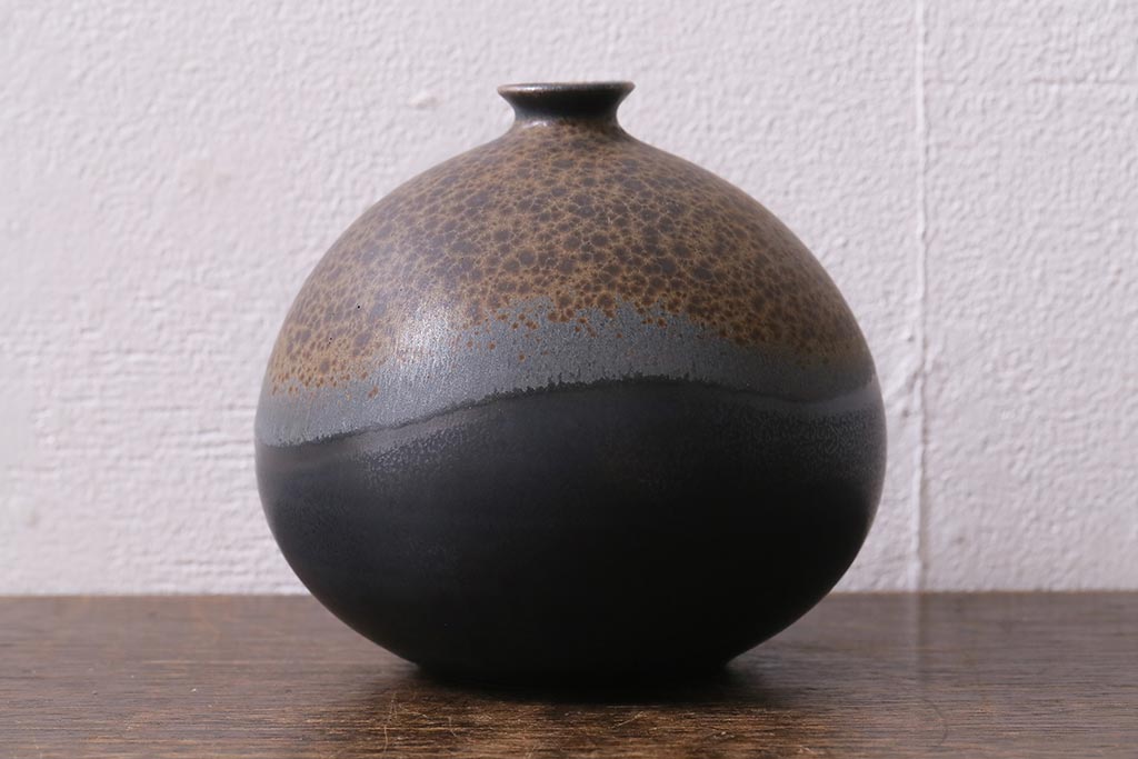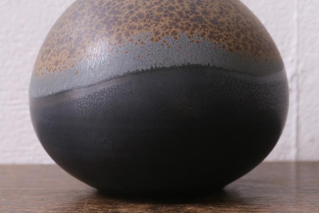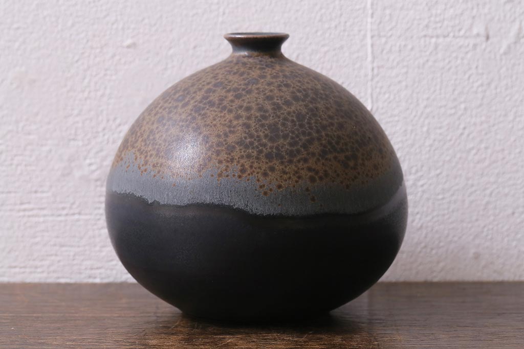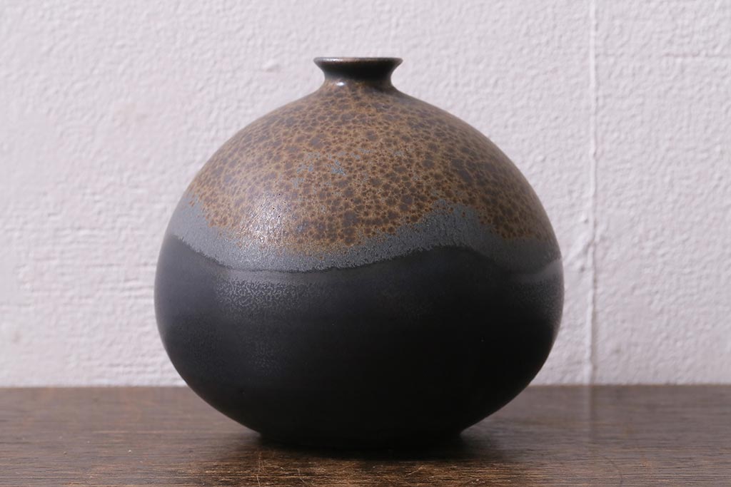 ラフジュ工房> 伝統工芸品> 笠間焼 > アンティーク雑貨 笠間焼 荒田耕治作 黒釉彩一輪挿花瓶(花器)(R-041294)