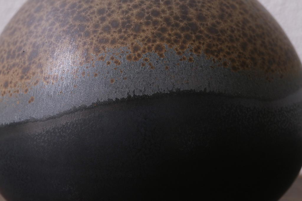 ラフジュ工房> 雑貨> ガラス瓶 > アンティーク雑貨 笠間焼 荒田耕治作 黒釉彩一輪挿花瓶(花器)(R-041294)