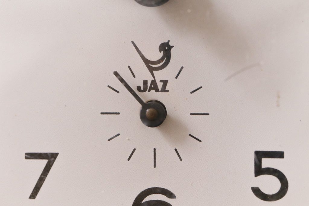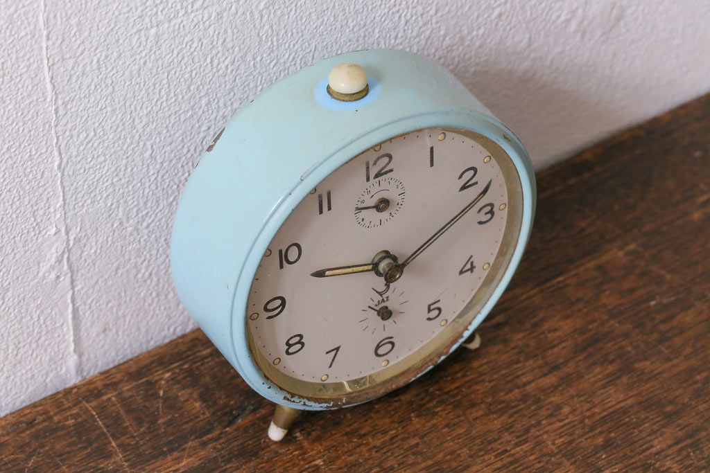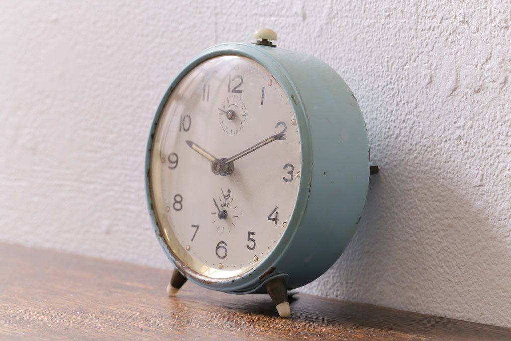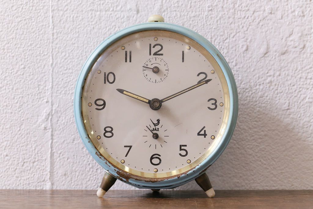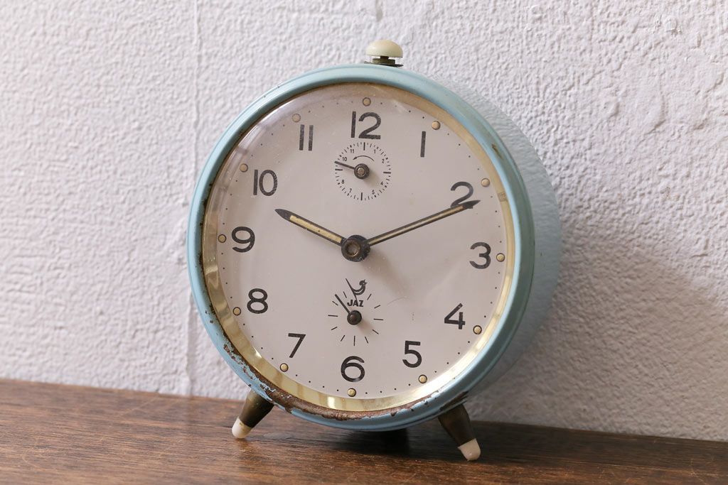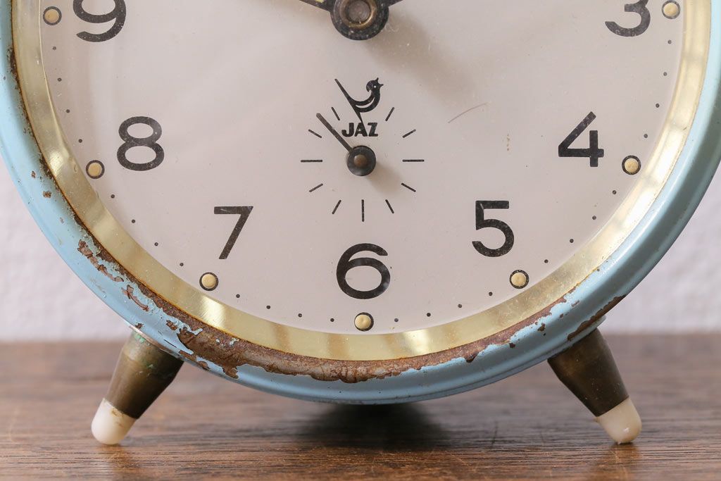 ジャンク品 アンティーク雑貨 フランスヴィンテージ JAZ社 レトロな風合いが魅力の目覚まし時計(置時計、枕時計、ビンテージ)(R-041548)