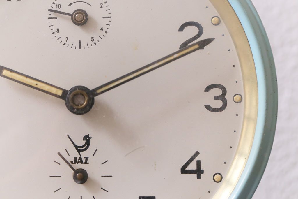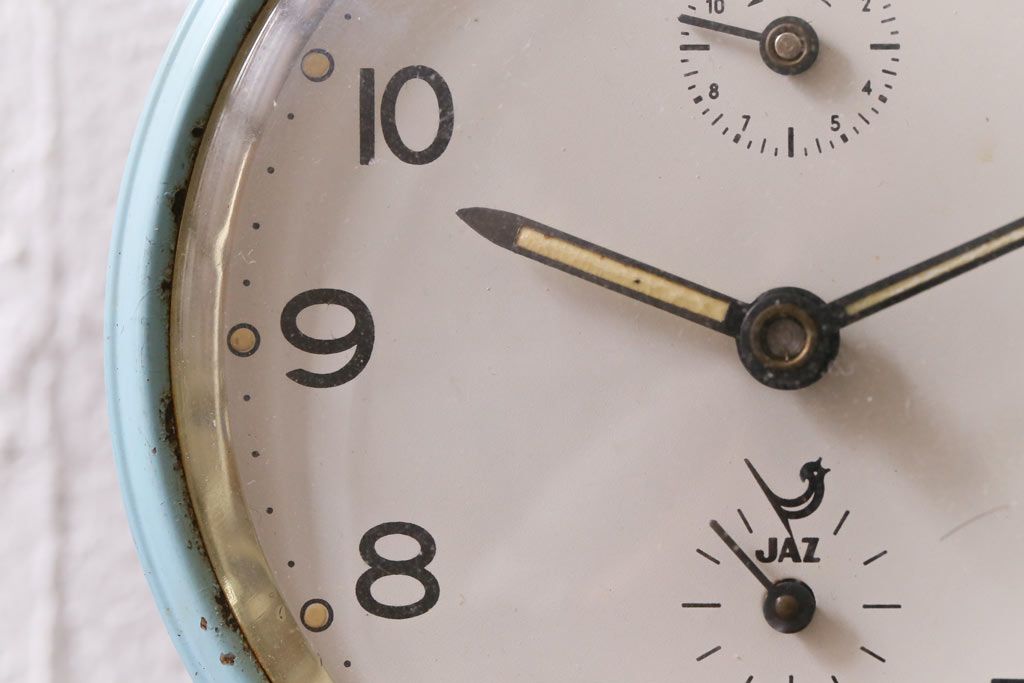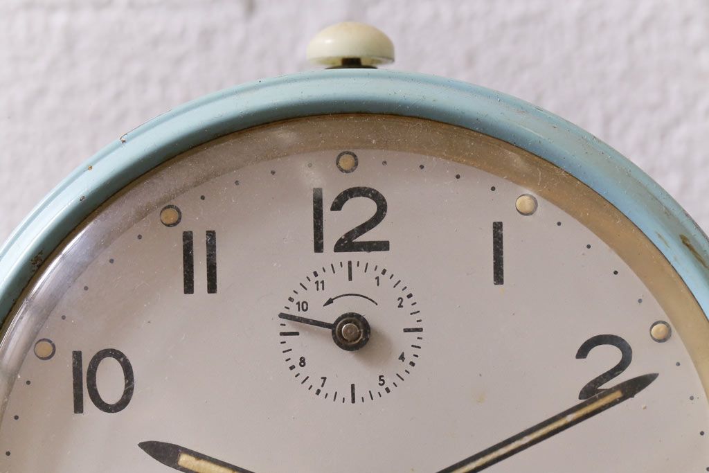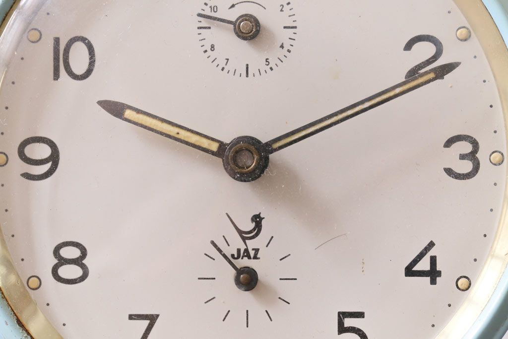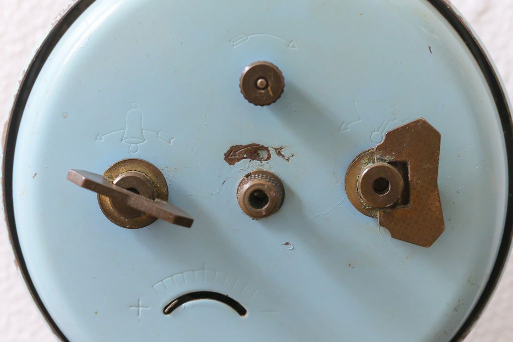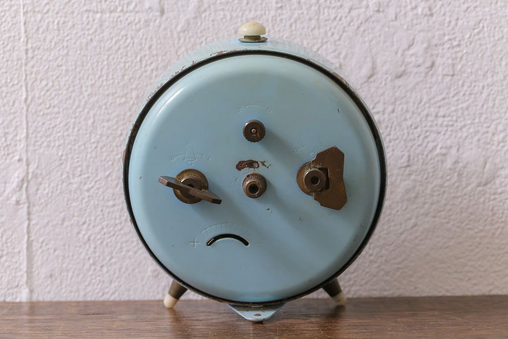 ジャンク品 アンティーク雑貨 フランスヴィンテージ JAZ社 レトロな風合いが魅力の目覚まし時計(置時計、枕時計、ビンテージ)(R-041548)