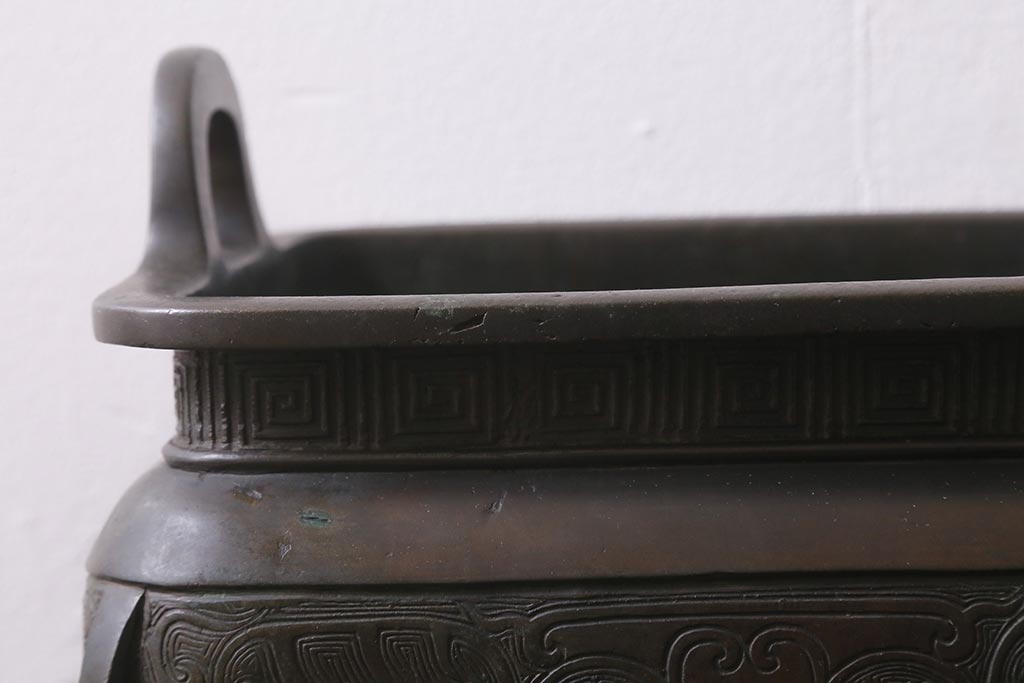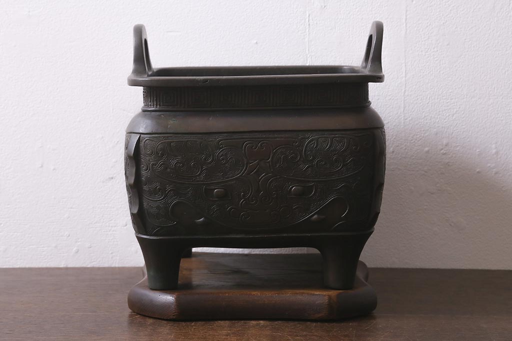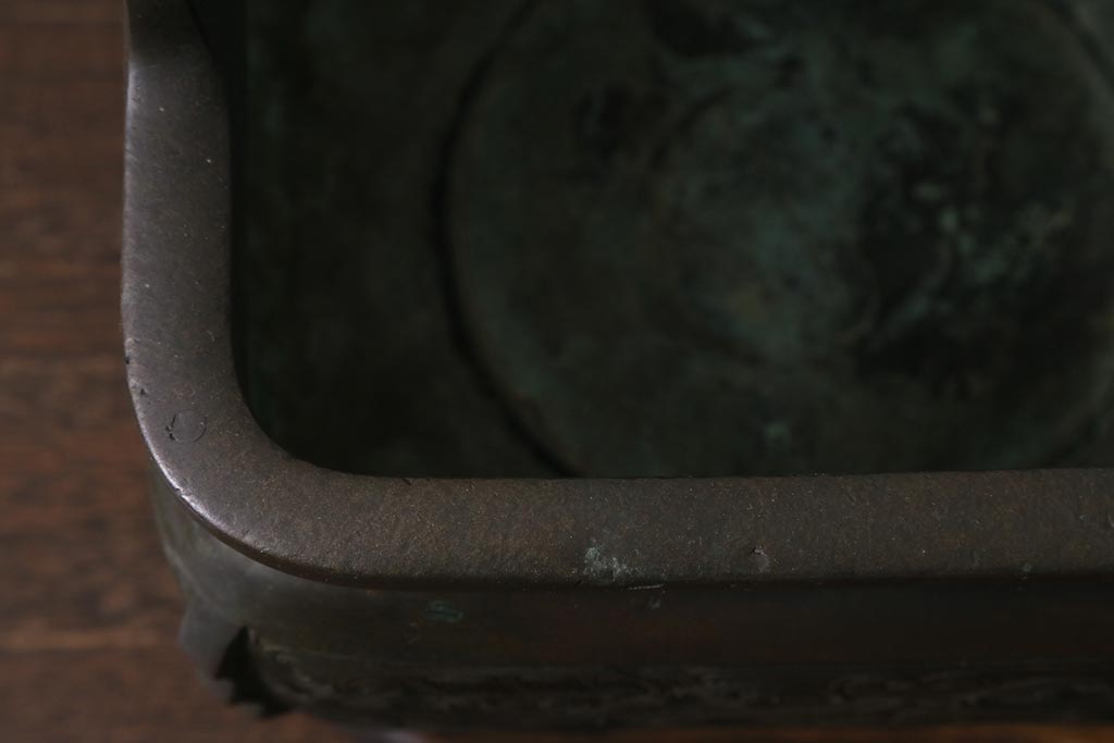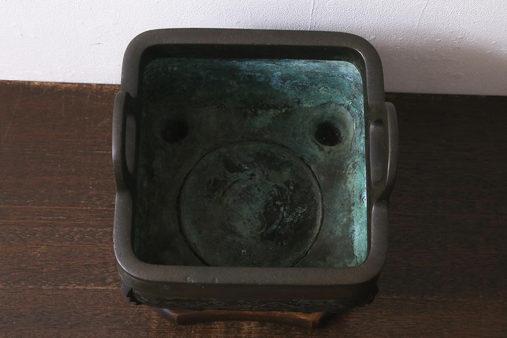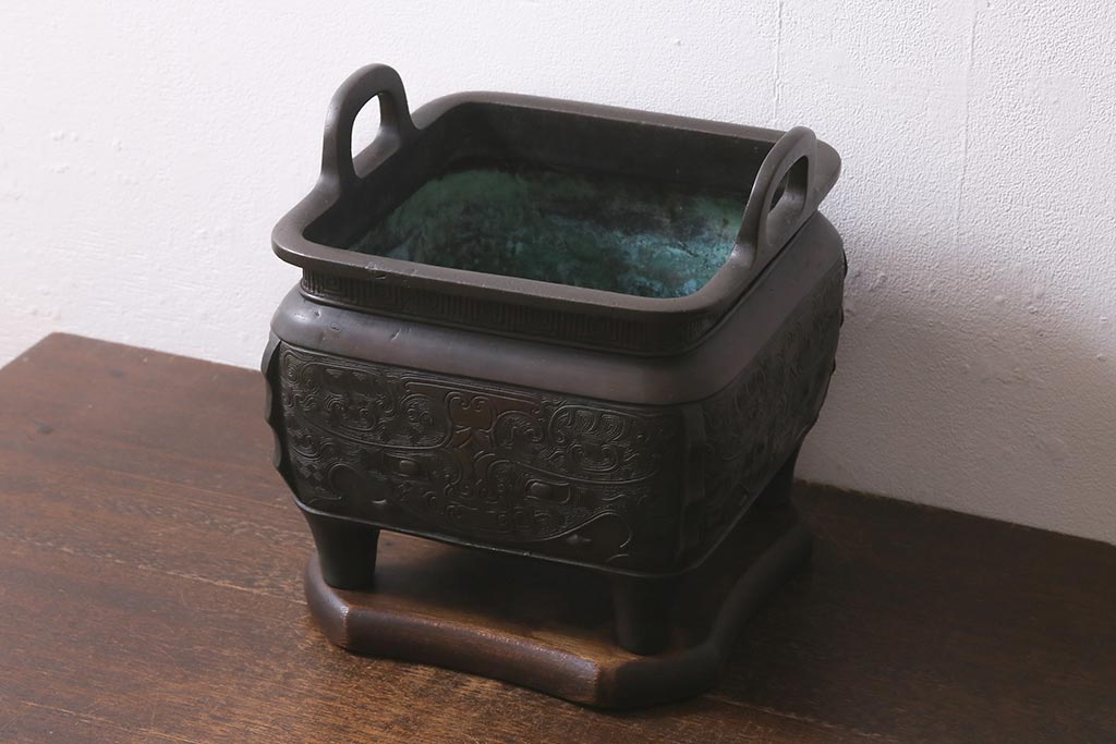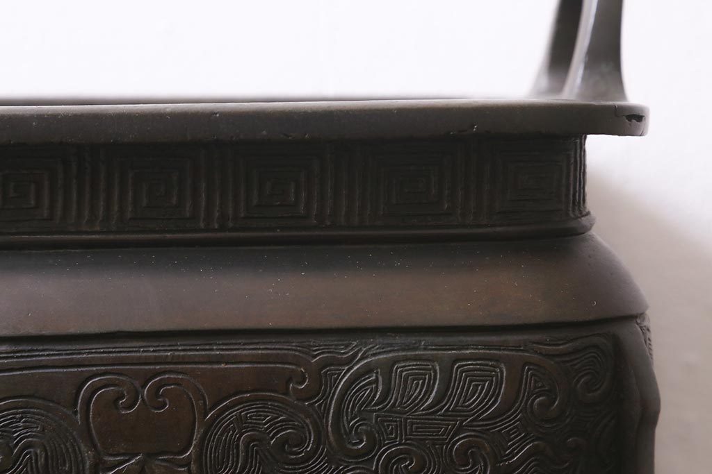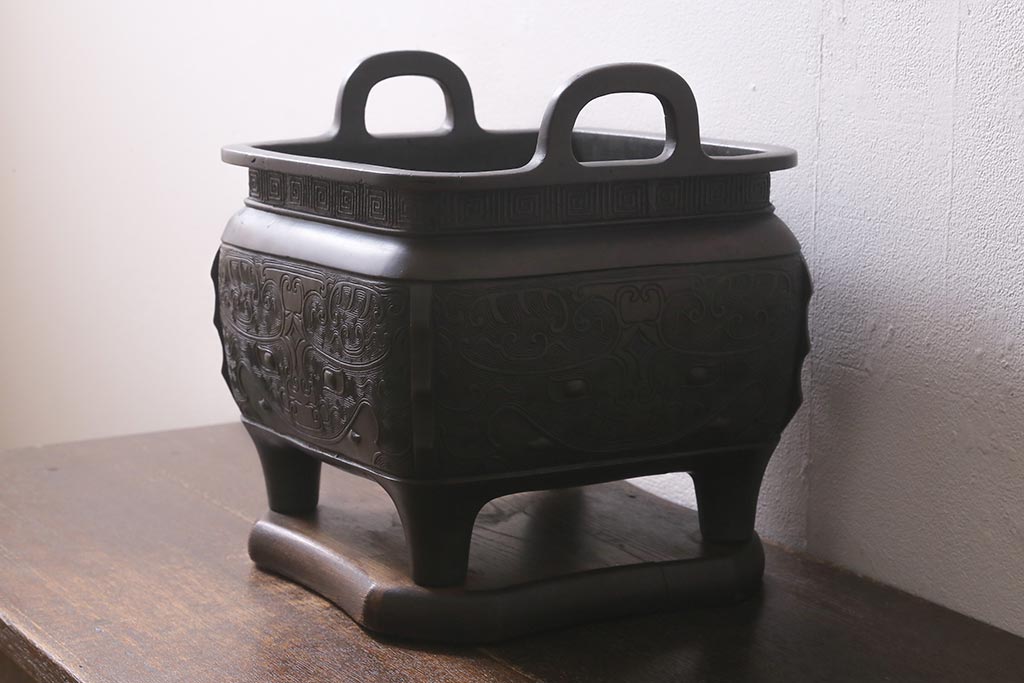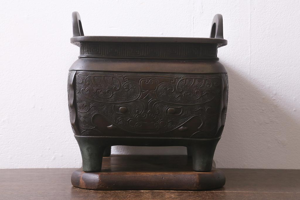 アンティーク雑貨 明治期 古銅耳付火鉢(中国香炉)(R-041283)