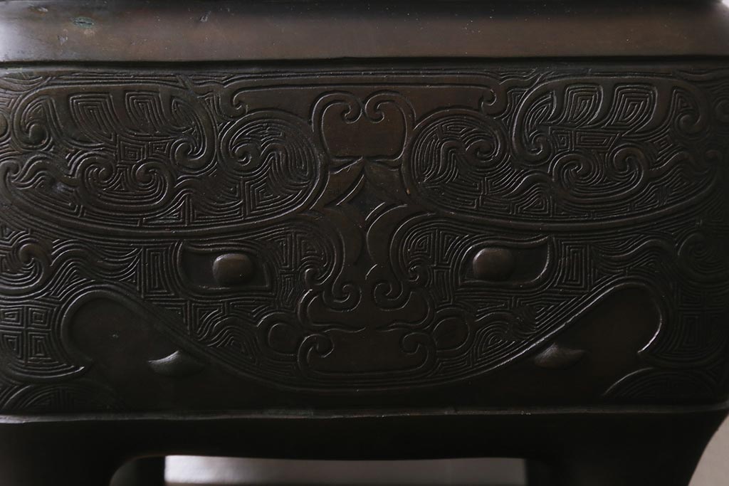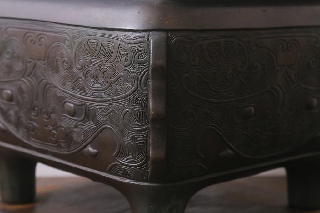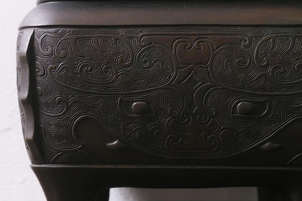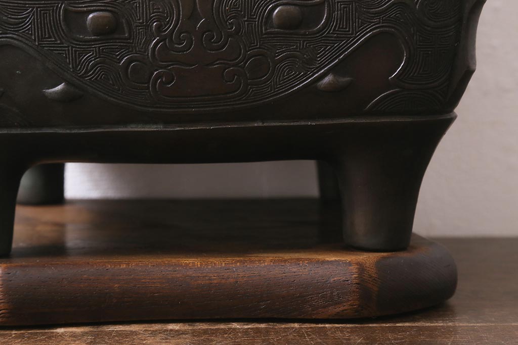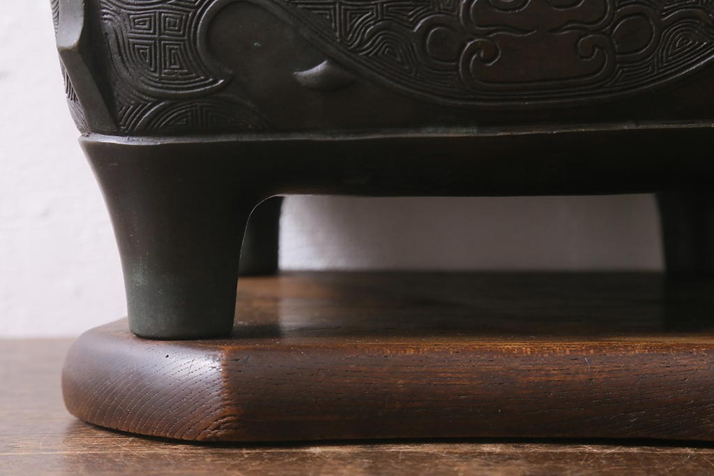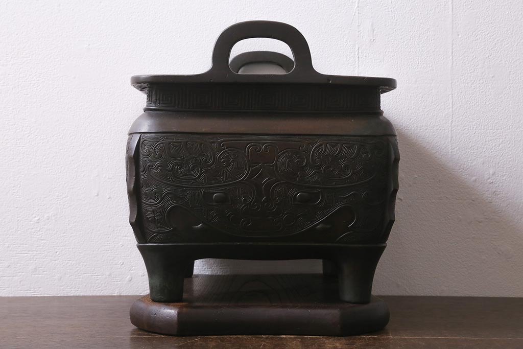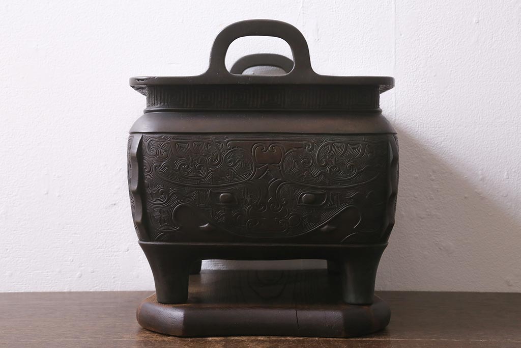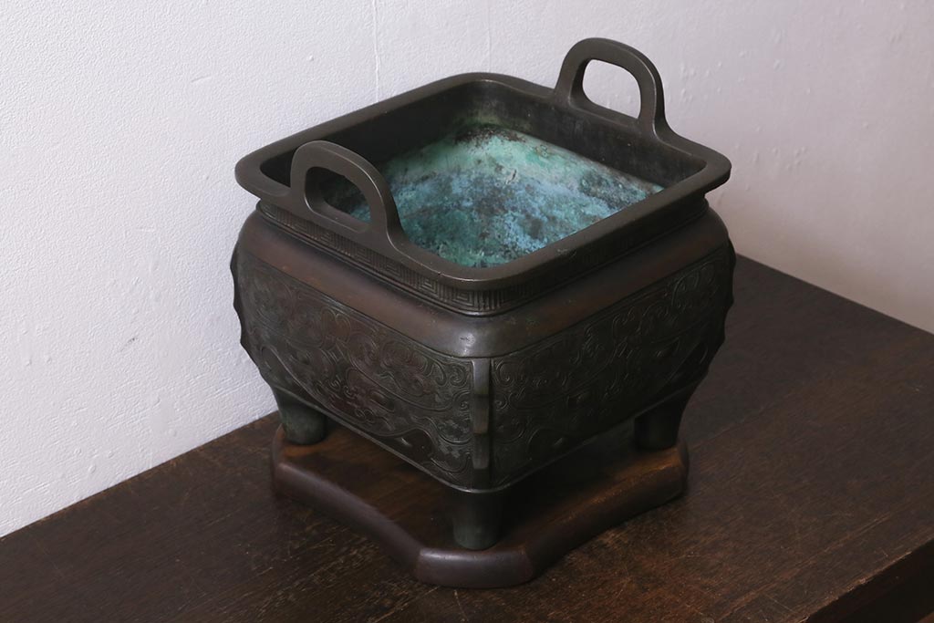 アンティーク雑貨 明治期 古銅耳付火鉢(中国香炉)(R-041283)