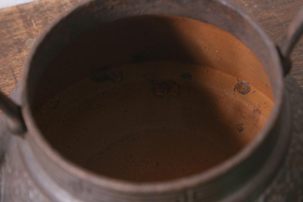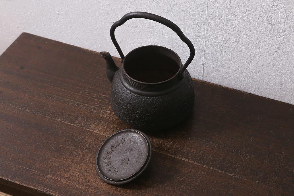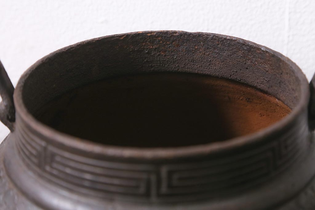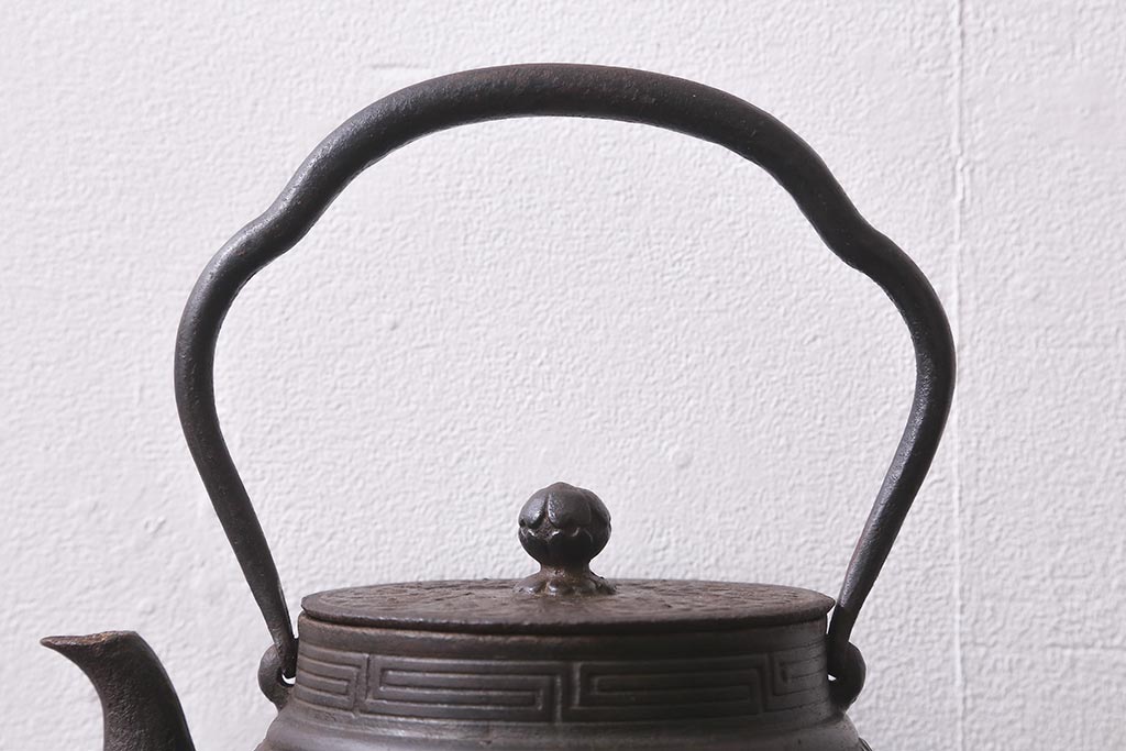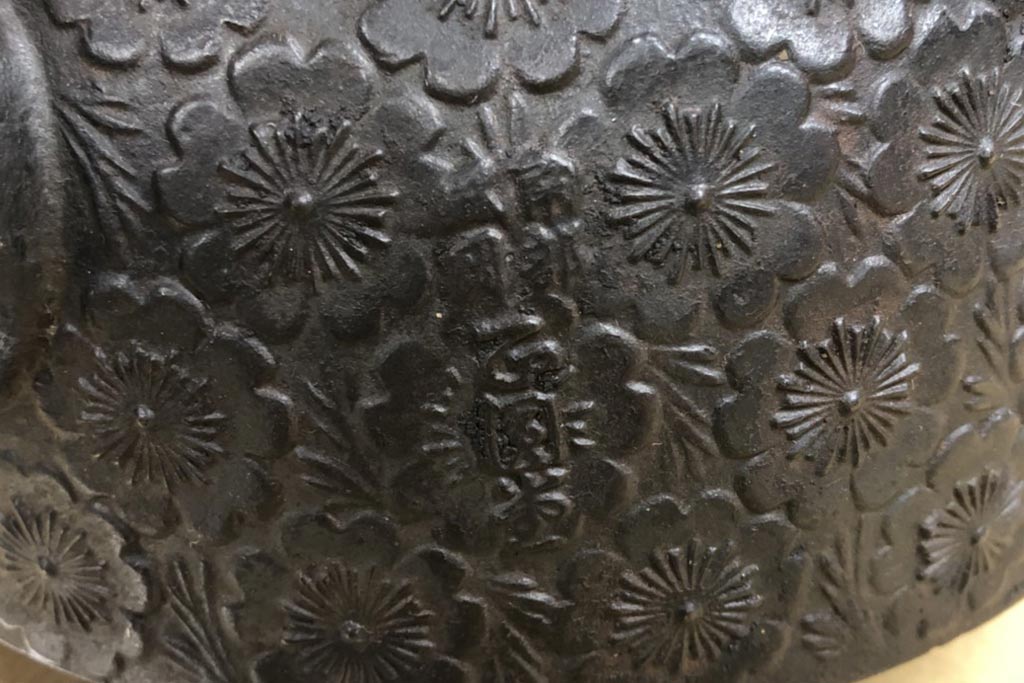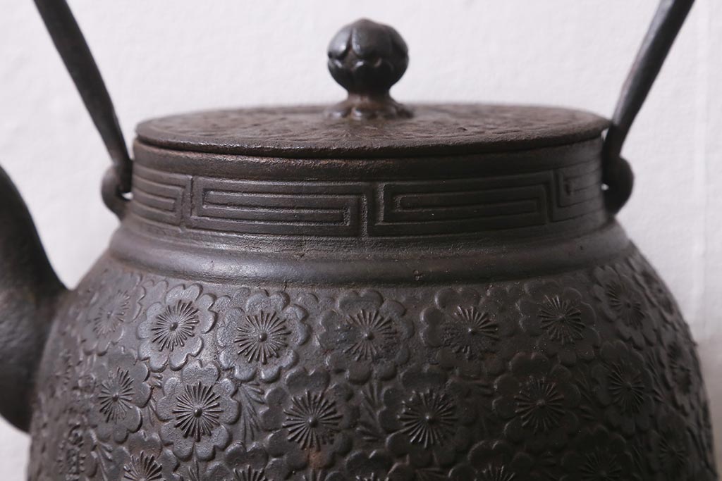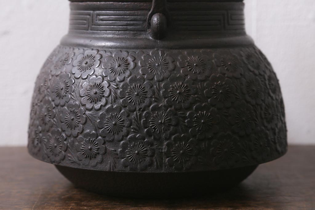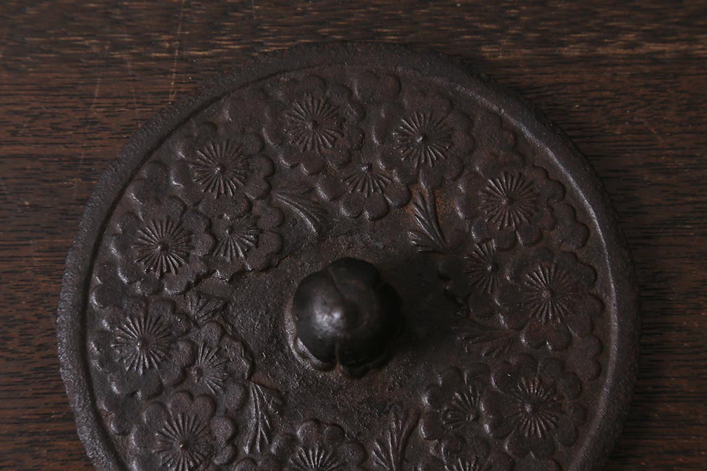 ビンテージ雑貨 桜模様 古い南部鉄瓶(鉄急須、茶道具)(R-041284)