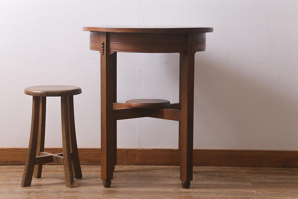和製アンティーク 昭和初期 ナラ材 大正ロマンの雰囲気漂うコーヒーテーブル(ラウンドテーブル、丸テーブル、カフェテーブル)(R-041555)です。