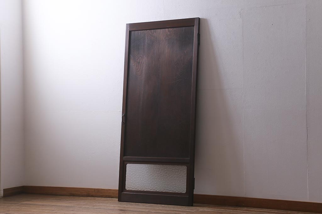 アンティーク建具 昭和初期 レトロガラス入り 窓付き ノスタルジックな雰囲気が魅力の木製ドア(扉、開き戸)(R-041589)