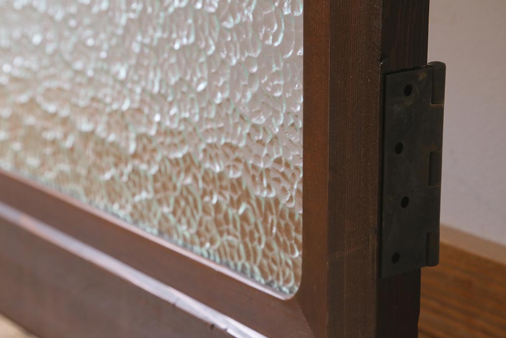 ドア・建具> ドア・扉 > アンティーク建具 昭和初期 レトロガラス入り 窓付き ノスタルジックな雰囲気が魅力の木製ドア(扉、開き戸)(R-041589)