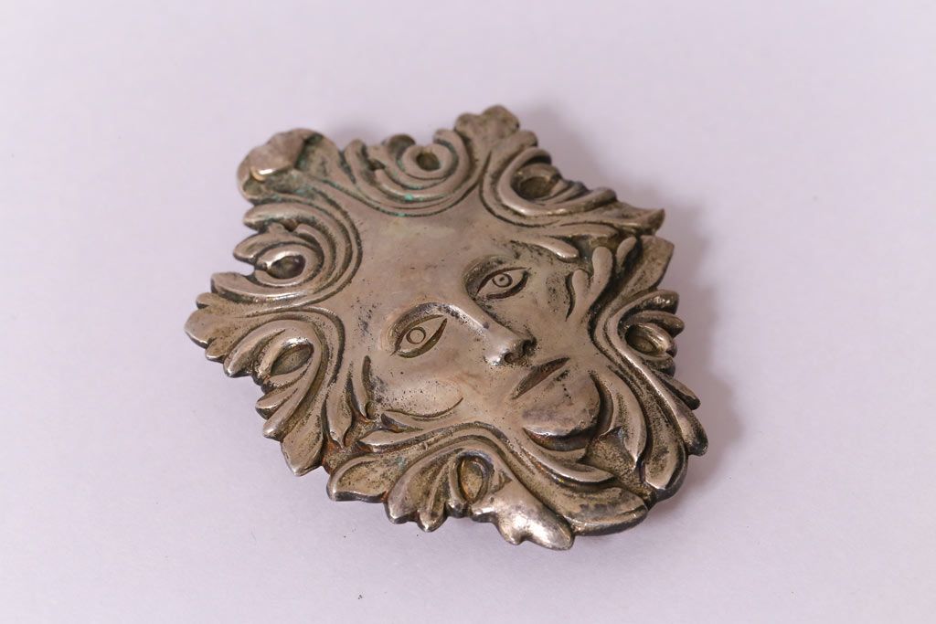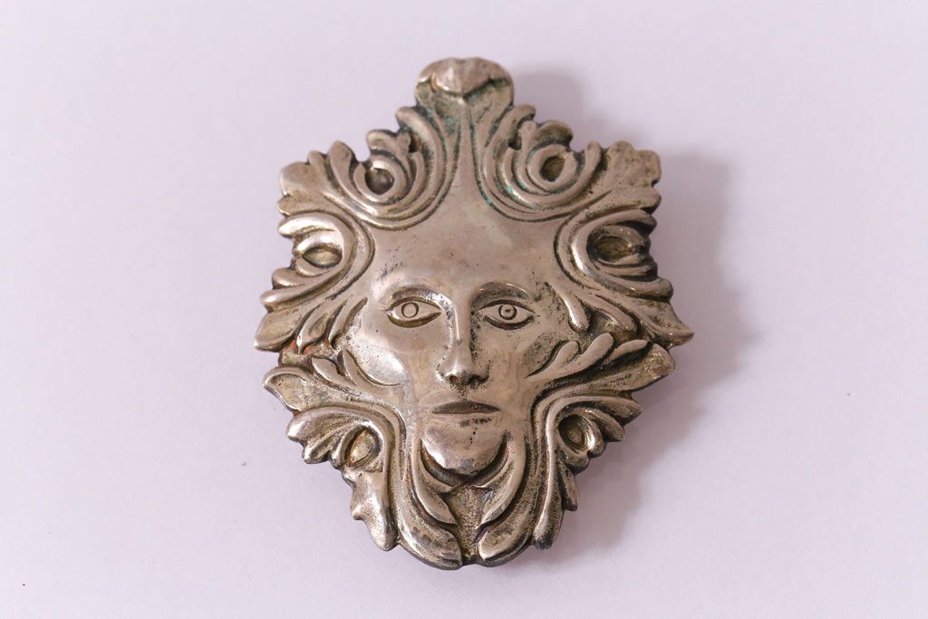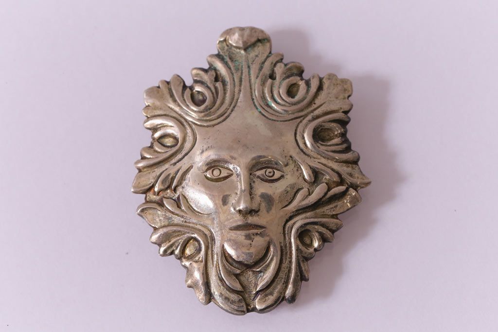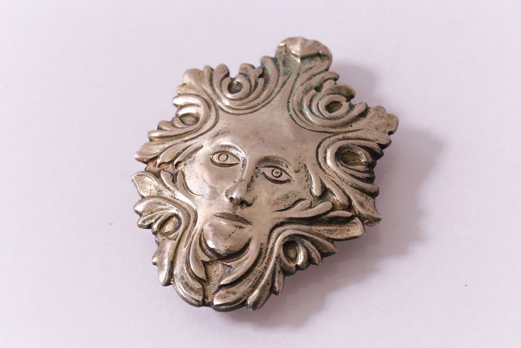 ラフジュ工房> 雑貨 > ヴィンテージ雑貨 フェイスモチーフのシルバー製ブローチ(アクセサリー、ビンテージ)(R-041429)