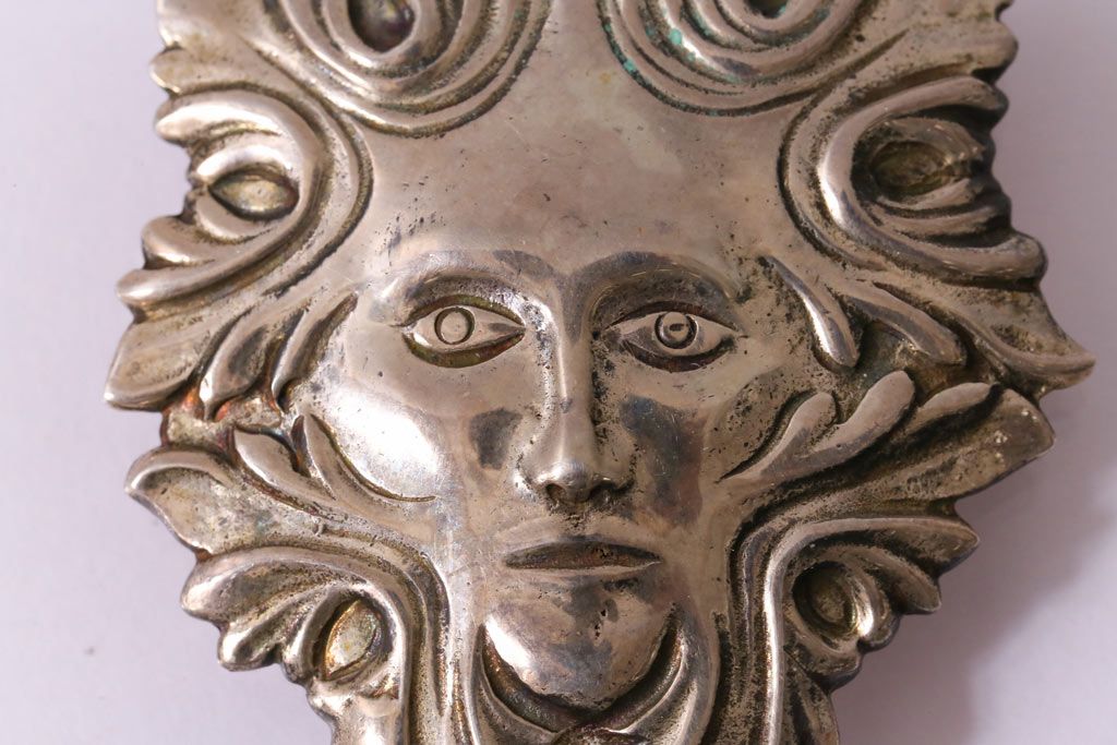 ヴィンテージ雑貨 フェイスモチーフのシルバー製ブローチ(アクセサリー、ビンテージ)(R-041429)
