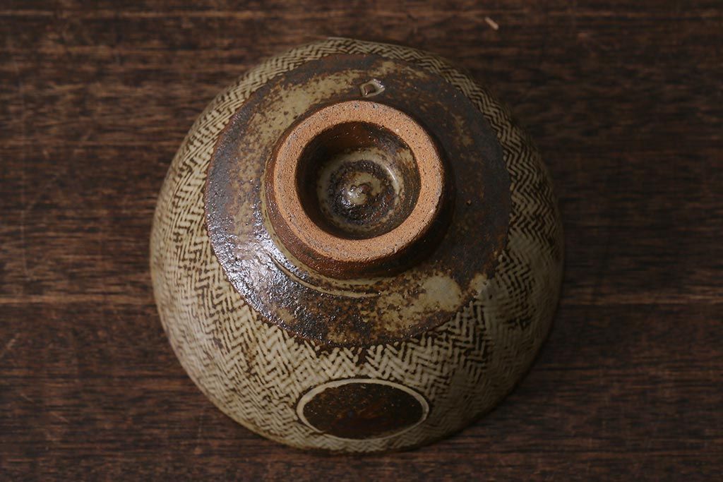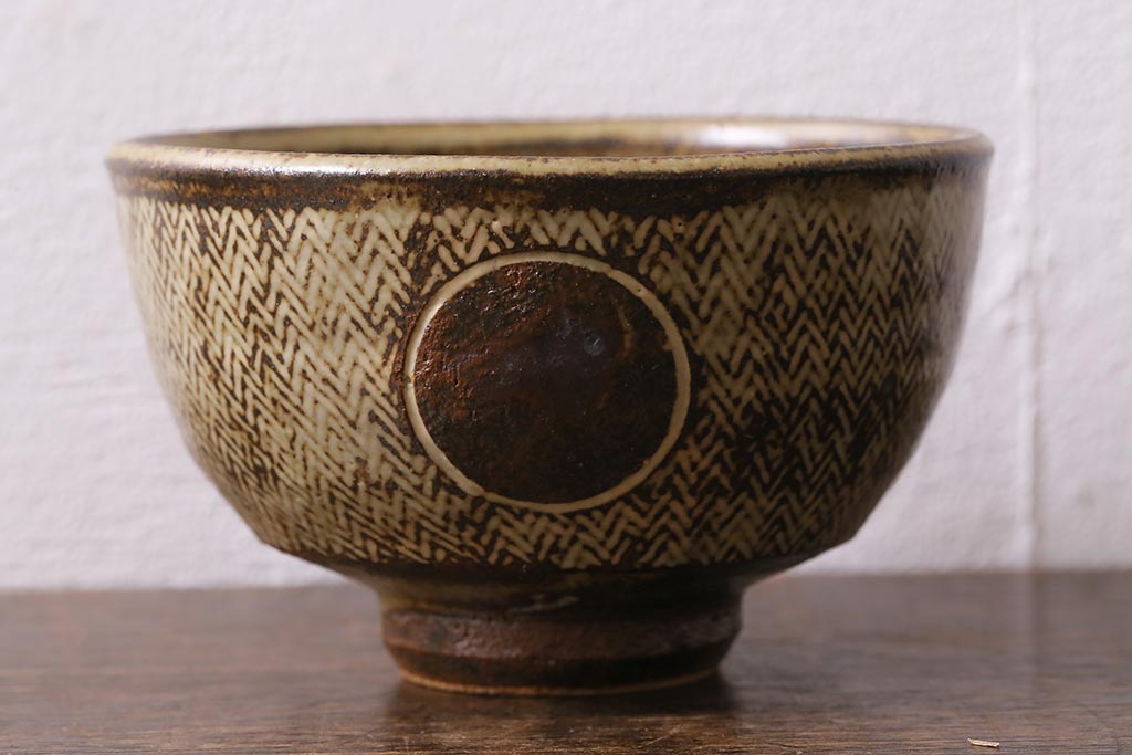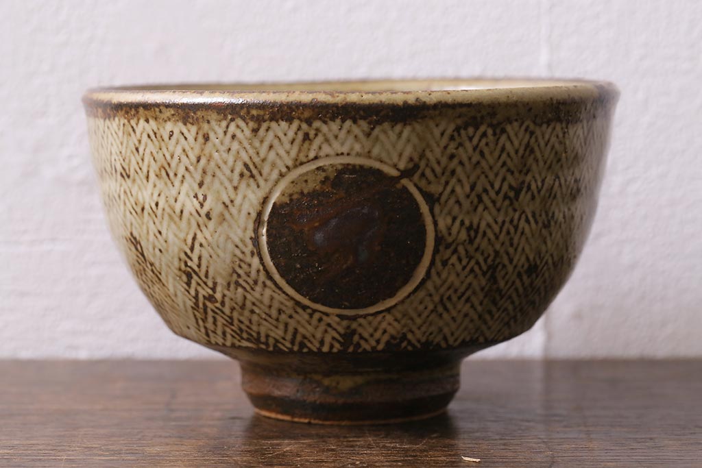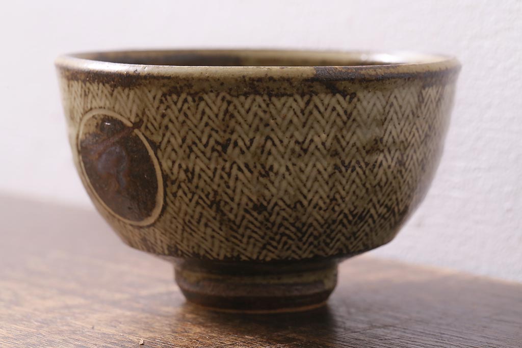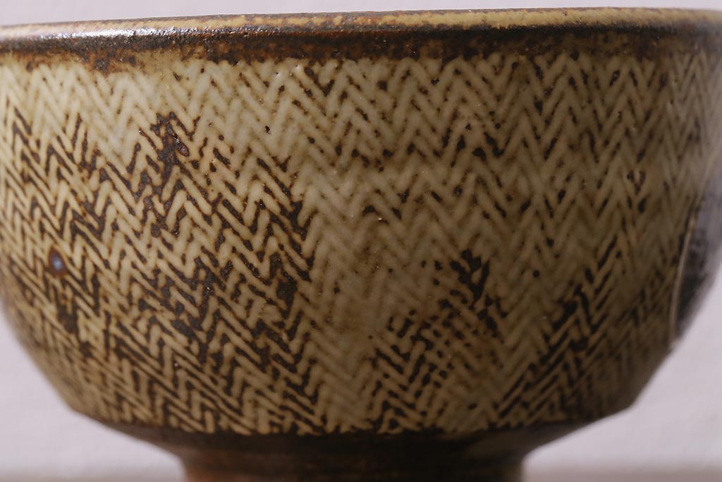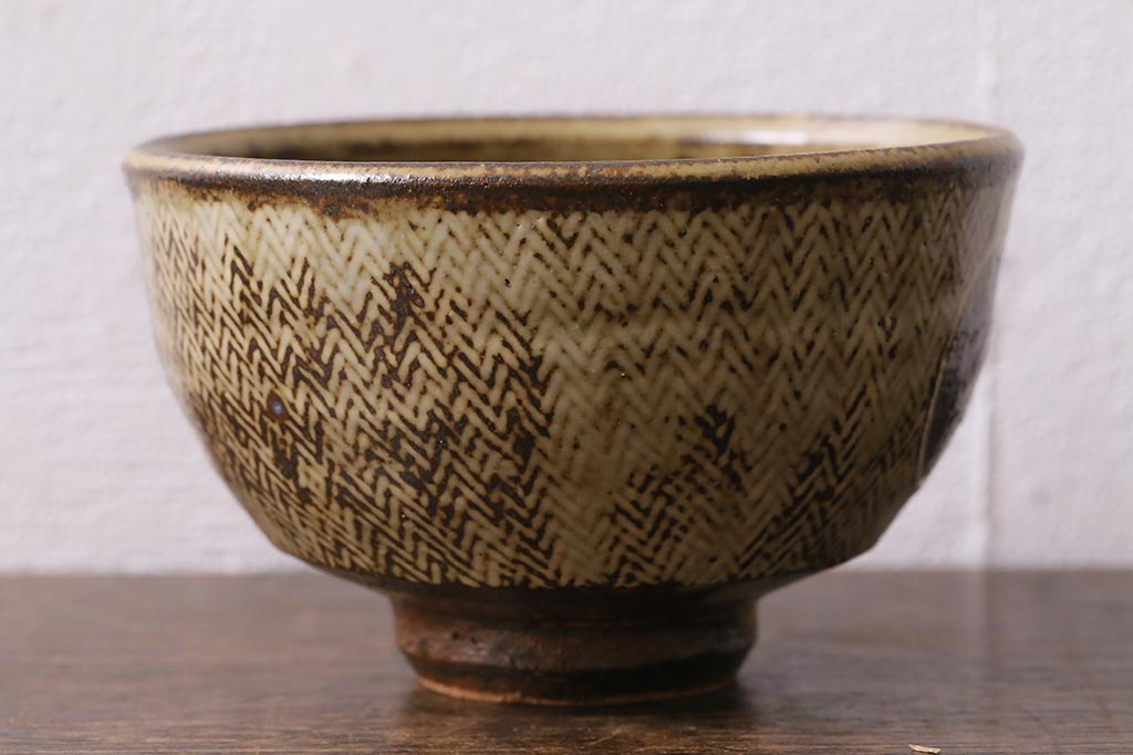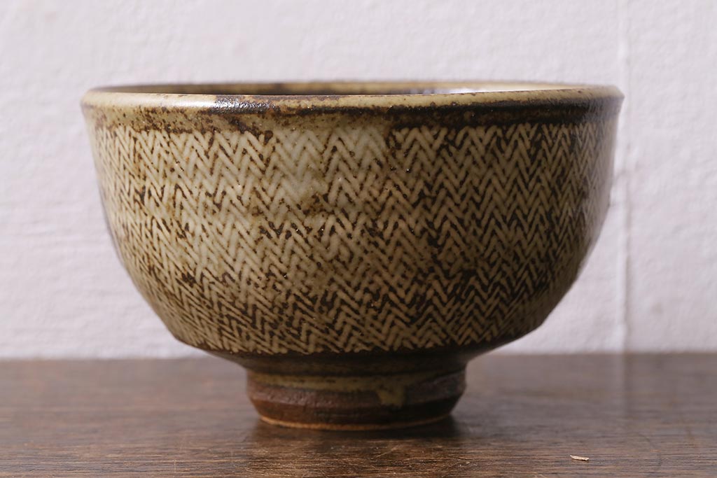 益子焼 人間国宝 島岡達三作 地釉象嵌縄文茶碗(和食器)(R-041295)