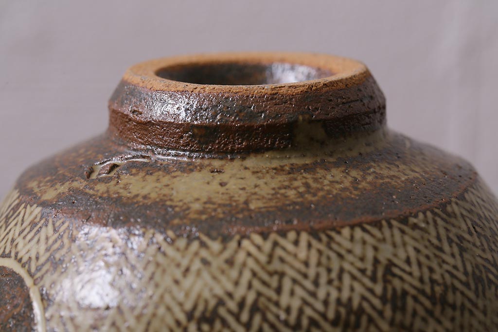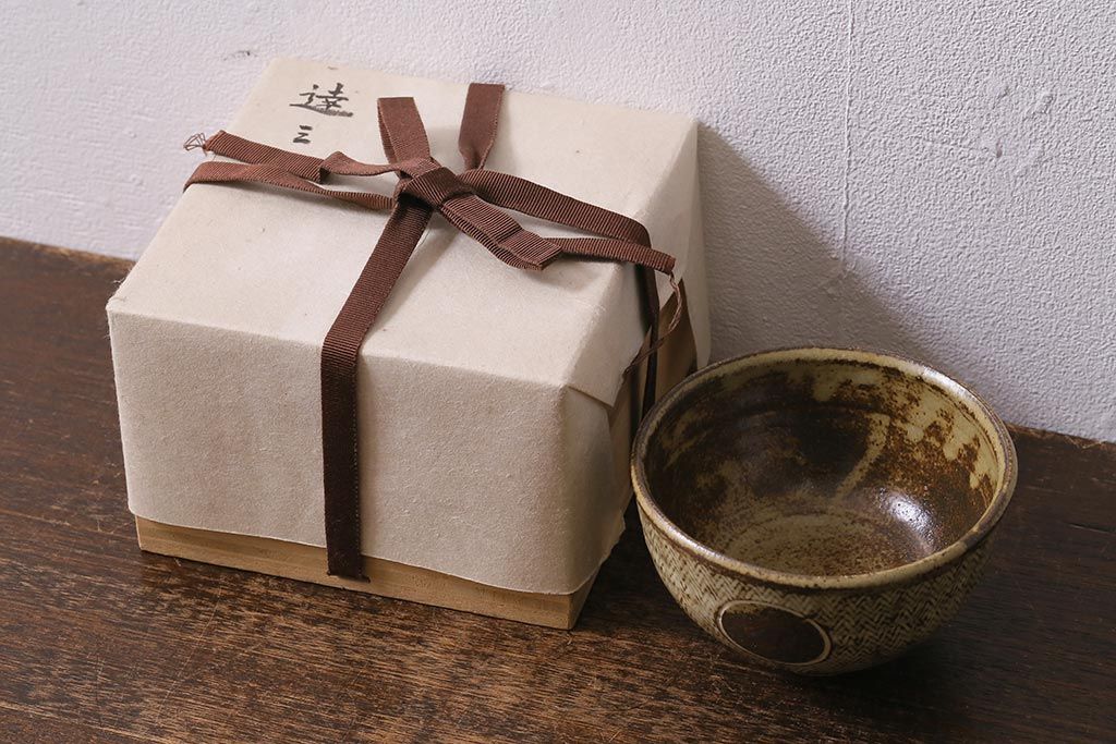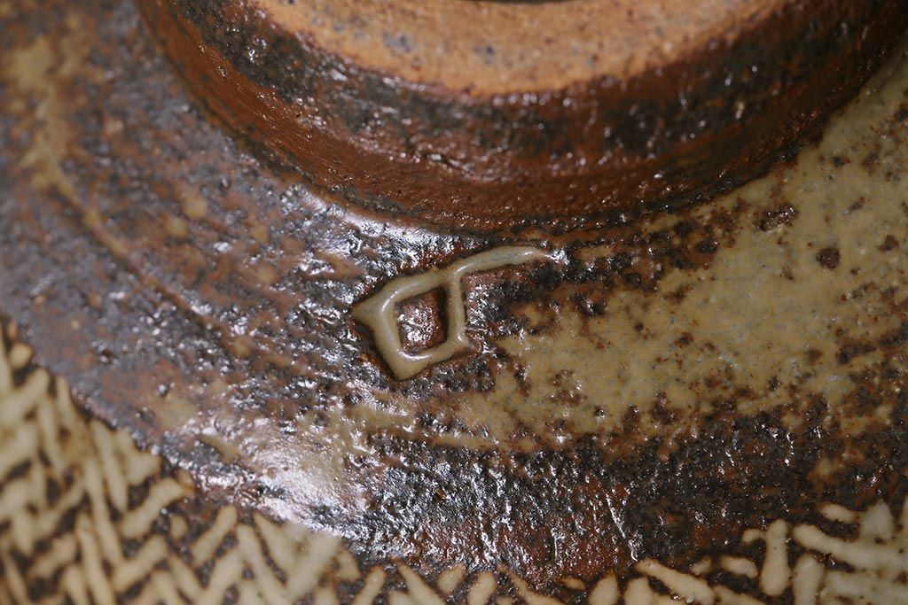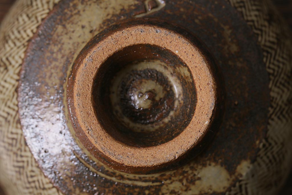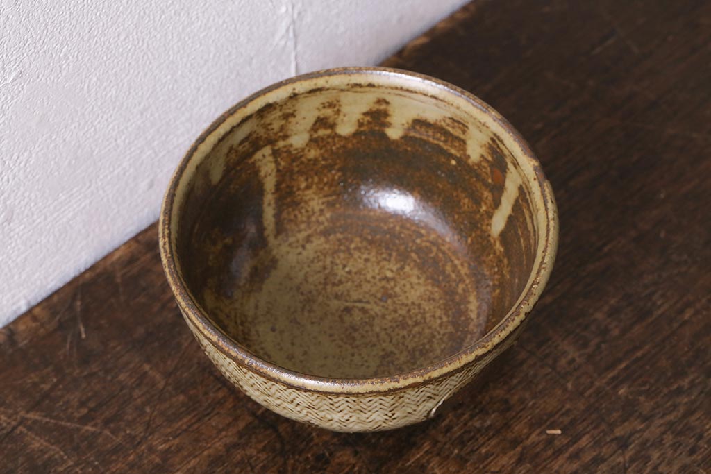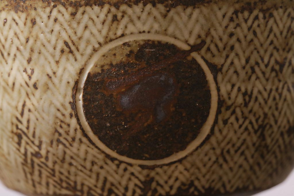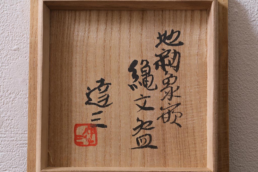 益子焼 人間国宝 島岡達三作 地釉象嵌縄文茶碗(和食器)(R-041295)