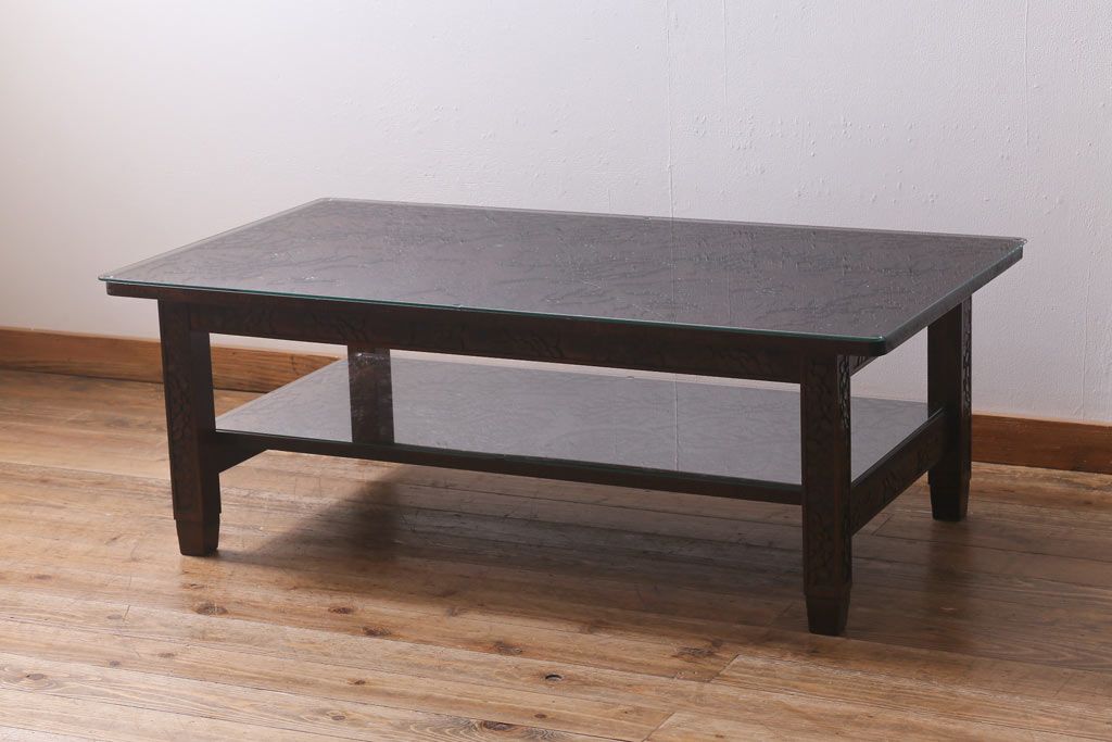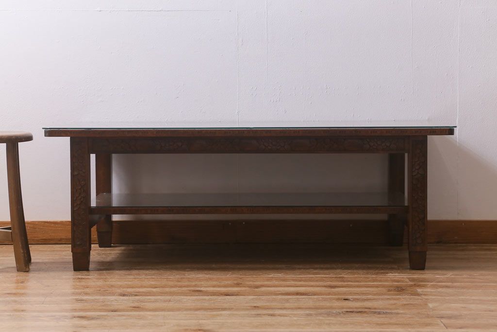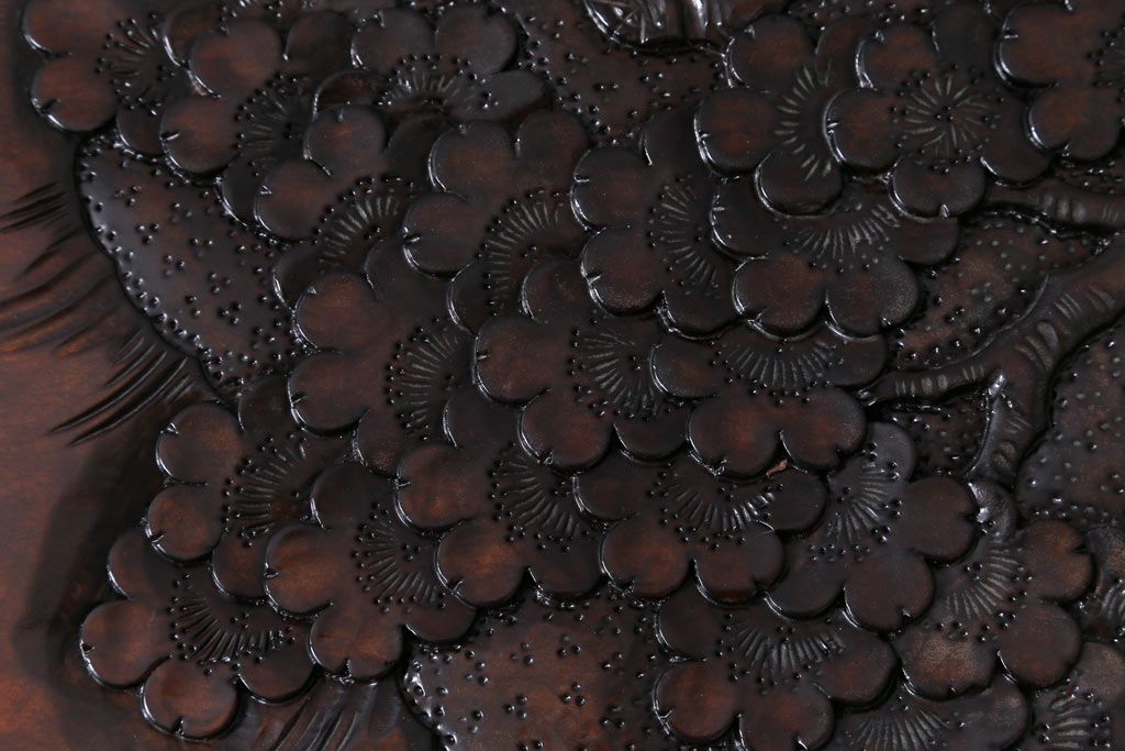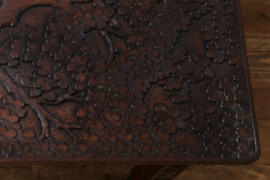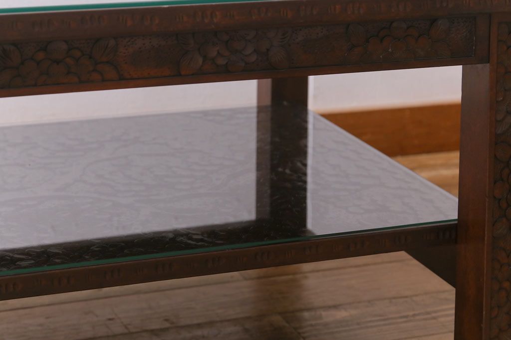 テーブル> サイドテーブル > 中古 伝統工芸 軽井沢彫り 咲き誇る桜の彫りが見事なサイドテーブル(リビングテーブル、センターテーブル、座卓)(R-041459)