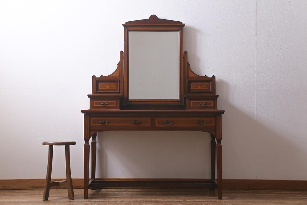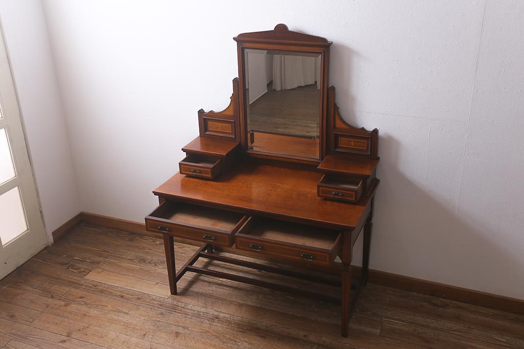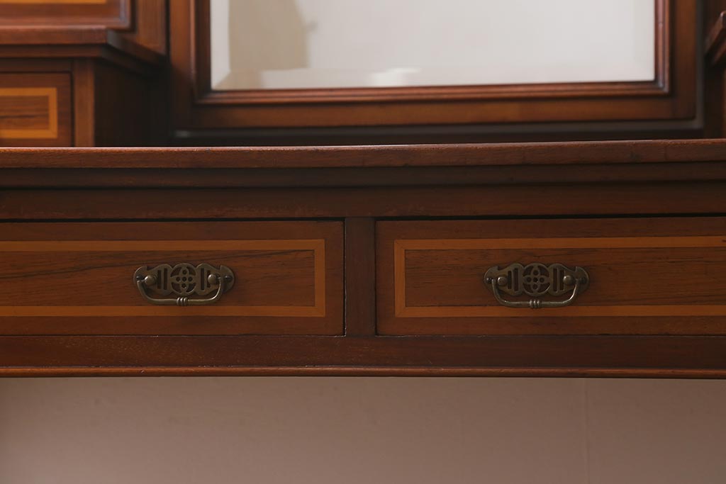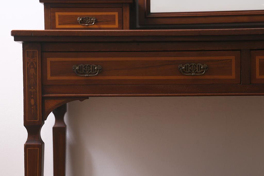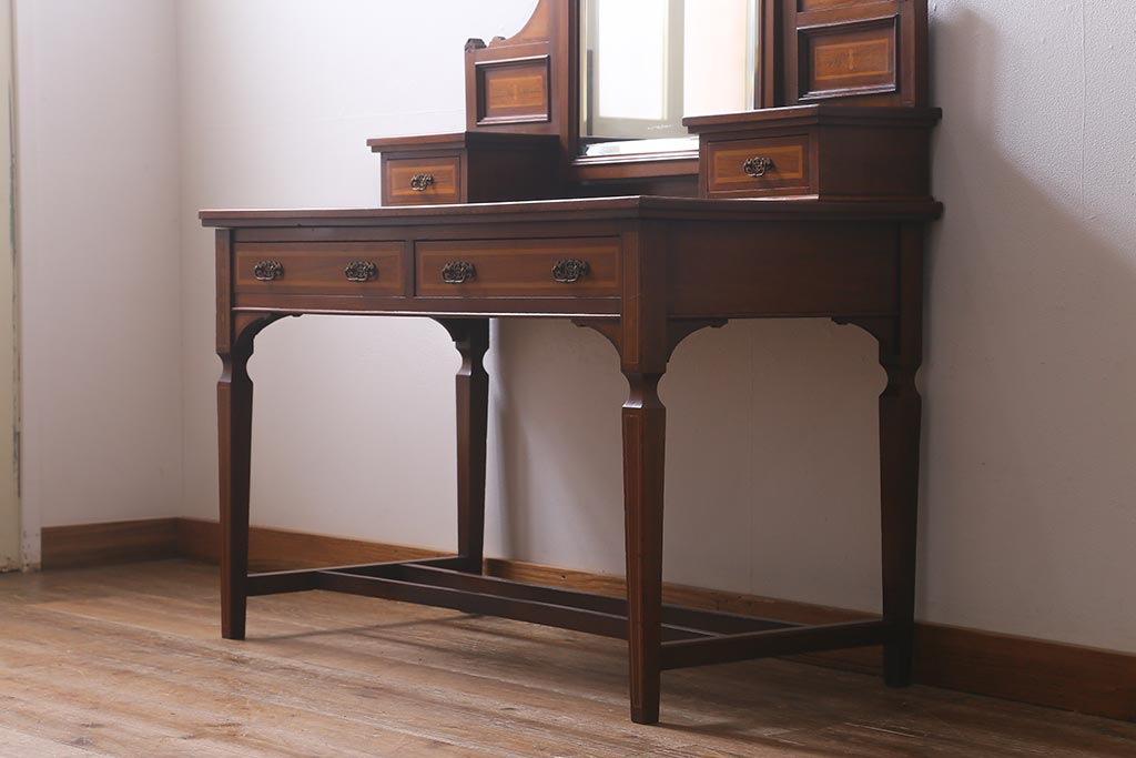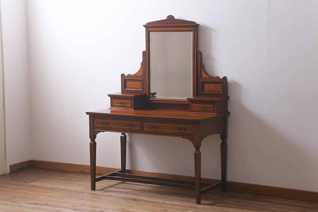 アンティーク家具 イギリスアンティーク 上手物! マホガニー材 象嵌細工が優雅な印象を高めるドレッサー(鏡台、化粧台)(R-041655)