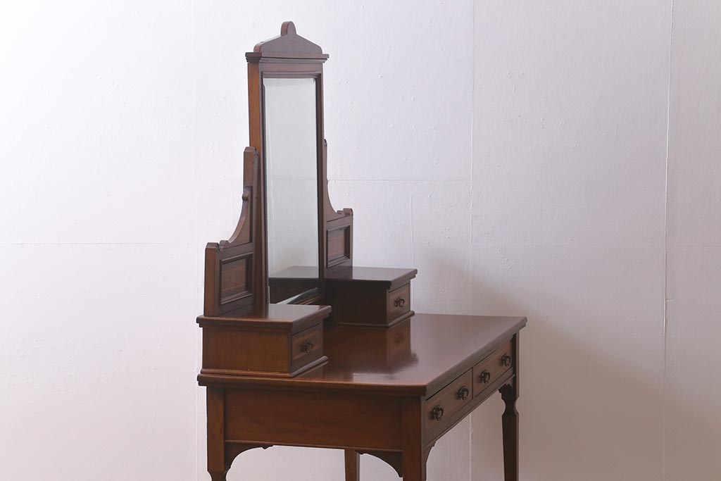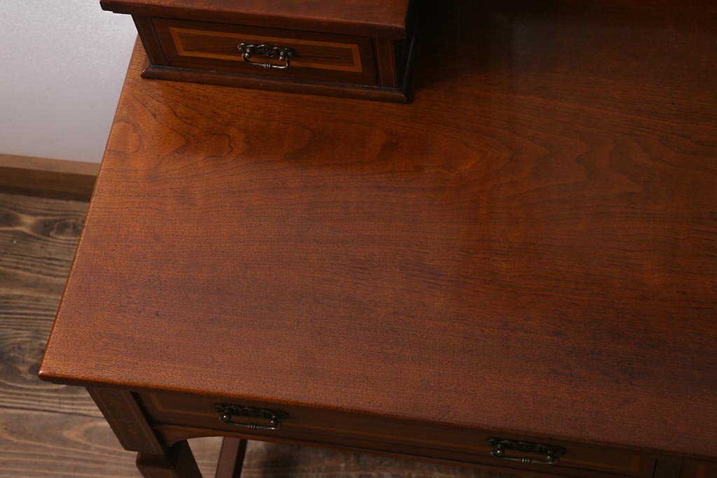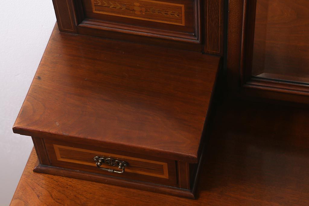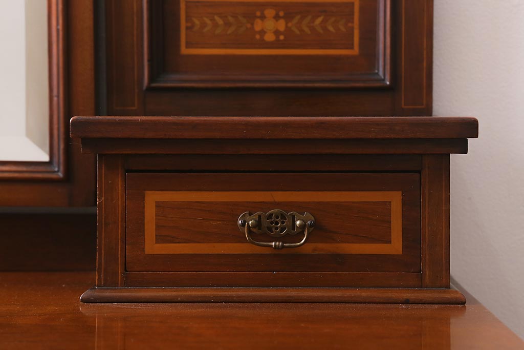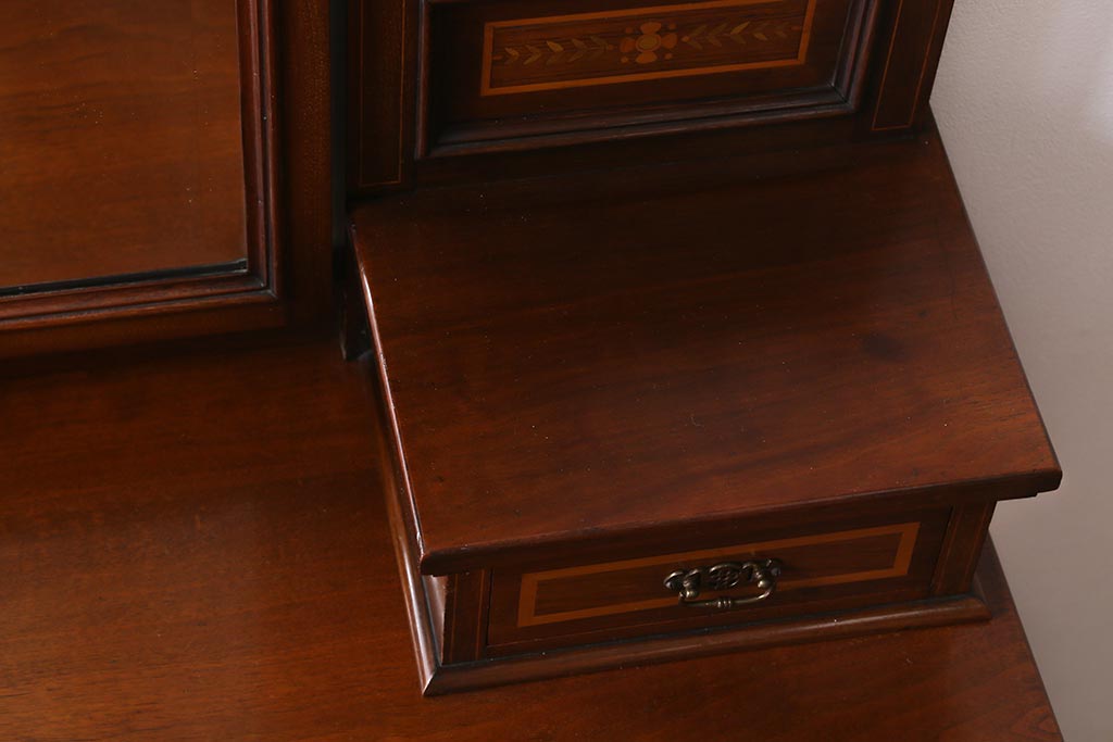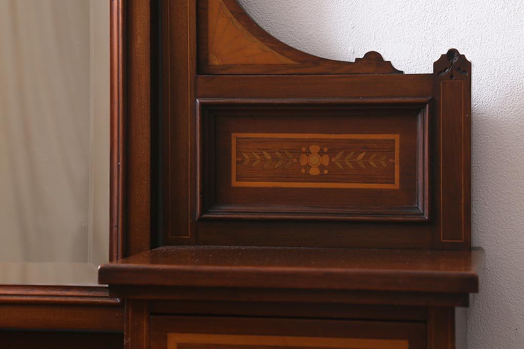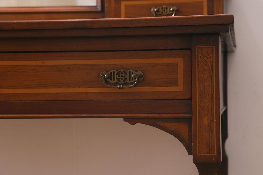 アンティーク家具 イギリスアンティーク 上手物! マホガニー材 象嵌細工が優雅な印象を高めるドレッサー(鏡台、化粧台)(R-041655)