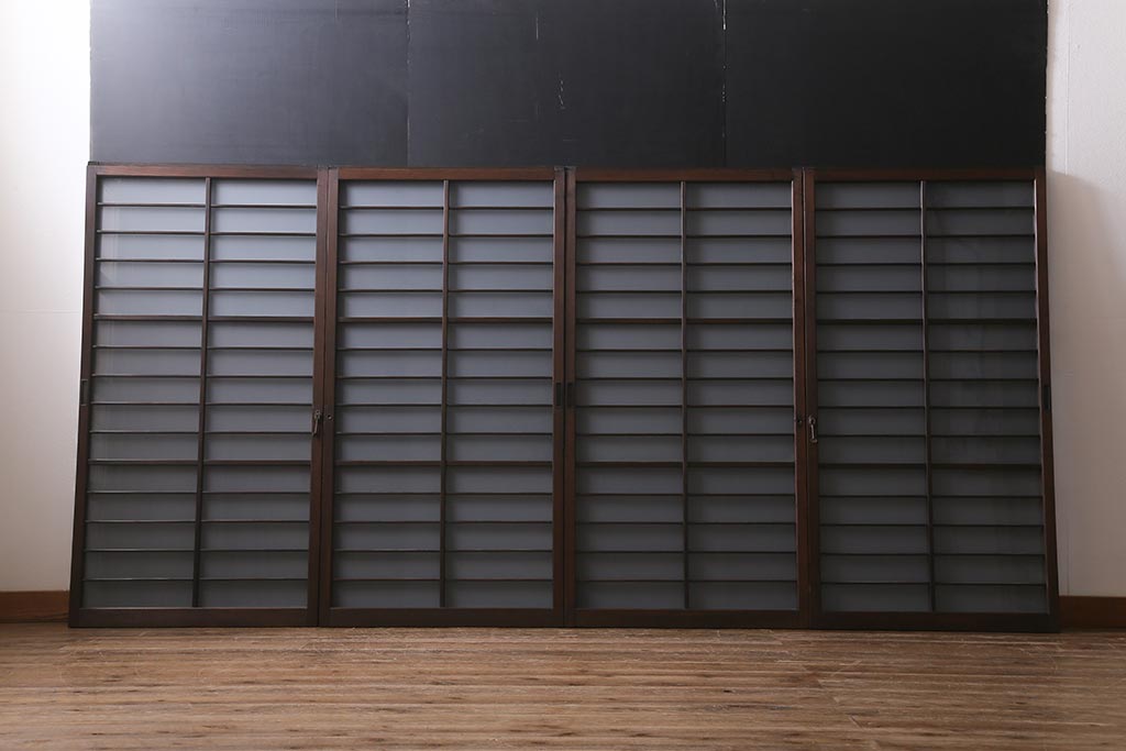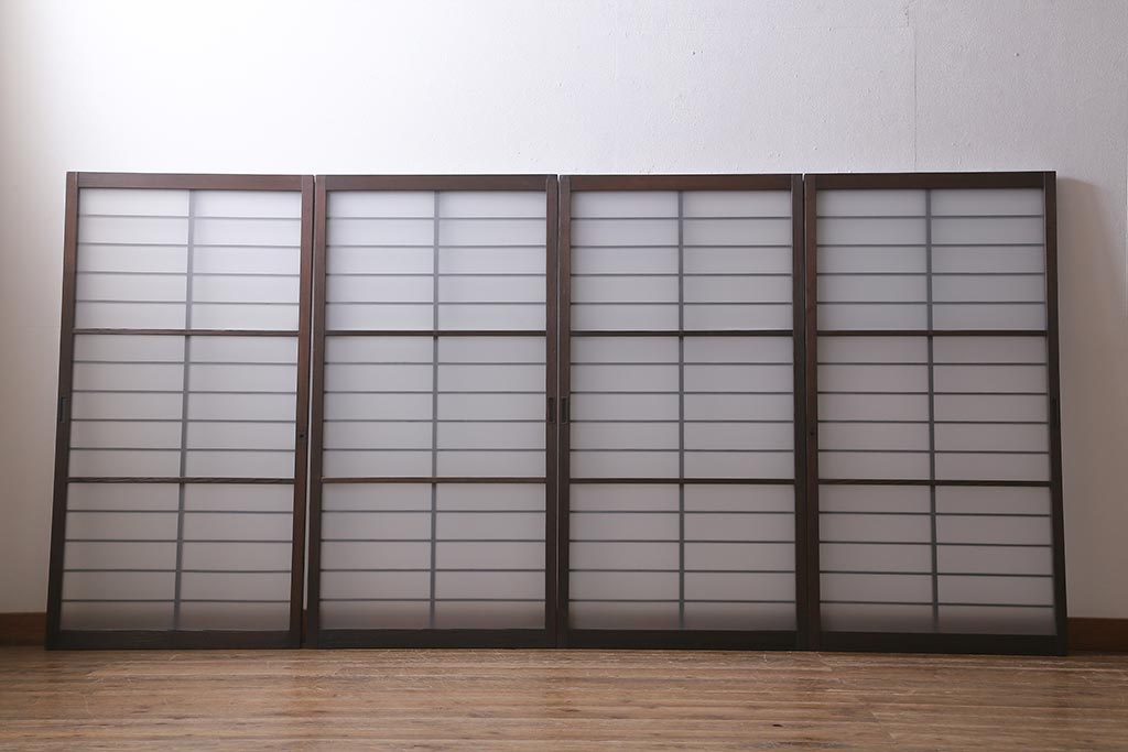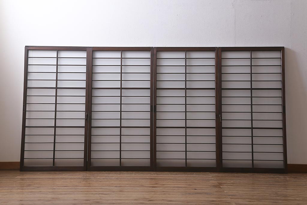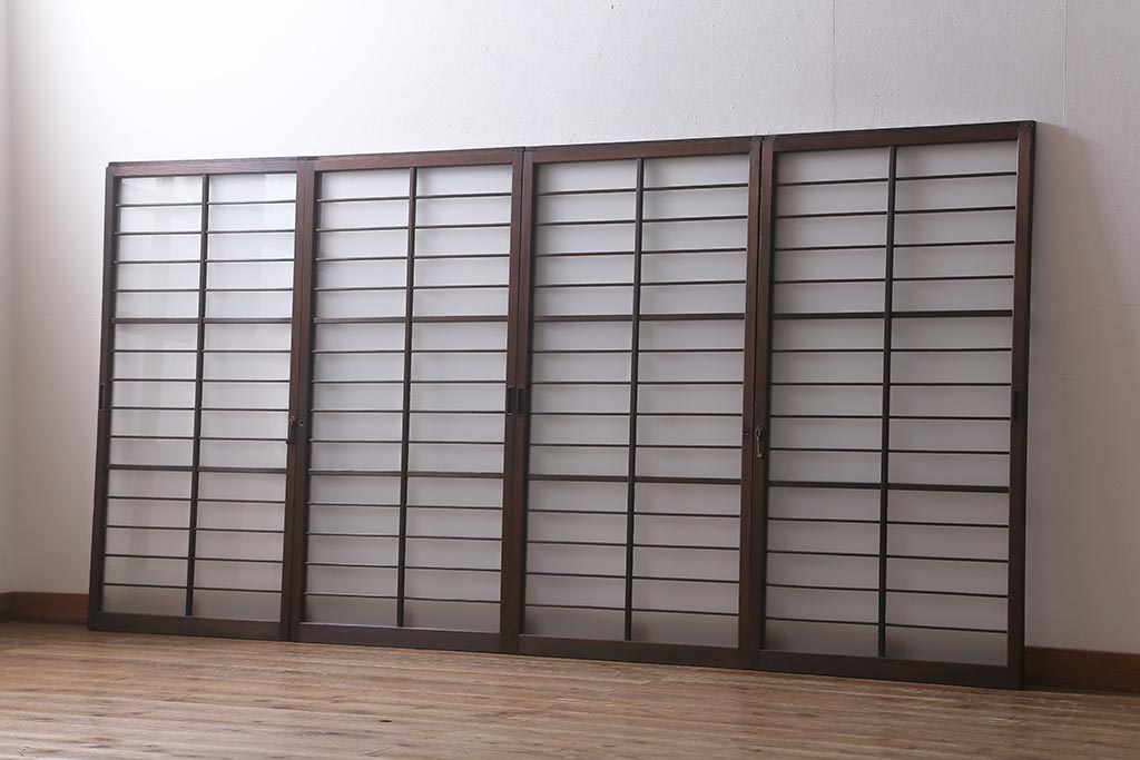 ドア・建具> 4枚〜セット > アンティーク建具 昭和初期 すりガラス入り 和モダンな空間におすすめのガラス戸4枚セット(窓、引き戸・建具)(R-041582)