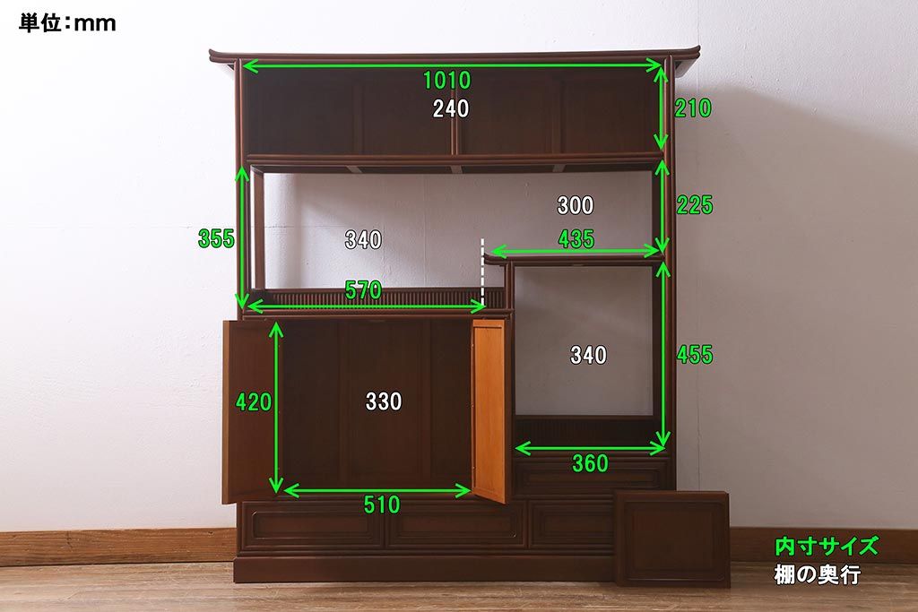 棚の内寸は4枚目の画像に記載しておりますので、そちらをご参考ください。