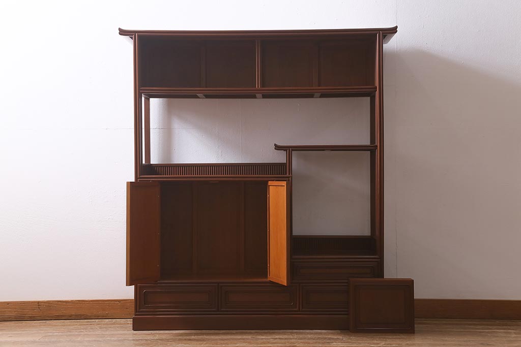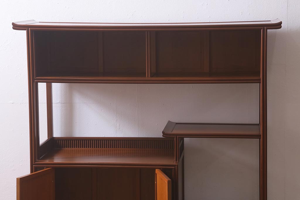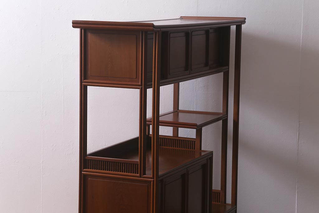 中古 指物家具 高級杉材使用 総無垢材 秋田杉 国産 高級感漂う上質な茶棚(飾り棚、収納棚)(R-041691)