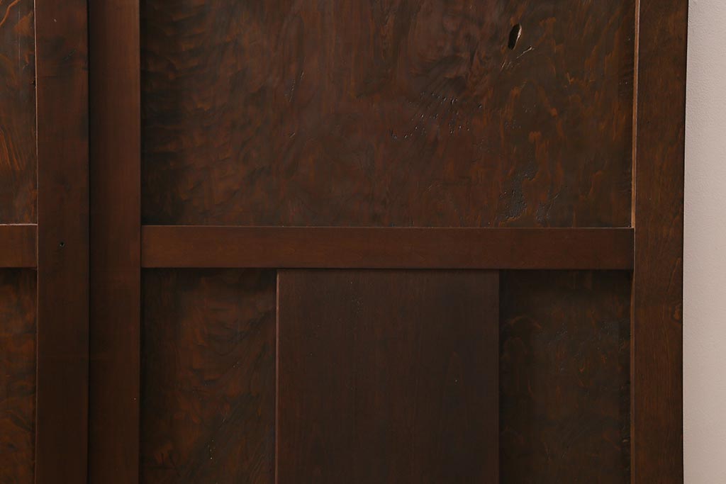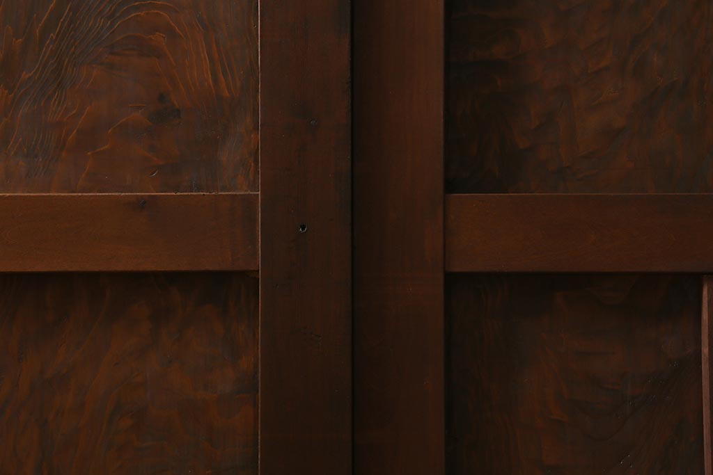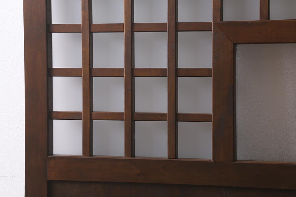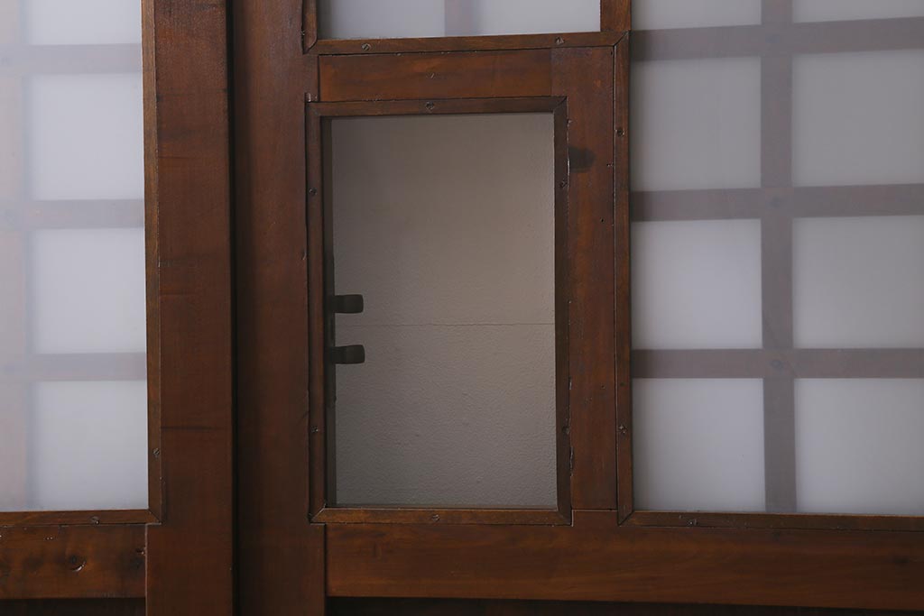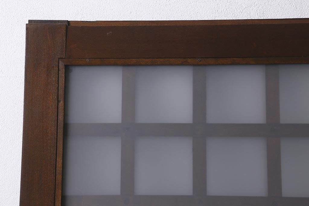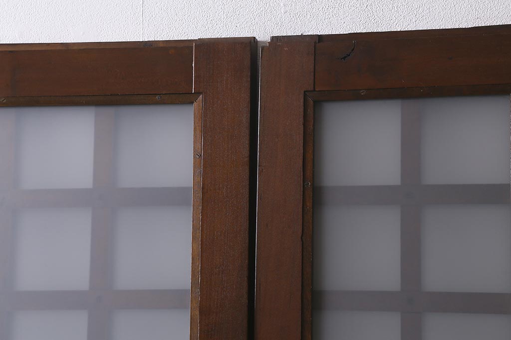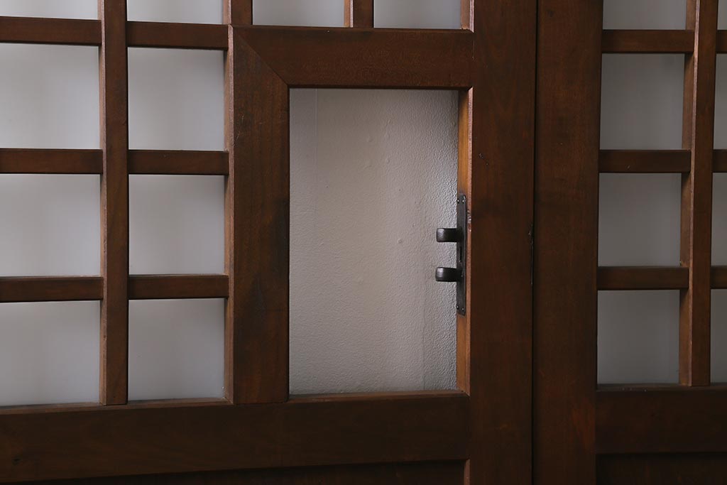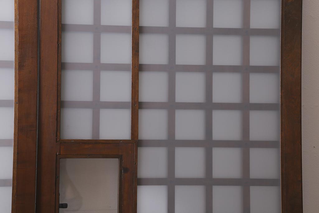 アンティーク建具 明治大正期 蔵戸リメイク 杉材一枚板・枠樺材 すり・クリアガラス入り 升格子の蔵戸2枚セット(引き戸、玄関戸)(R-041648)