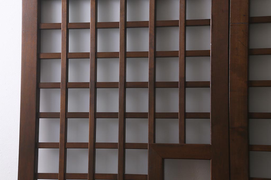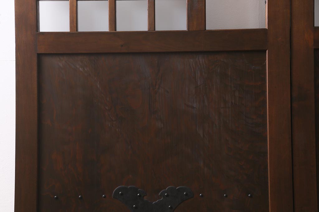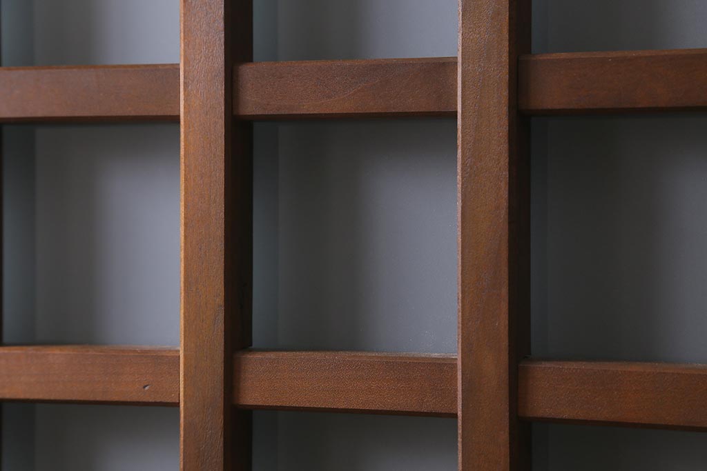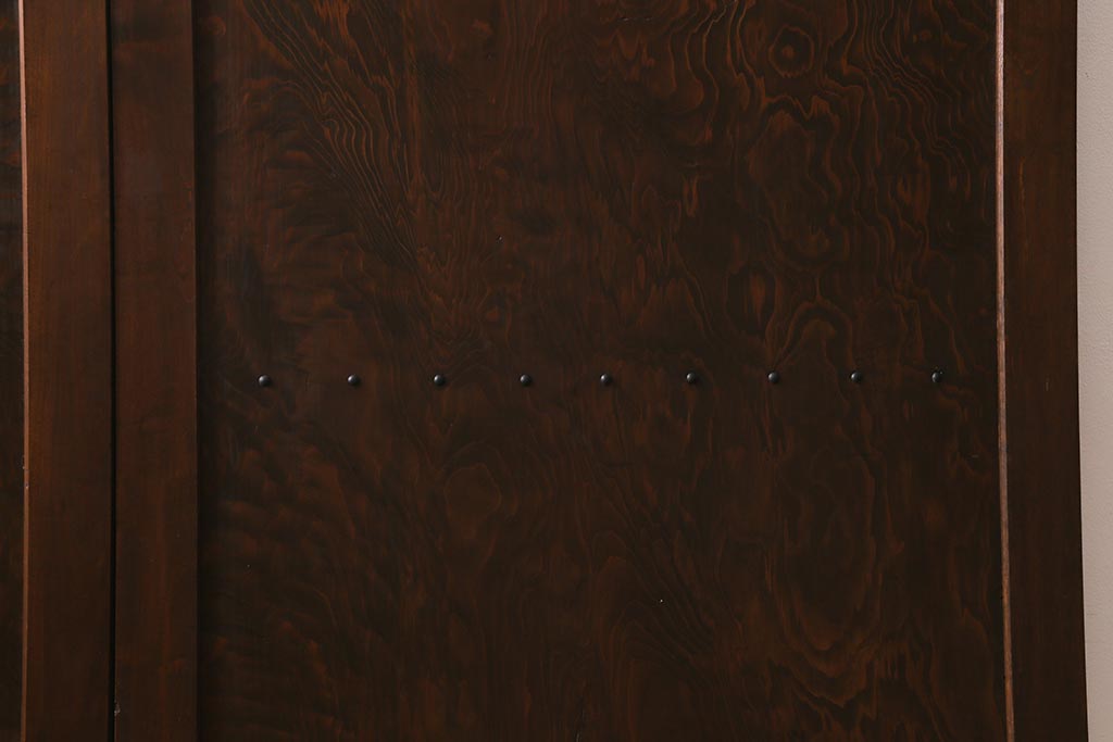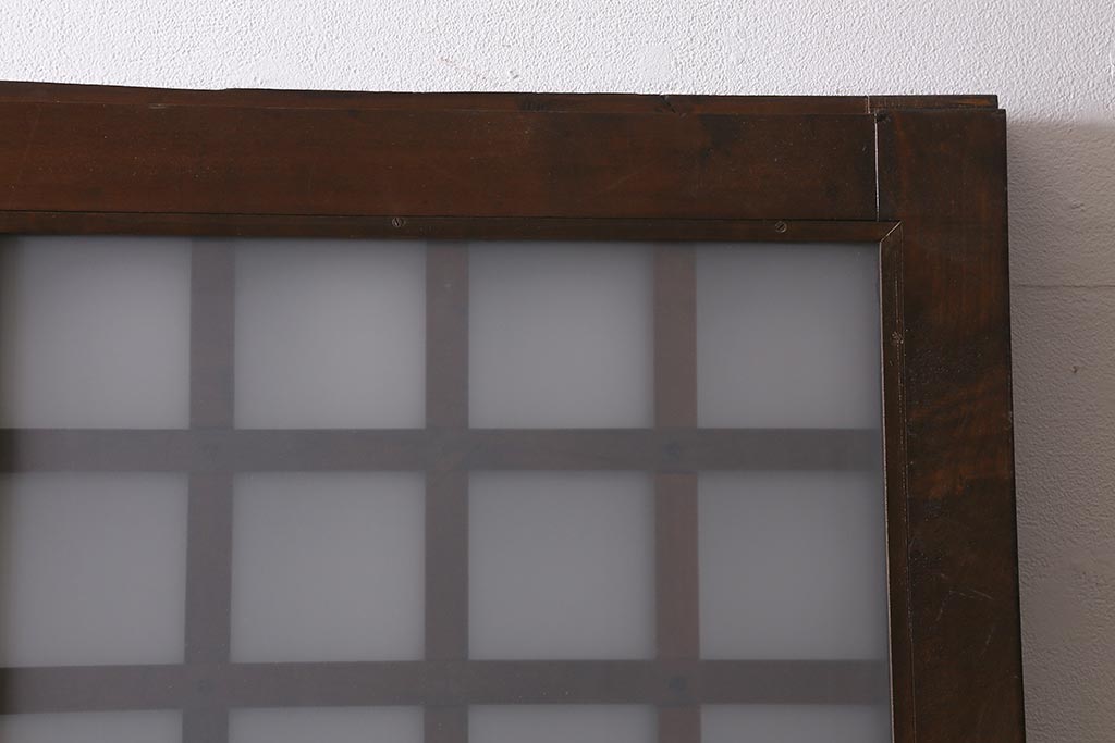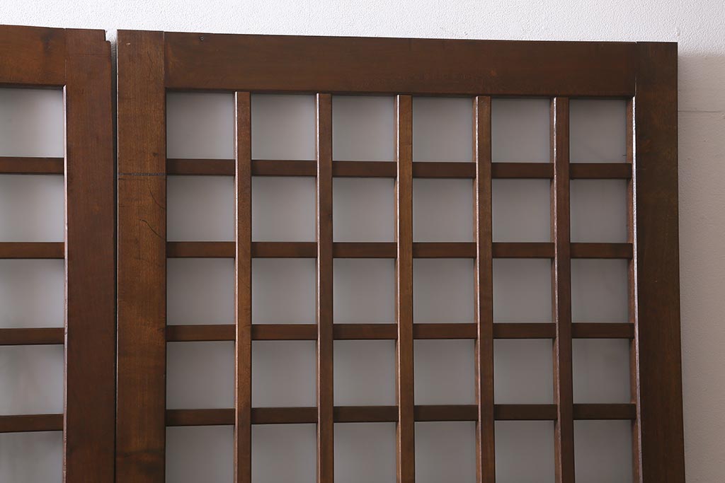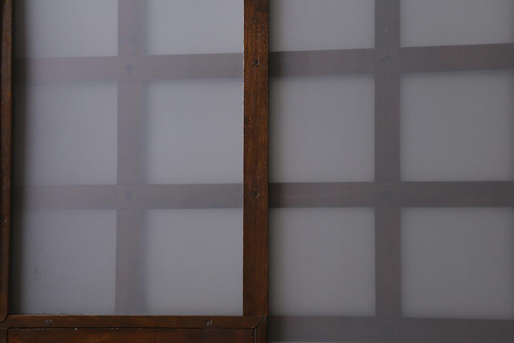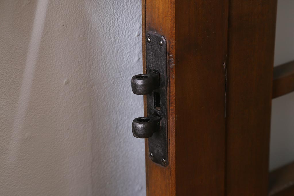 アンティーク建具 明治大正期 蔵戸リメイク 杉材一枚板・枠樺材 すり・クリアガラス入り 升格子の蔵戸2枚セット(引き戸、玄関戸)(R-041648)