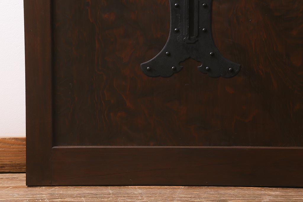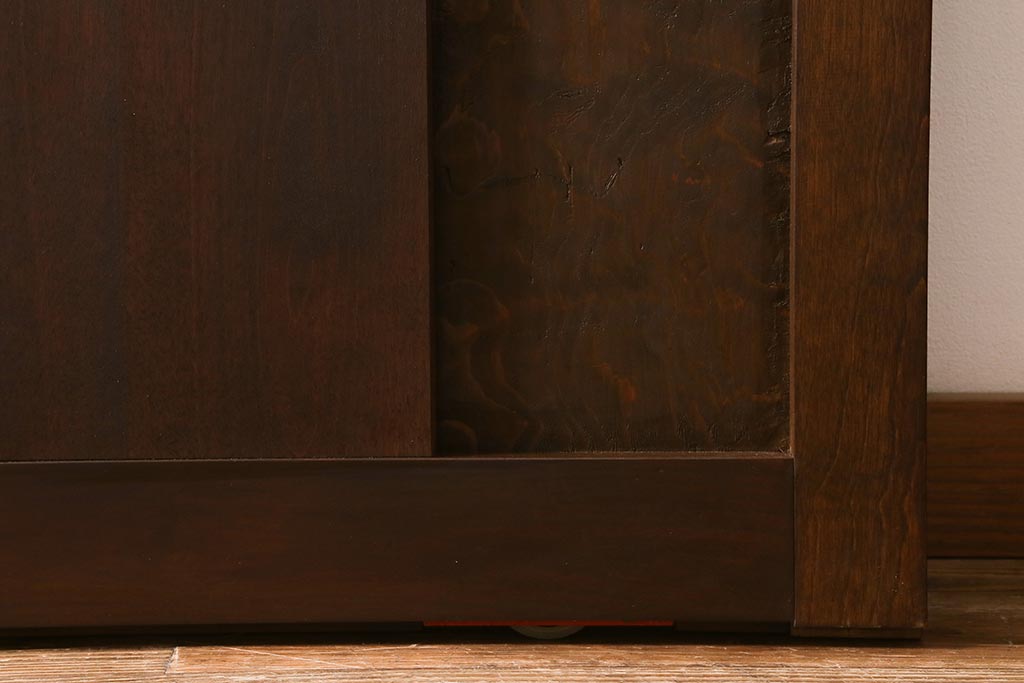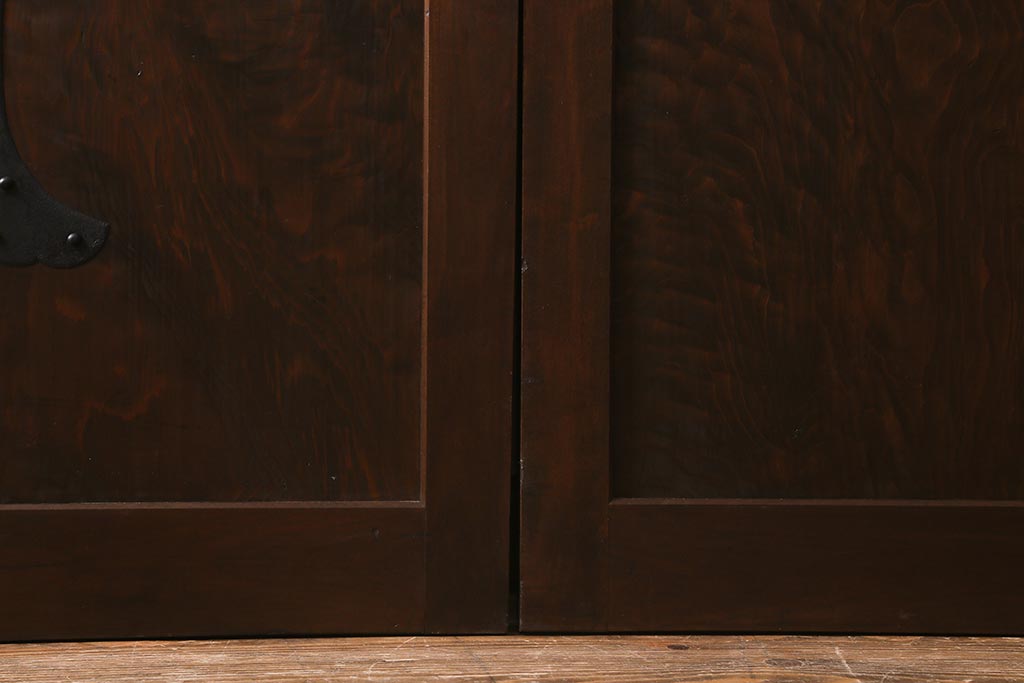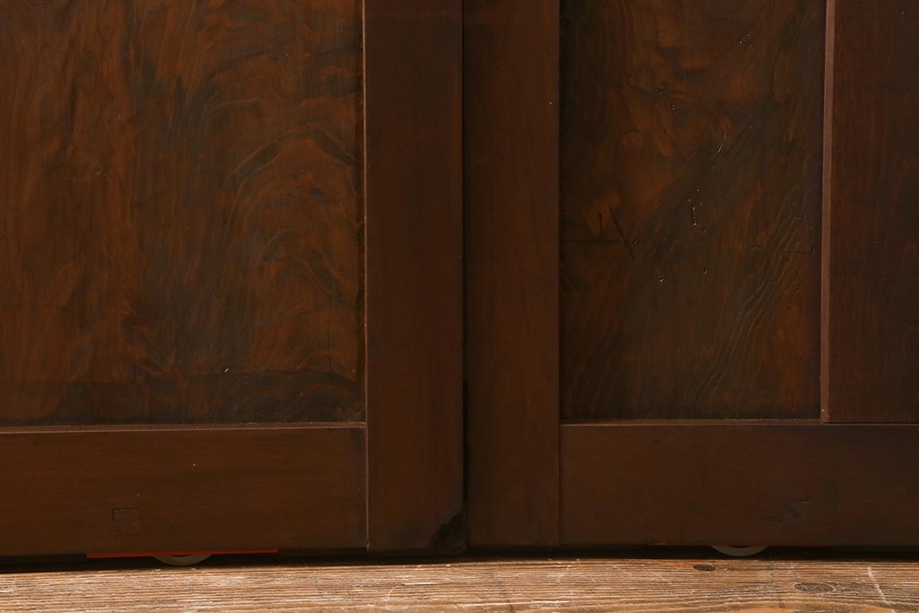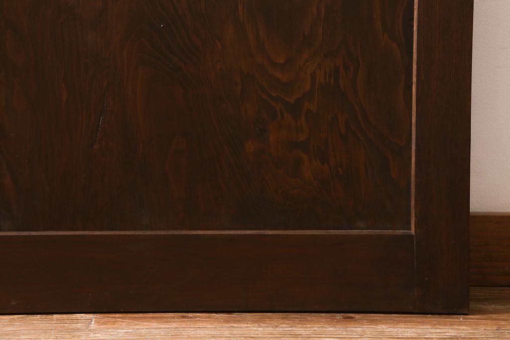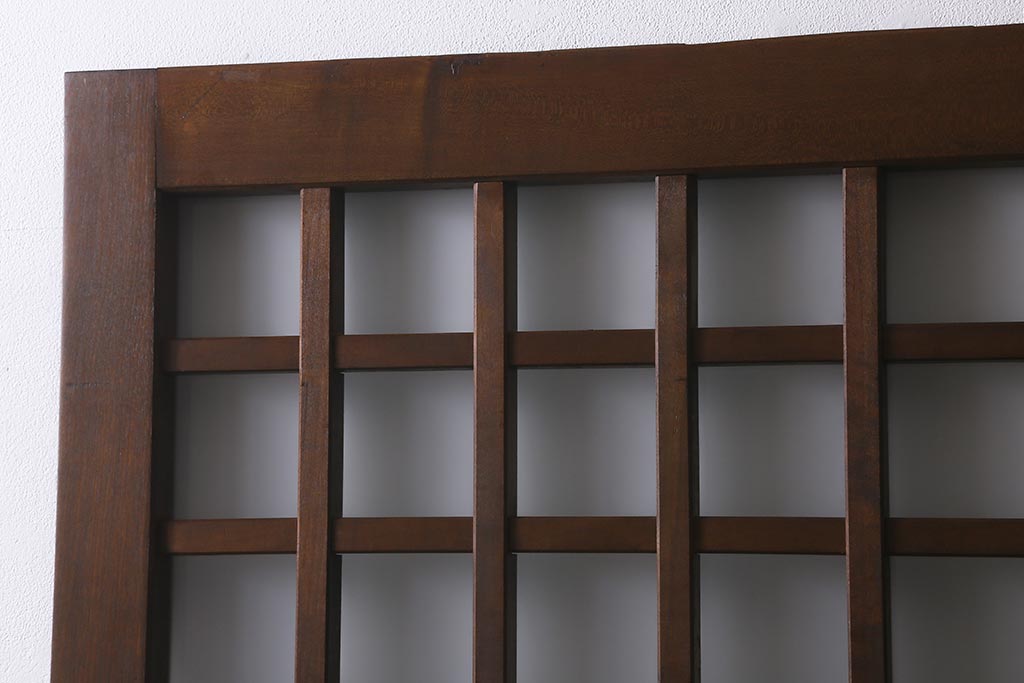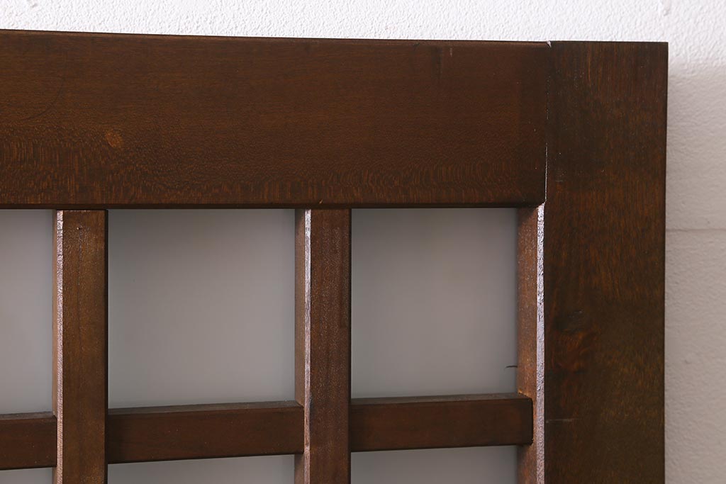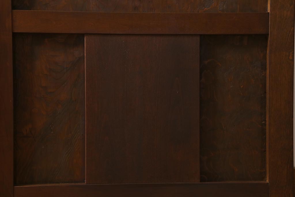 アンティーク建具 明治大正期 蔵戸リメイク 杉材一枚板・枠樺材 すり・クリアガラス入り 升格子の蔵戸2枚セット(引き戸、玄関戸)(R-041648)