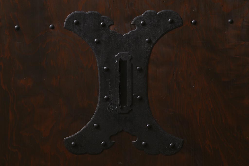 ラフジュ工房> ドア・建具> 引き戸 > アンティーク建具 明治大正期 蔵戸リメイク 杉材一枚板・枠樺材 すり・クリアガラス入り 升格子の蔵戸2枚セット(引き戸、玄関戸)(R-041648)