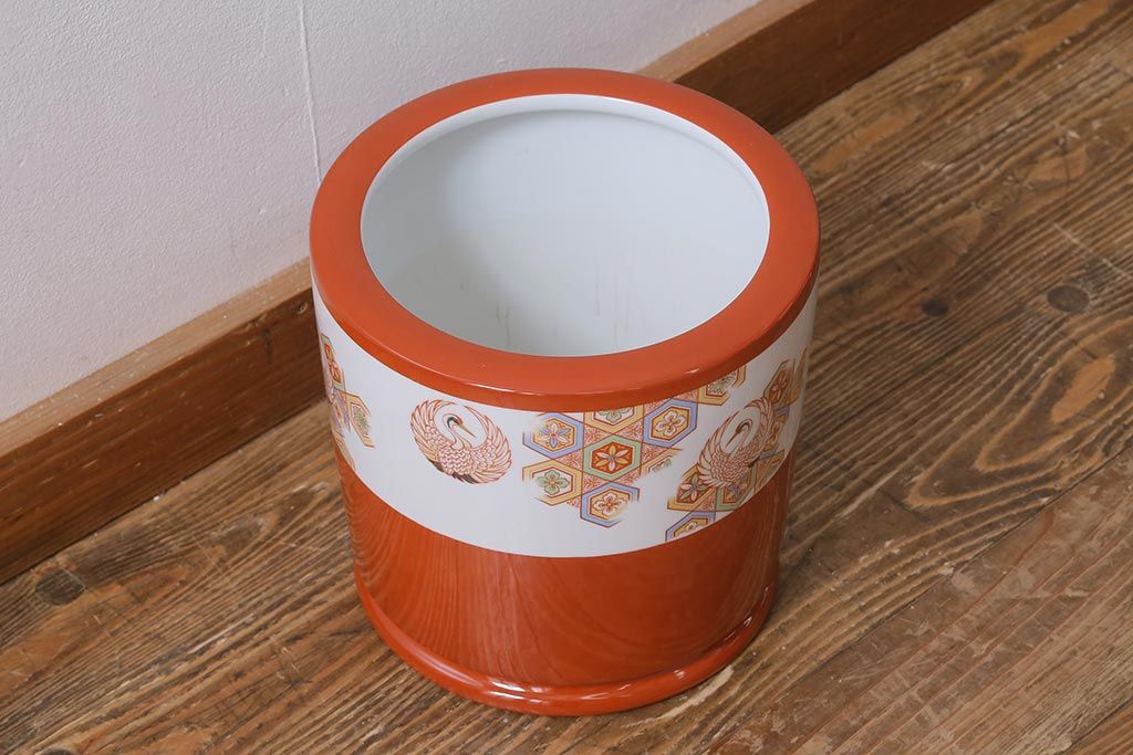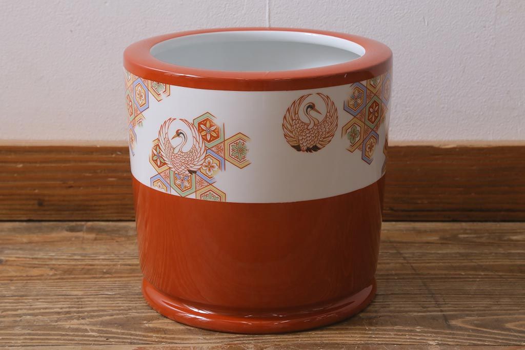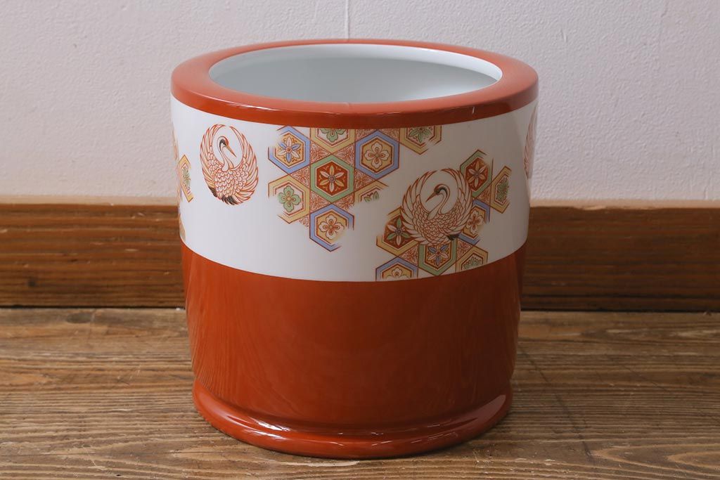 骨董・美術品> 骨董-陶磁器 > 和製アンティーク オールドノリタケ 日陶(則武) 昭和初期 鶴丸文 目を引く朱色の火鉢(瀬戸火鉢、Noritake、noritake、NORITAKE、手あぶり、鉢カバー、傘立て)(R-041565)