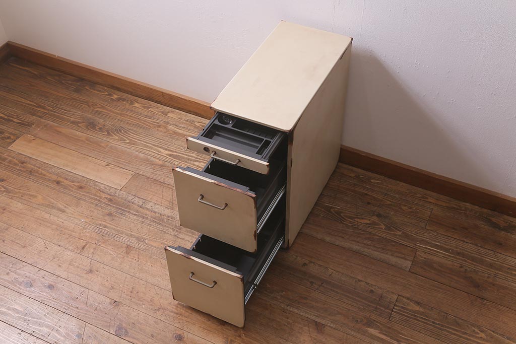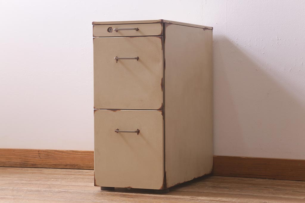 中古 OKAMURA(オカムラ) キャスター付き アンティーク風にリメイクしたペイントデスクワゴン(サイドチェスト)(R-041635)