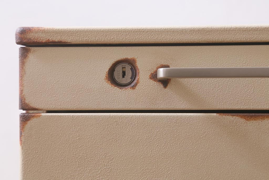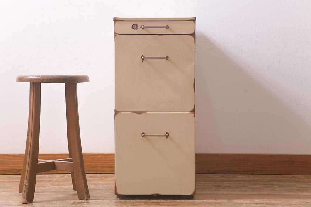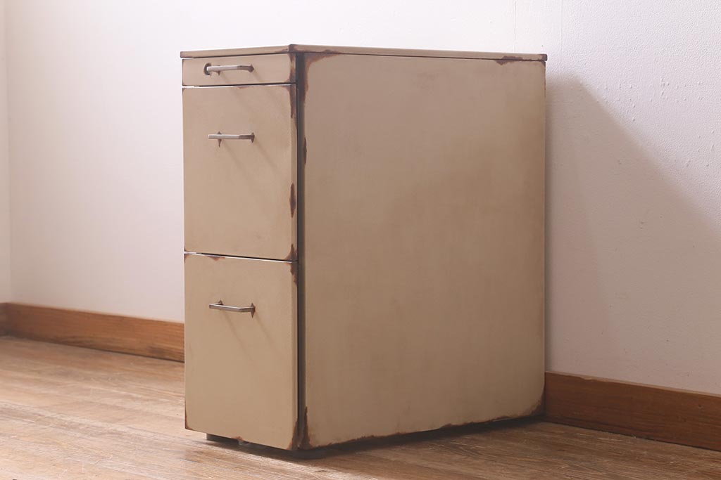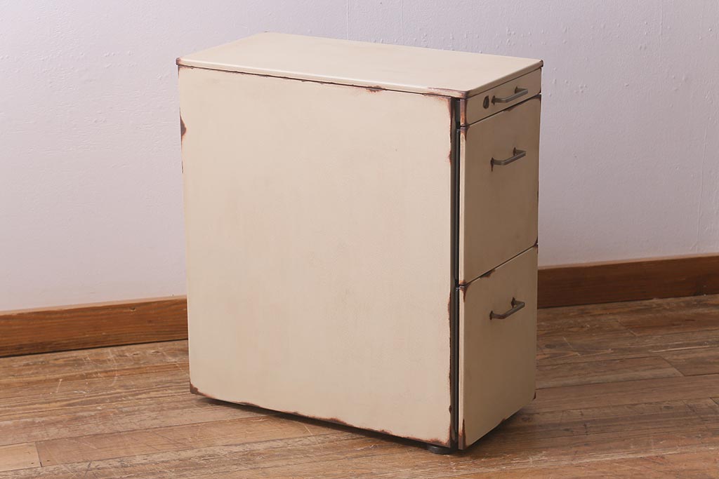 中古 OKAMURA(オカムラ) キャスター付き アンティーク風にリメイクしたペイントデスクワゴン(サイドチェスト)(R-041635)です。