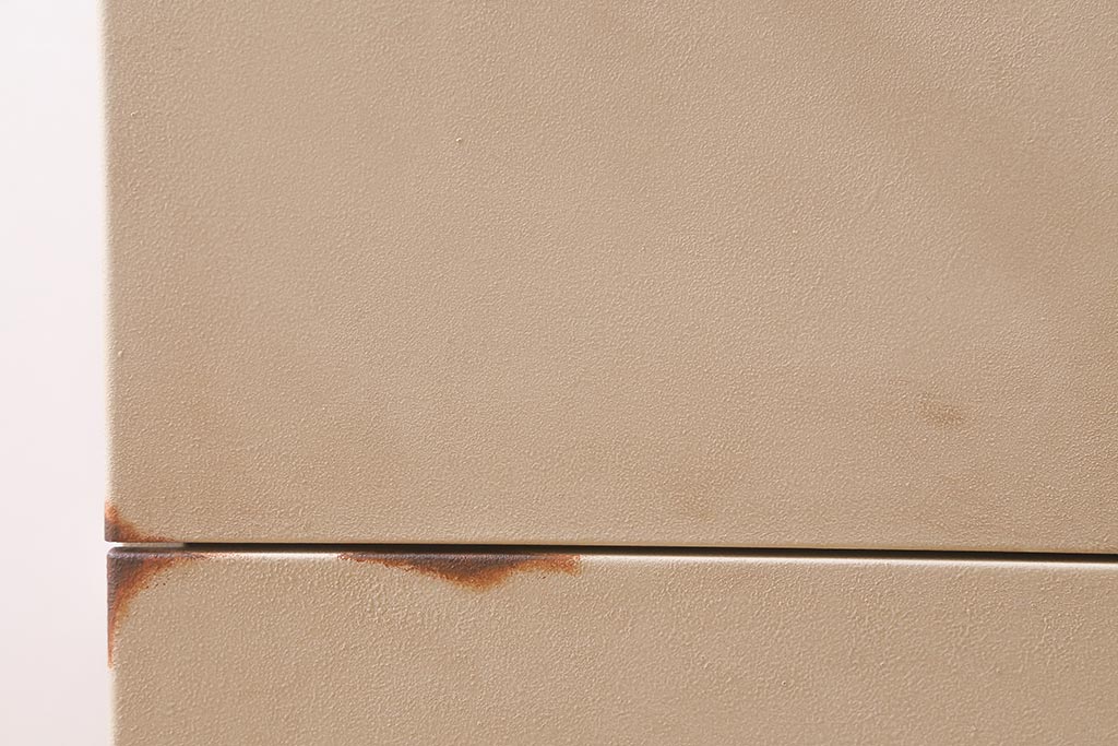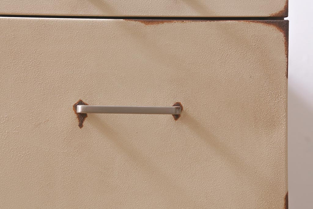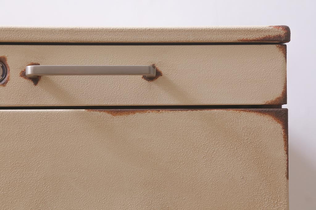 当店でラスティペイント(錆風ペイント)を施したお品です。ラスティペイント無しの同色と比べて、暗い色味に仕上がっておりますので画像をご参考ください。