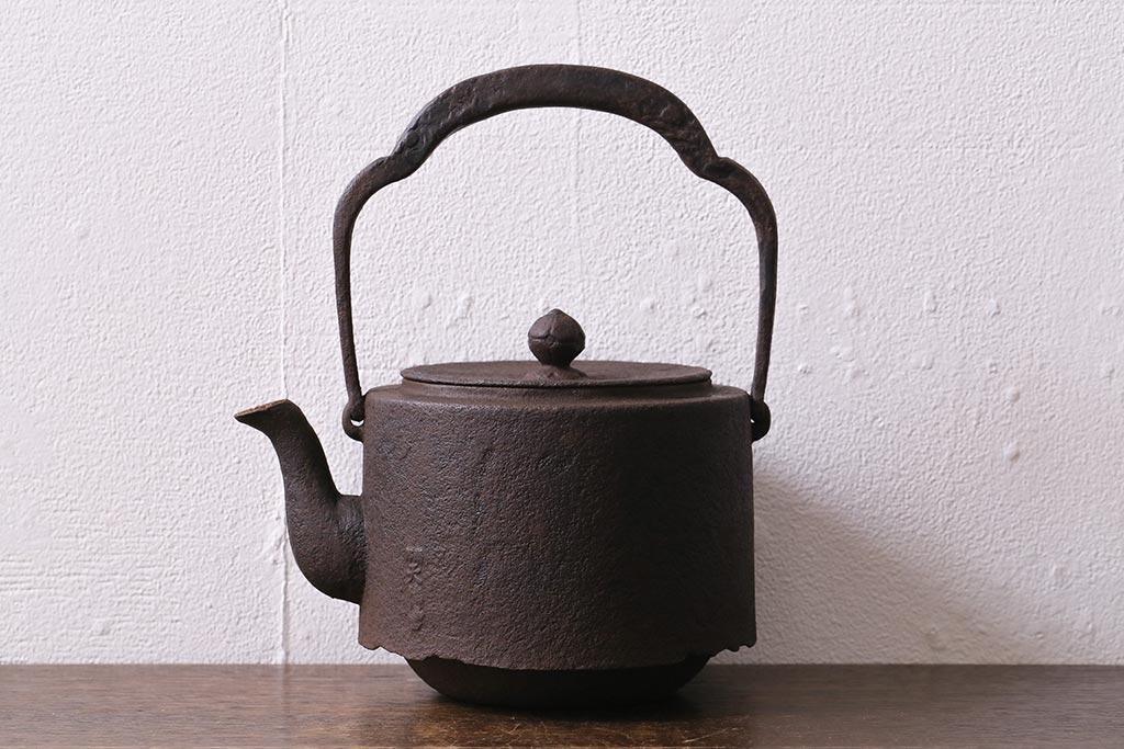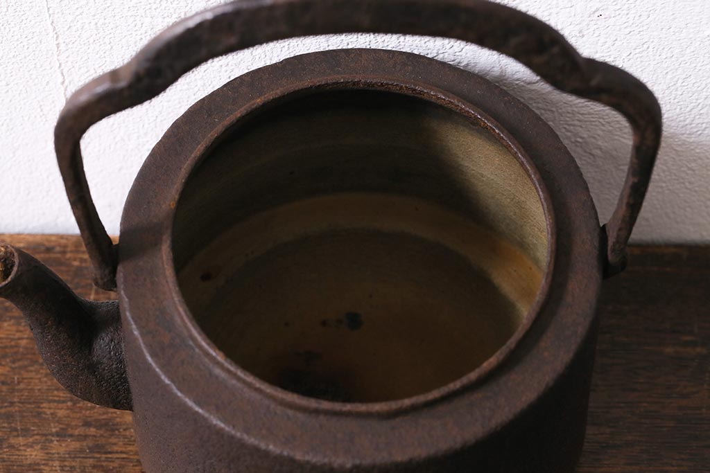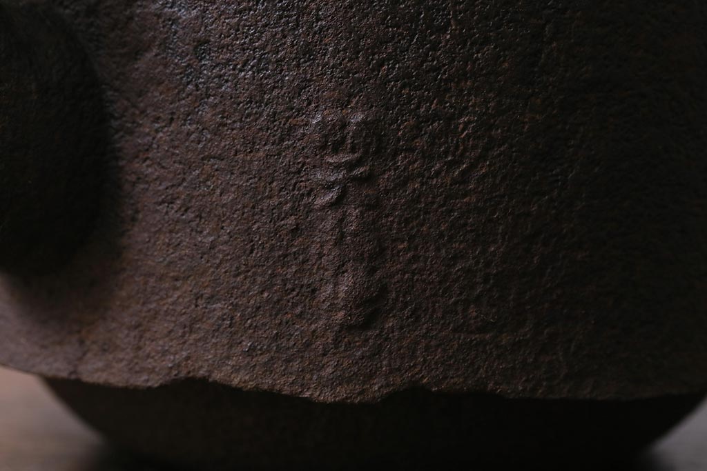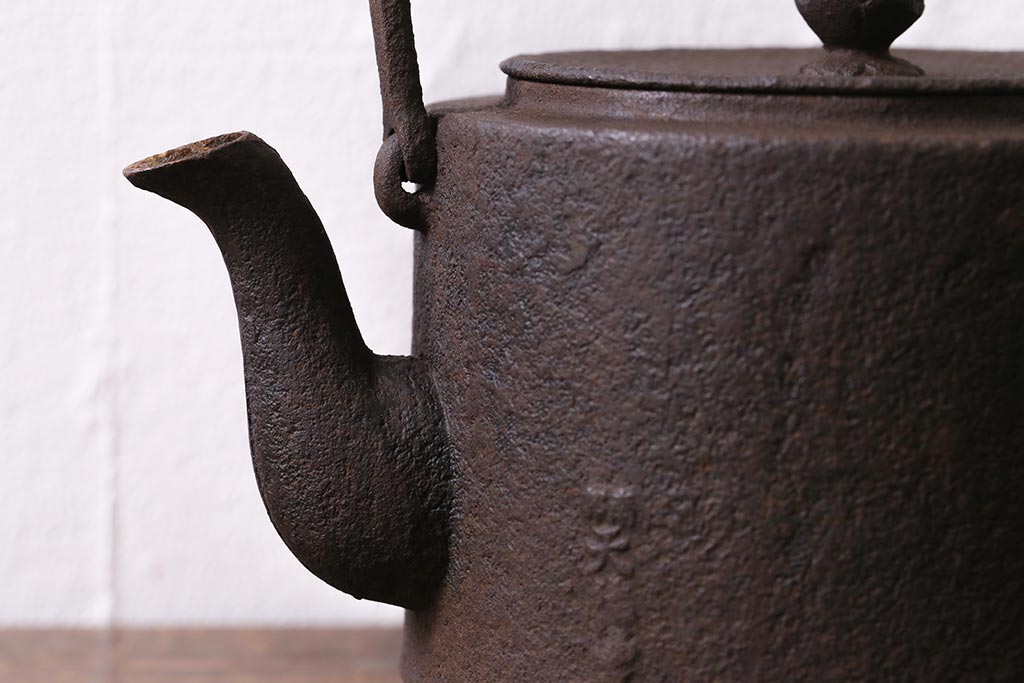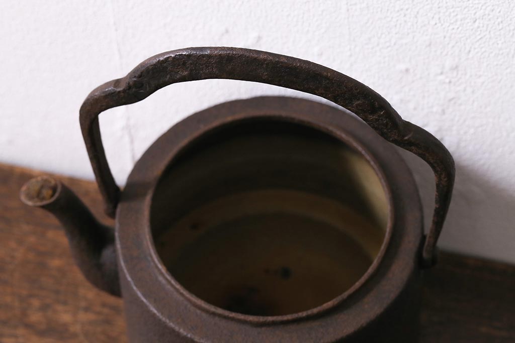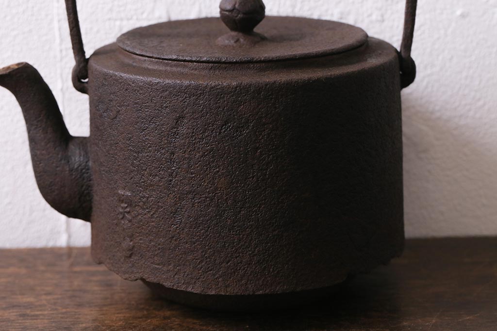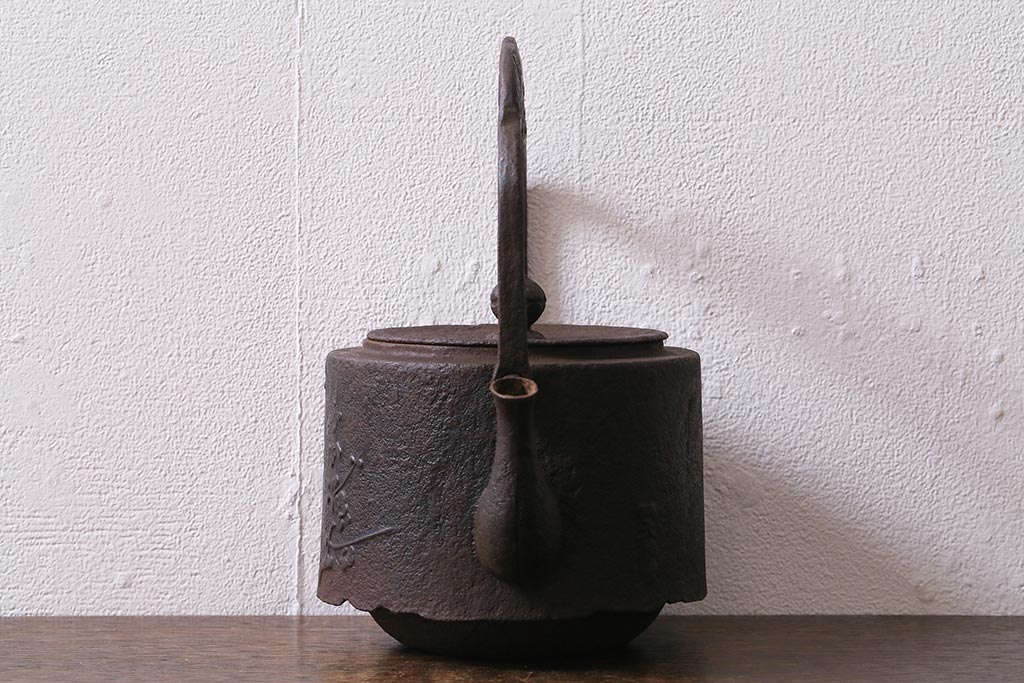 アンティーク雑貨 昭和初期 南部鉄器 天祐堂 梅の図 古い鉄瓶(鉄ビン、茶道具)(R-041132)