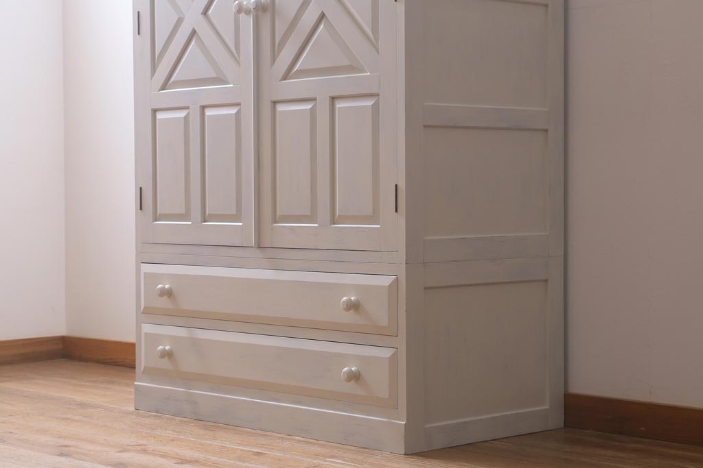 民芸家具 > ペイント家具 松本民芸家具 柔らかな色合いが魅力のD型洋服箪笥(ワードローブ、チェスト、キャビネット)(R-041721)