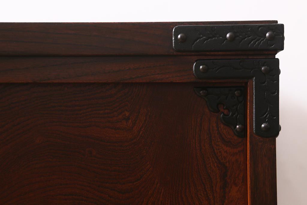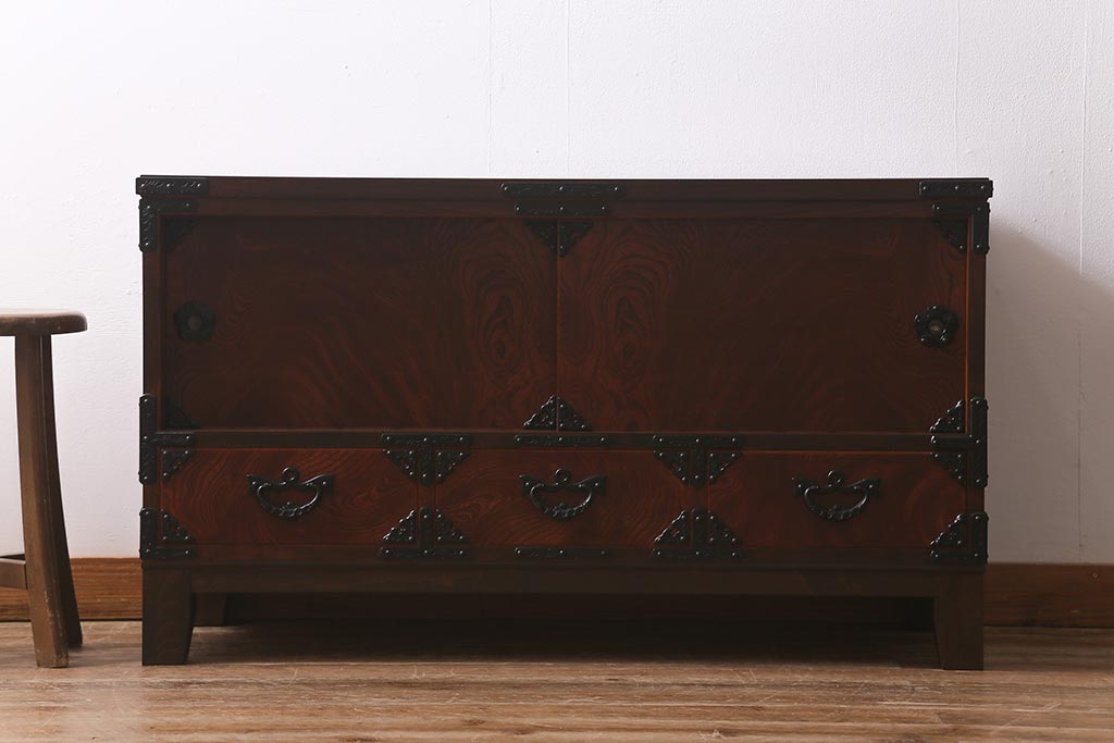 民芸家具 > 中古 伝統工芸 岩谷堂箪笥 天板リメイク・厚手栗無垢材 梅の花の引き手が上品なローボード(ローチェスト、戸棚、テレビボード、テレビ台)(R-041638)
