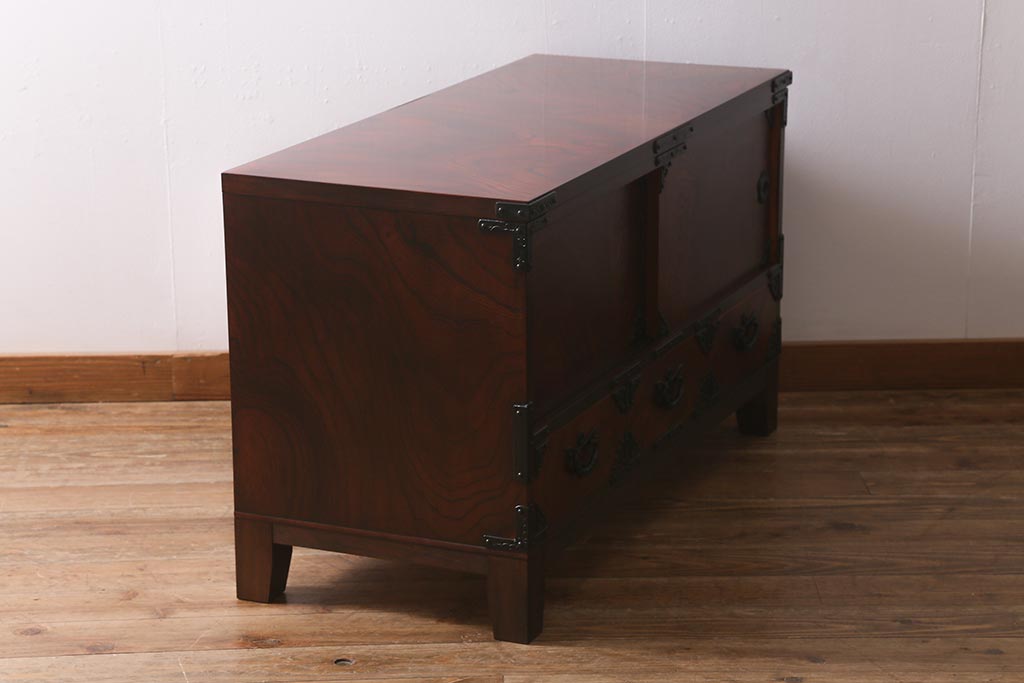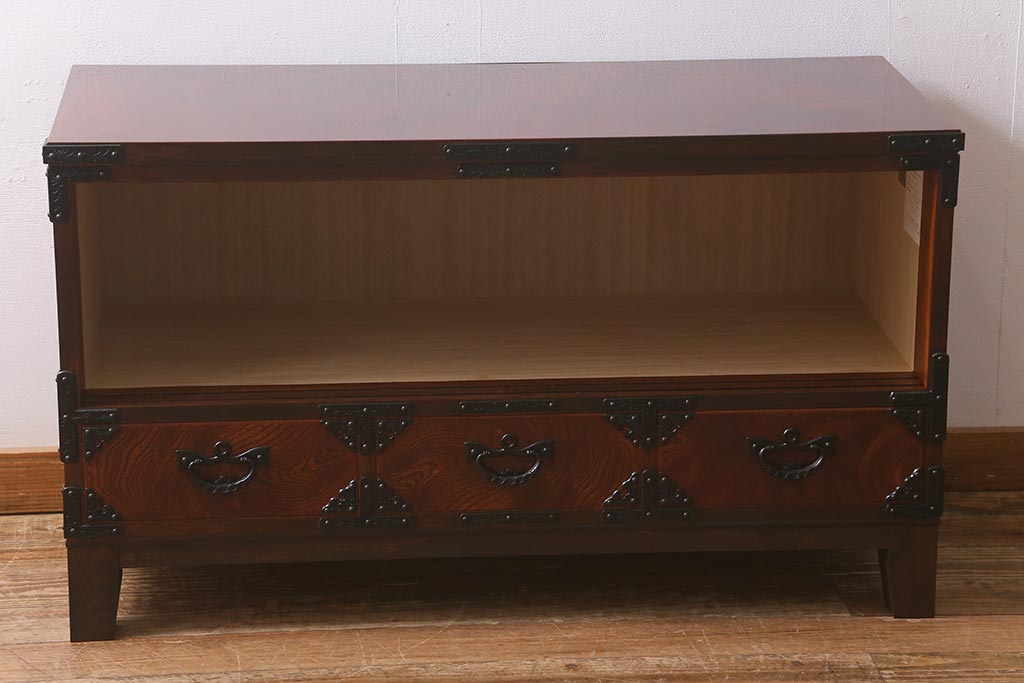 和箪笥 > 中古 伝統工芸 岩谷堂箪笥 天板リメイク・厚手栗無垢材 梅の花の引き手が上品なローボード(ローチェスト、戸棚、テレビボード、テレビ台)(R-041638)