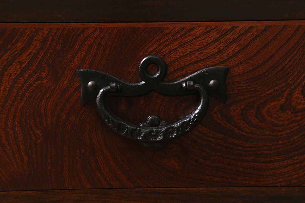 キャビネット・戸棚> テレビ台・ローボード > 中古 伝統工芸 岩谷堂箪笥 天板リメイク・厚手栗無垢材 梅の花の引き手が上品なローボード(ローチェスト、戸棚、テレビボード、テレビ台)(R-041638)