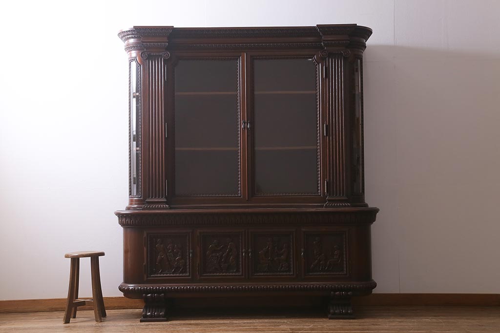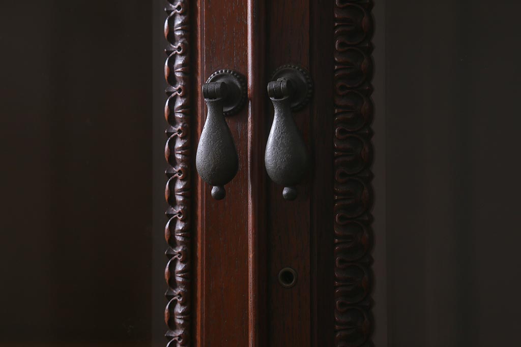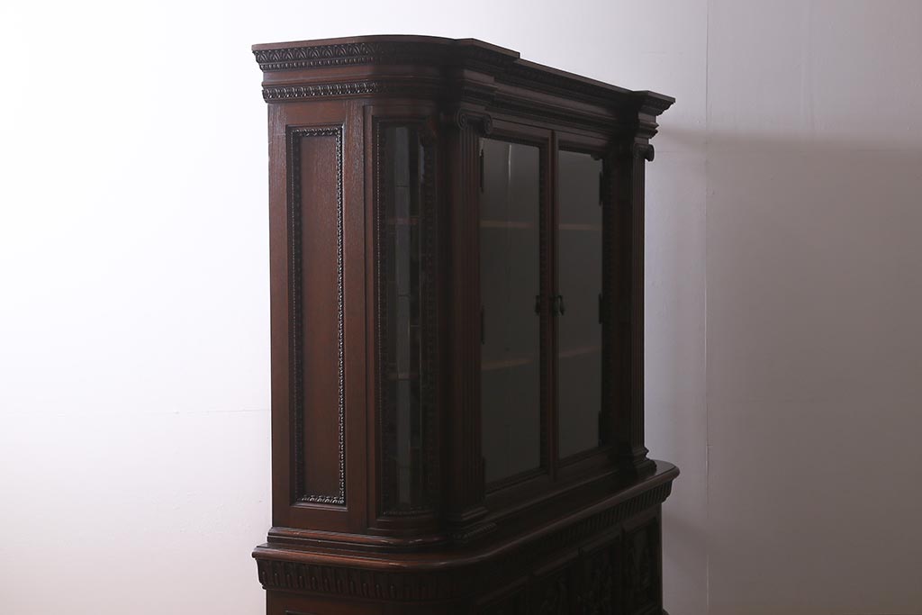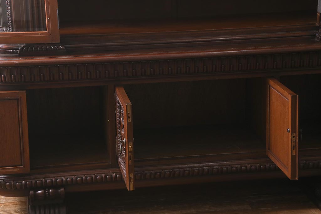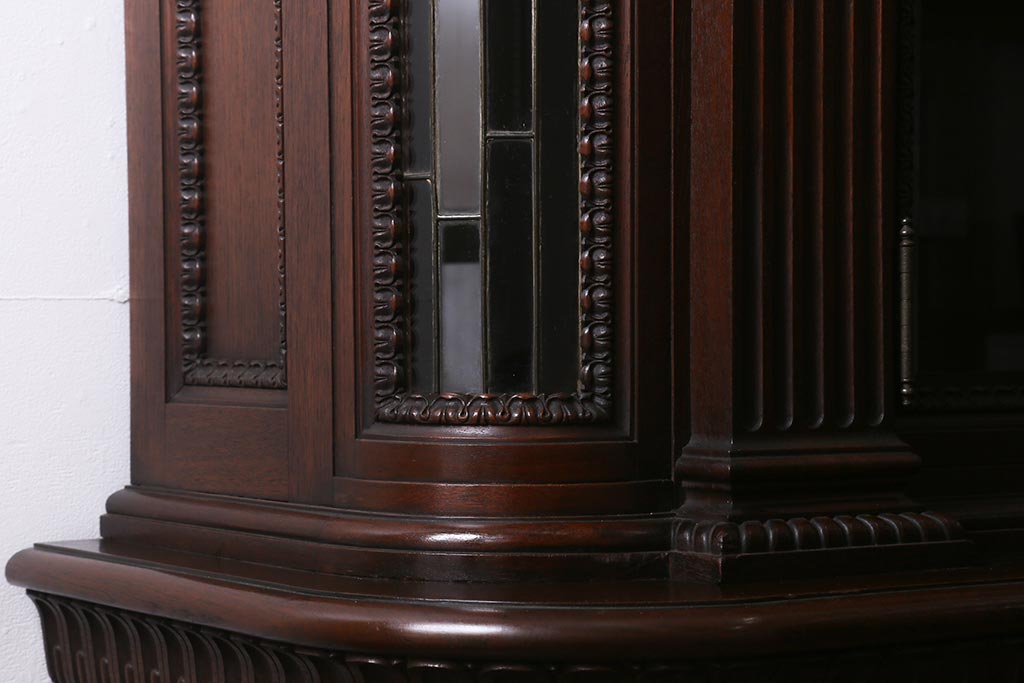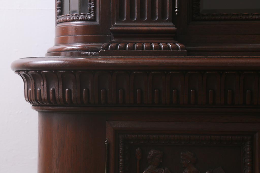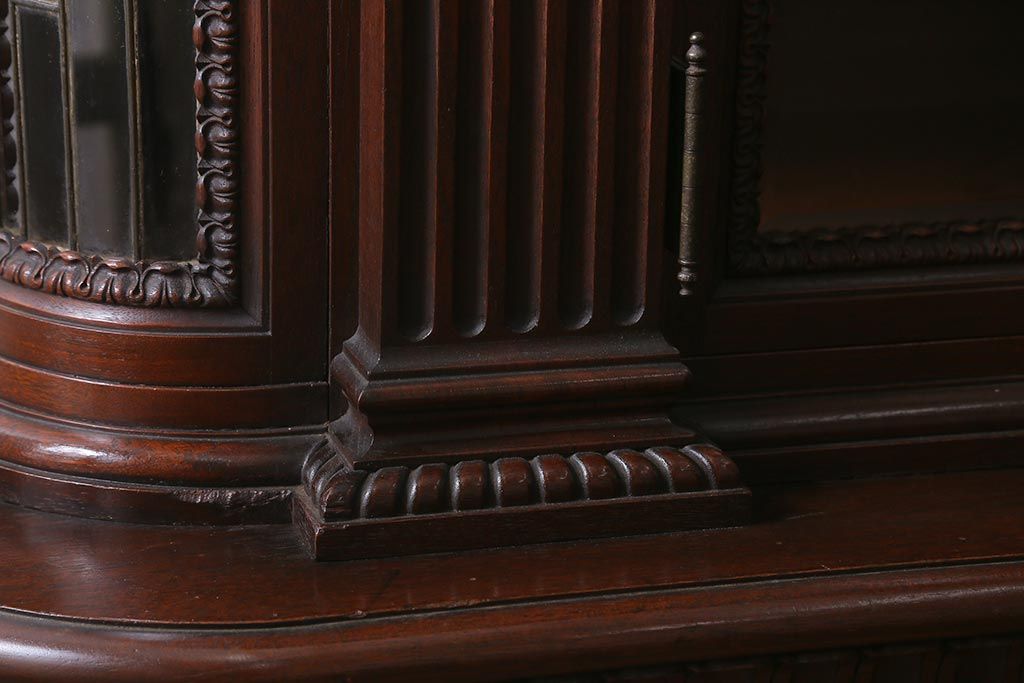 アンティーク家具 フランスアンティーク マホガニー材 芸術作品のような彫刻が見事な飾り棚(食器棚、カップボード、収納棚)(R-041633)です。