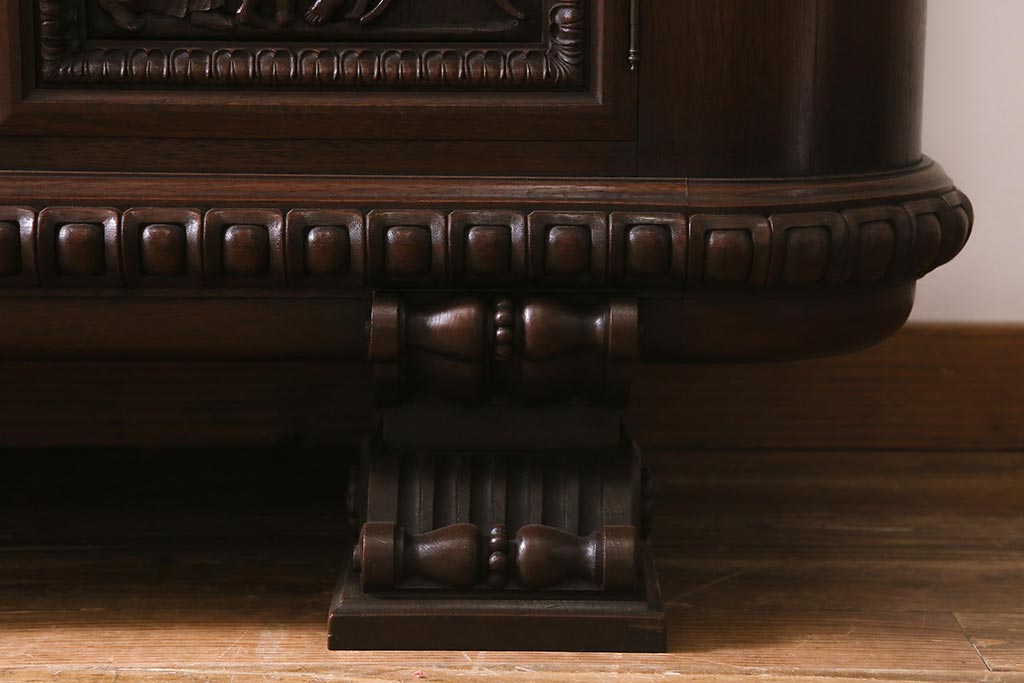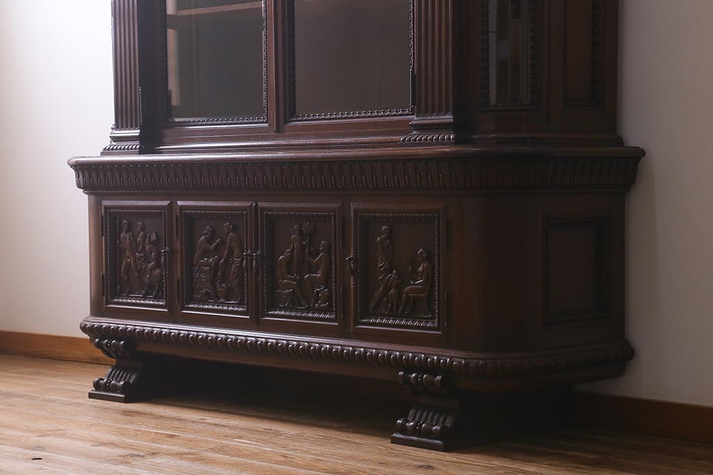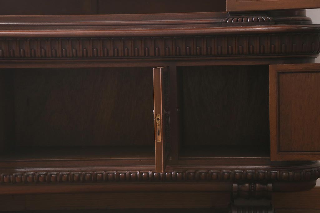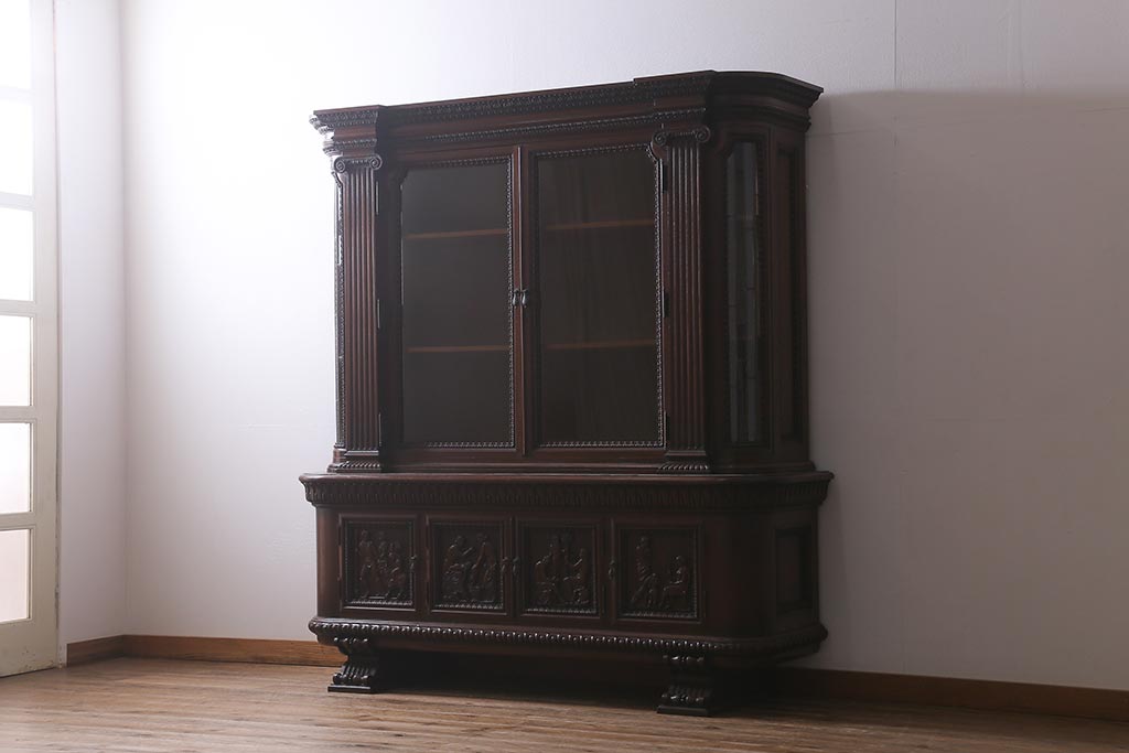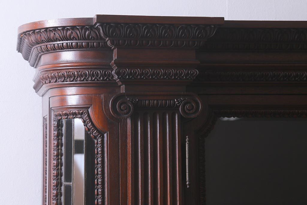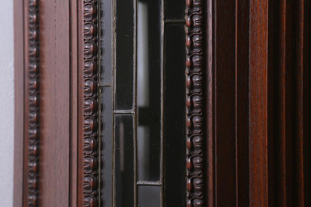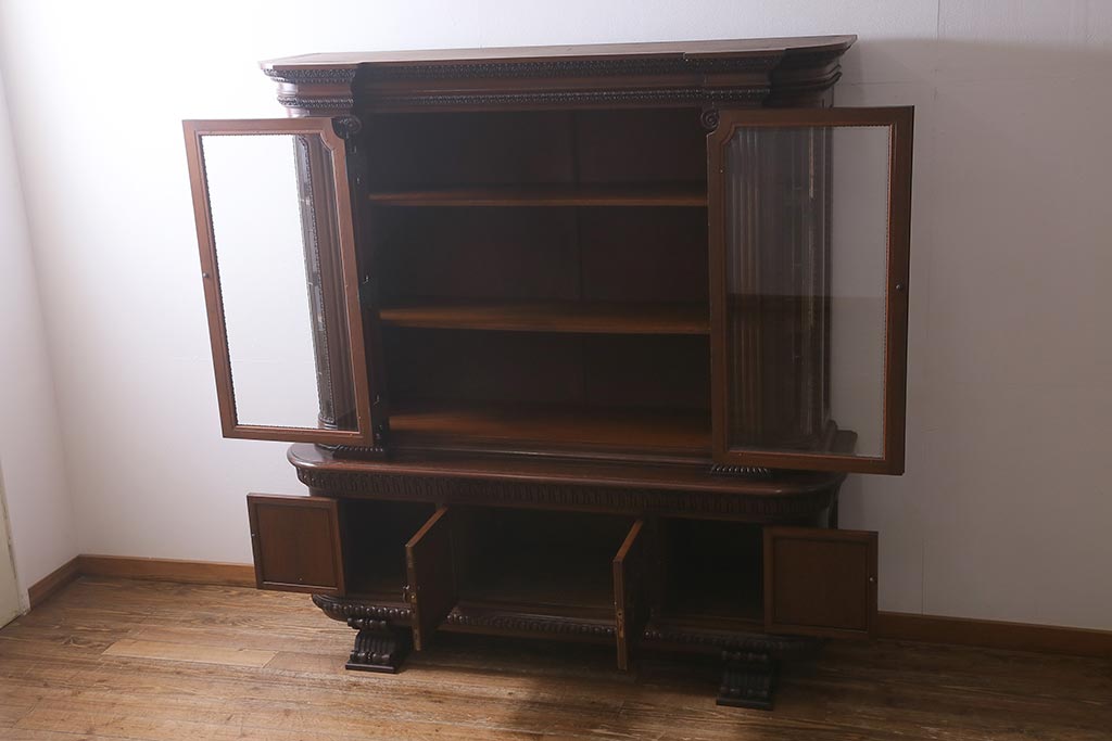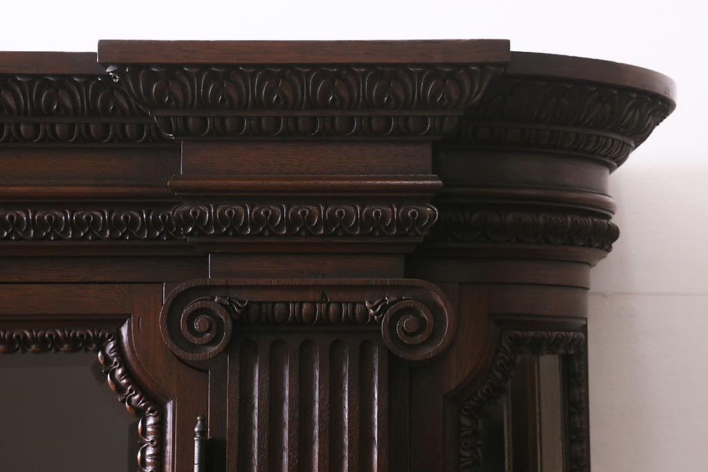 アンティーク家具 フランスアンティーク マホガニー材 芸術作品のような彫刻が見事な飾り棚(食器棚、カップボード、収納棚)(R-041633)です。