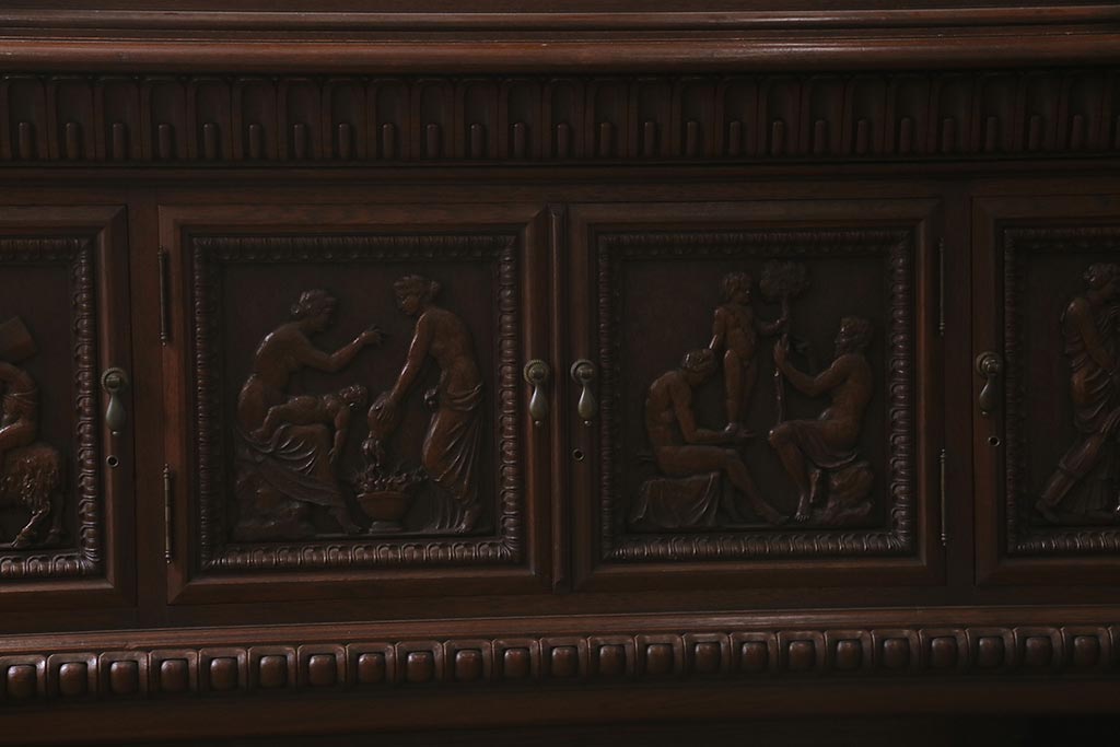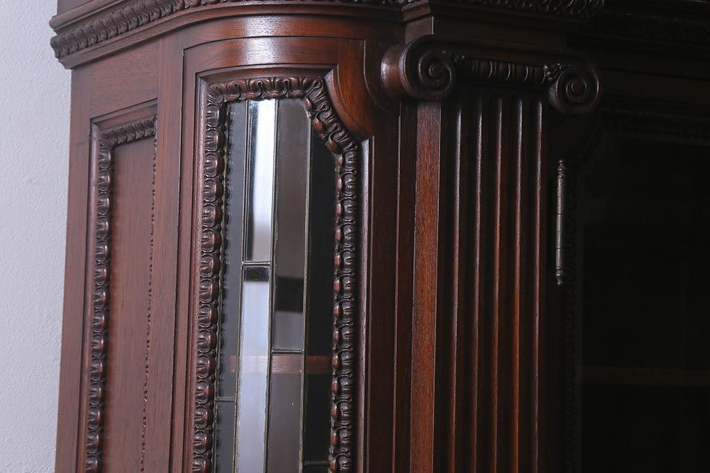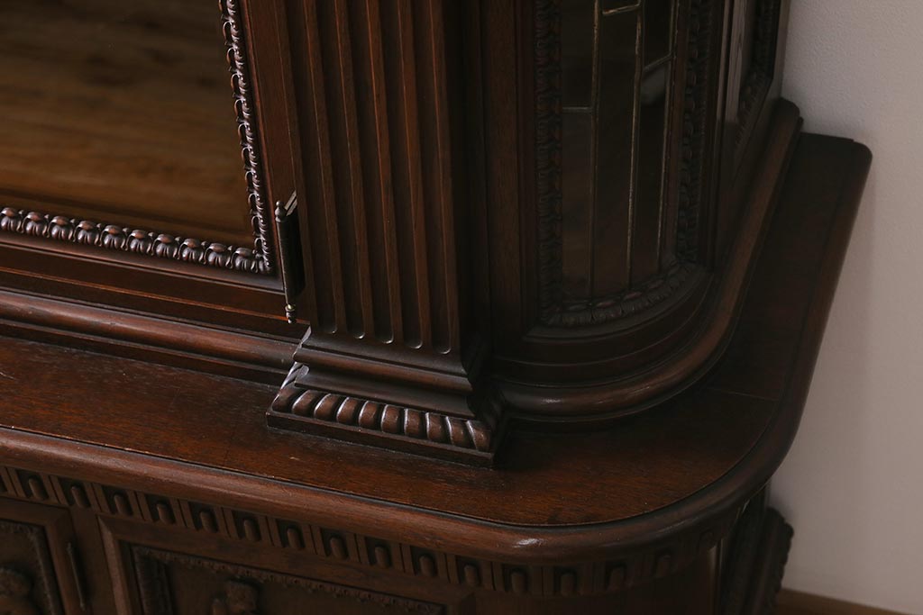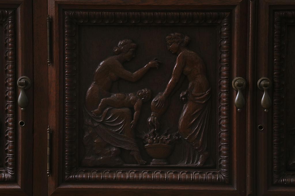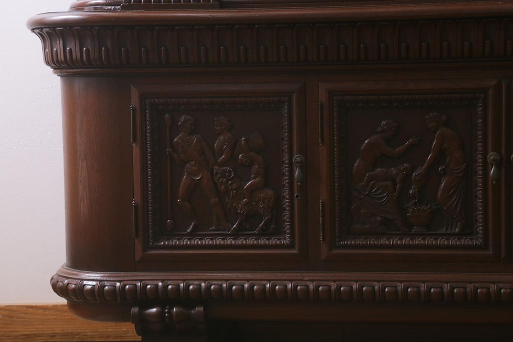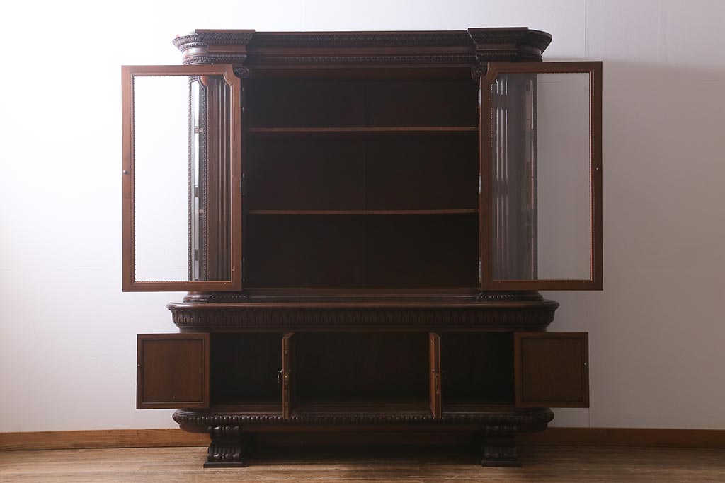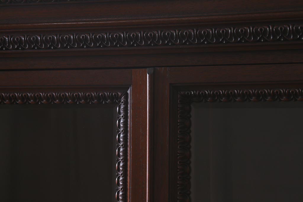 アンティーク家具 フランスアンティーク マホガニー材 芸術作品のような彫刻が見事な飾り棚(食器棚、カップボード、収納棚)(R-041633)です。