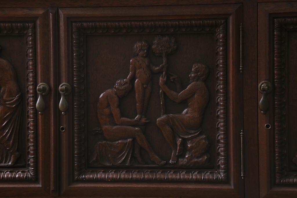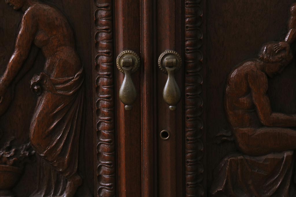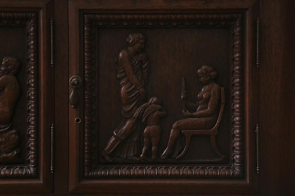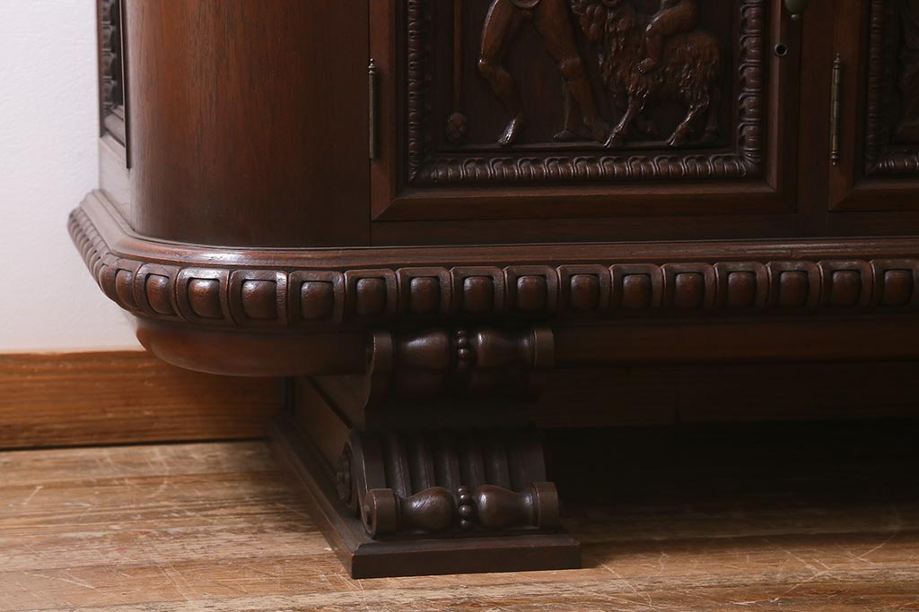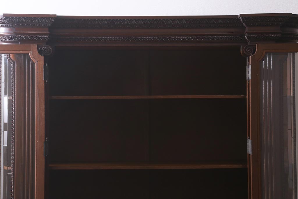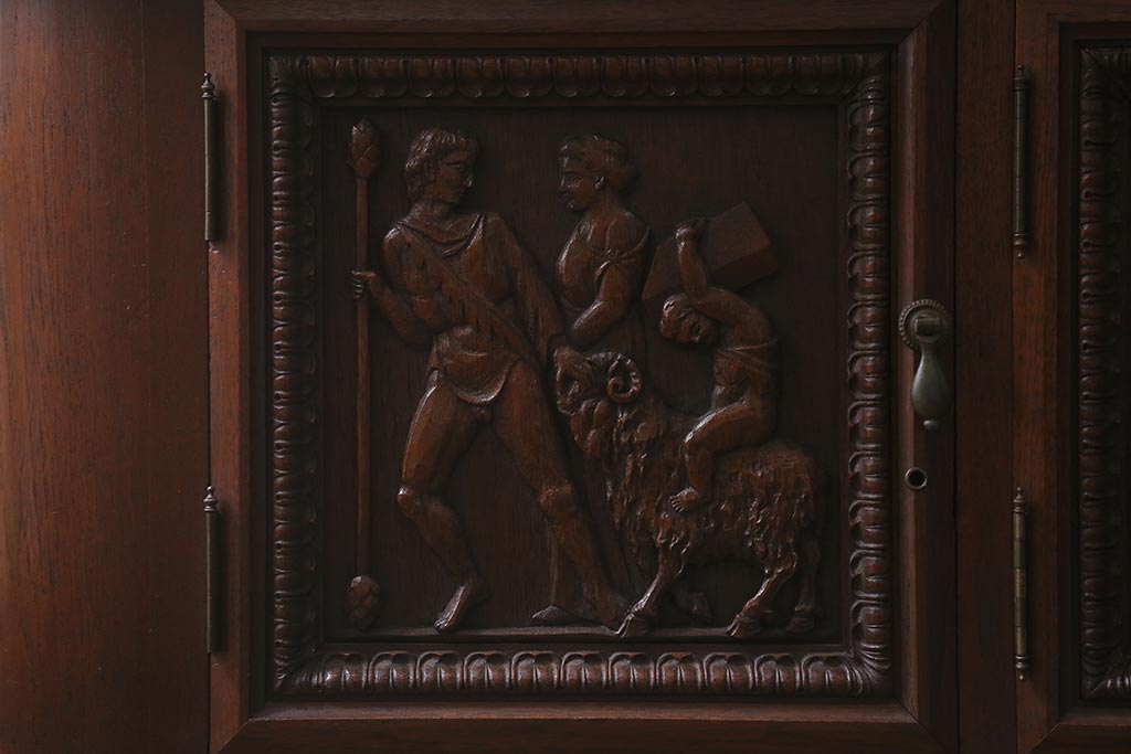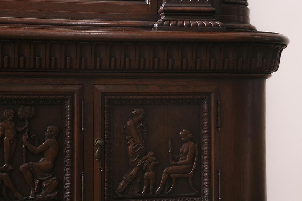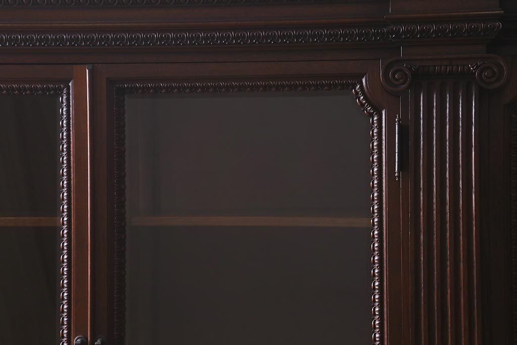 アンティーク家具 フランスアンティーク マホガニー材 芸術作品のような彫刻が見事な飾り棚(食器棚、カップボード、収納棚)(R-041633)です。