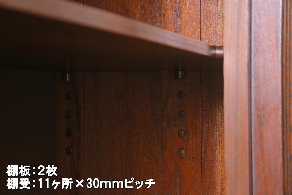 棚板は2枚あります。棚受けは11ヶ所、30mmピッチで調整できます。棚幅サイズのものが1枚の作りです。