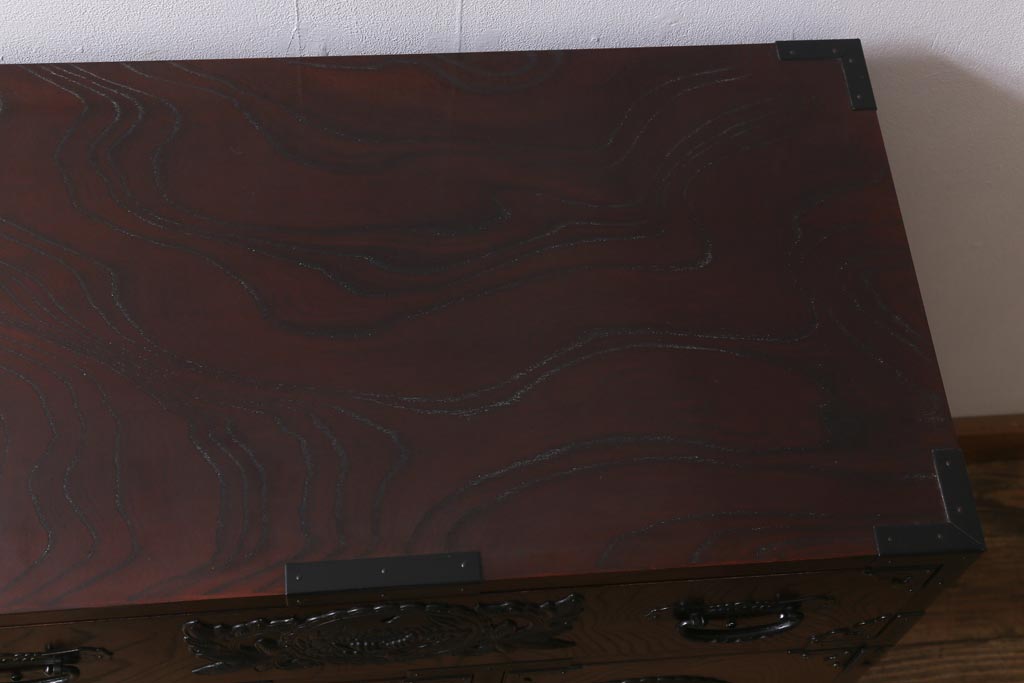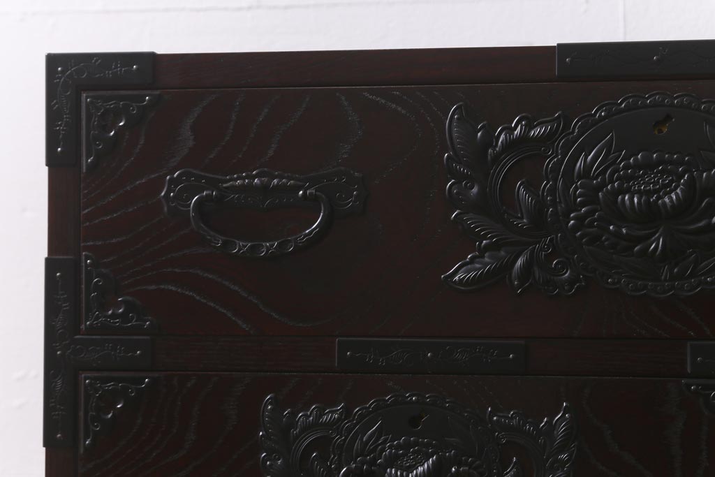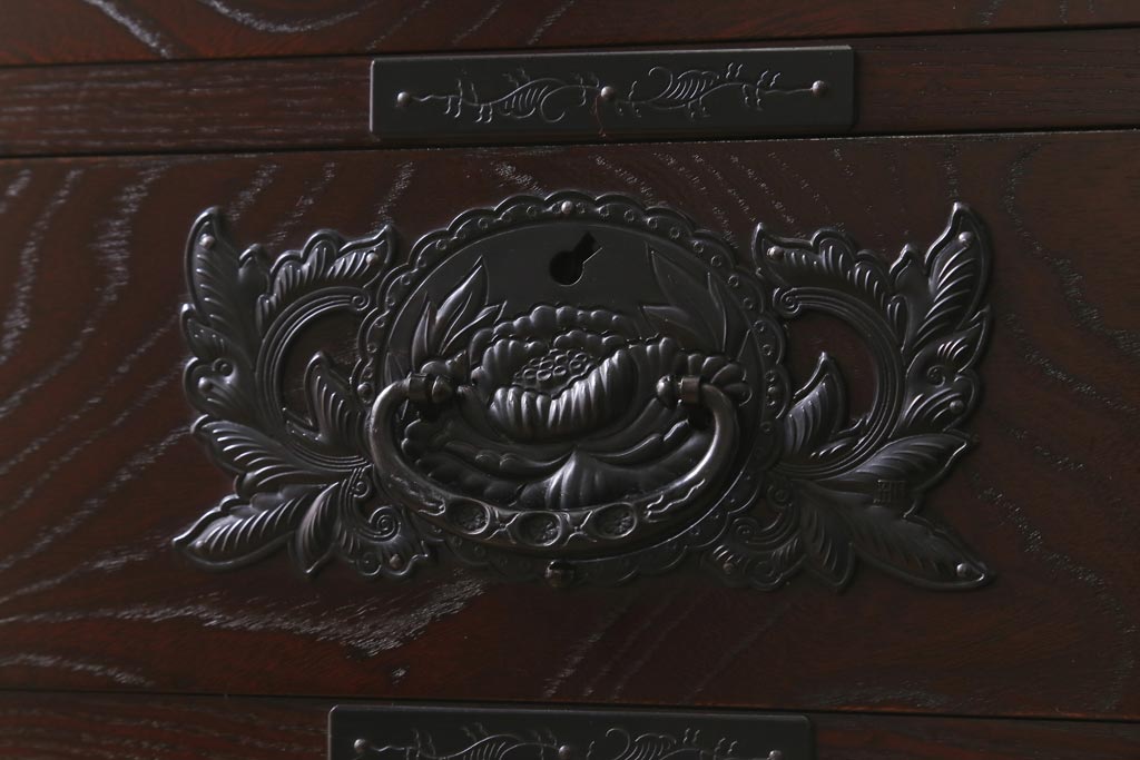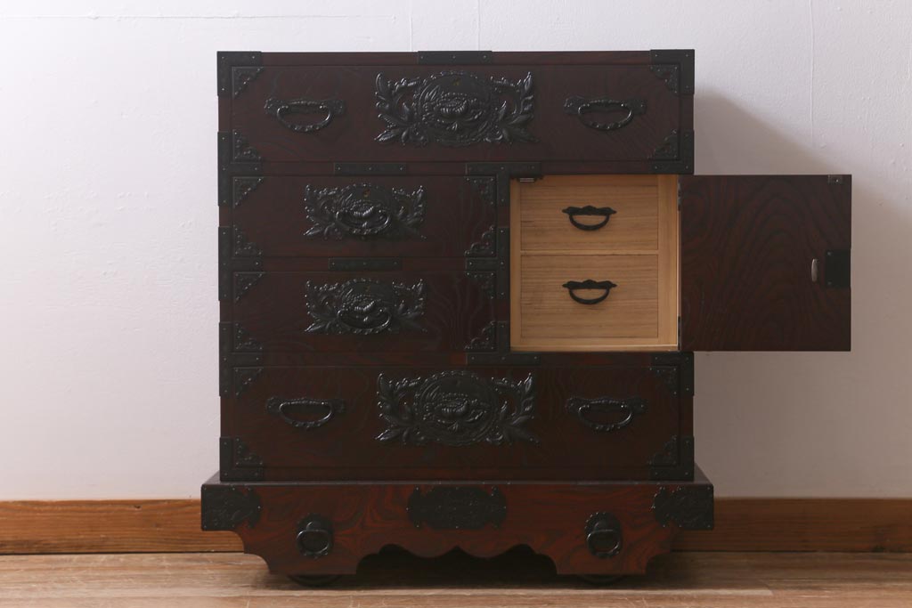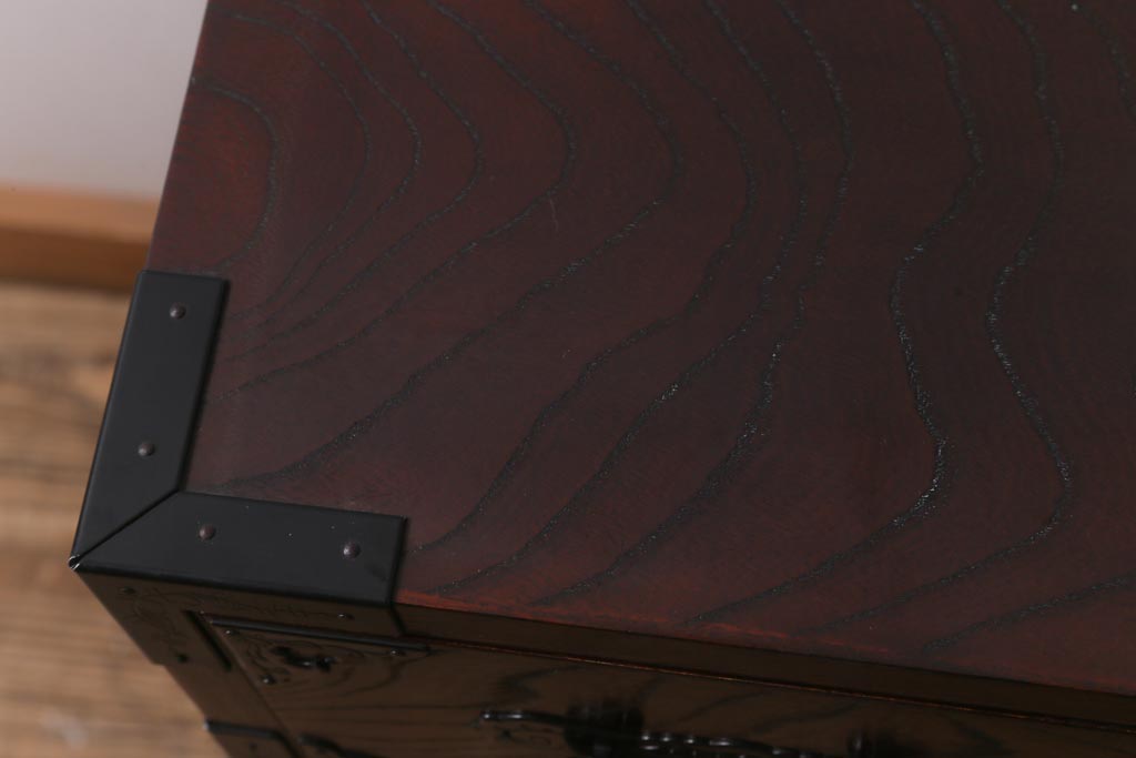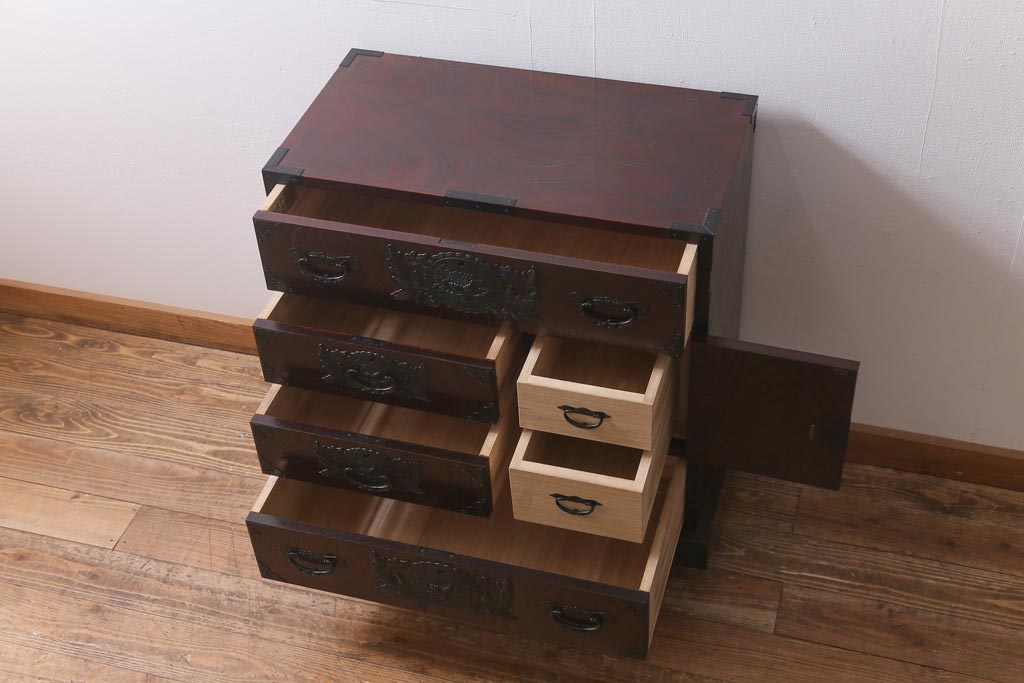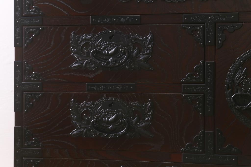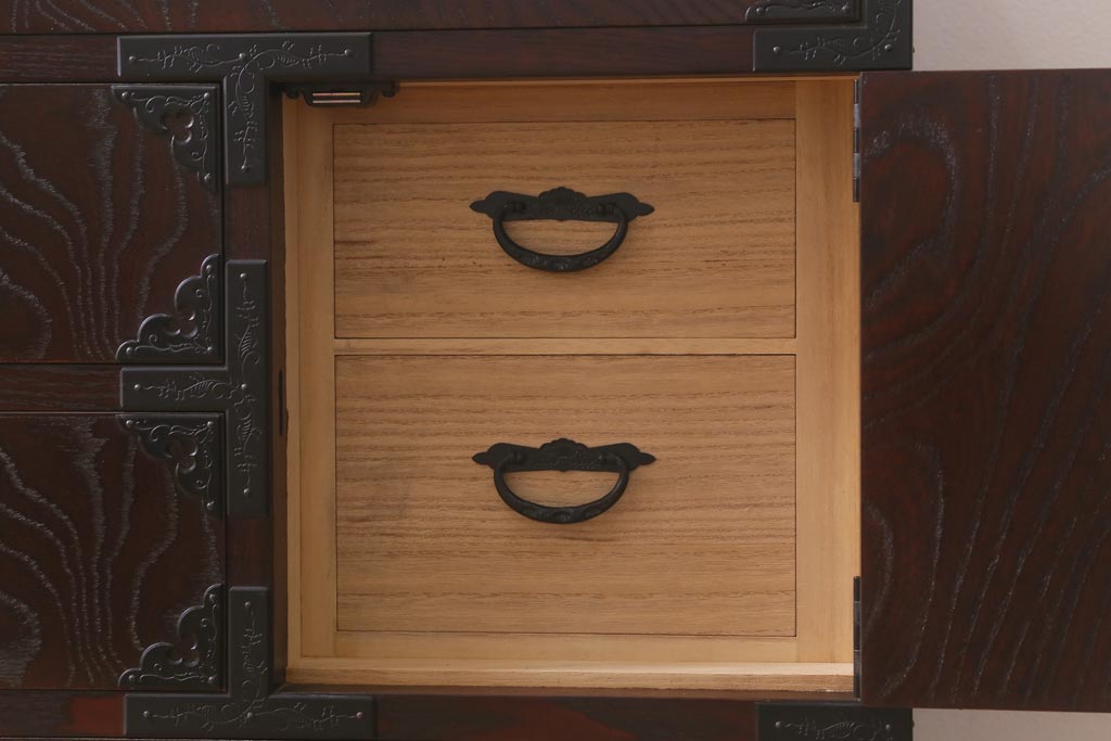 和箪笥 > 中古 欅産業 漆塗り 仙台箪笥 KC-18 力強い杢目が目を引く中型車箪笥(小タンス、チェスト、引き出し)(R-041692)