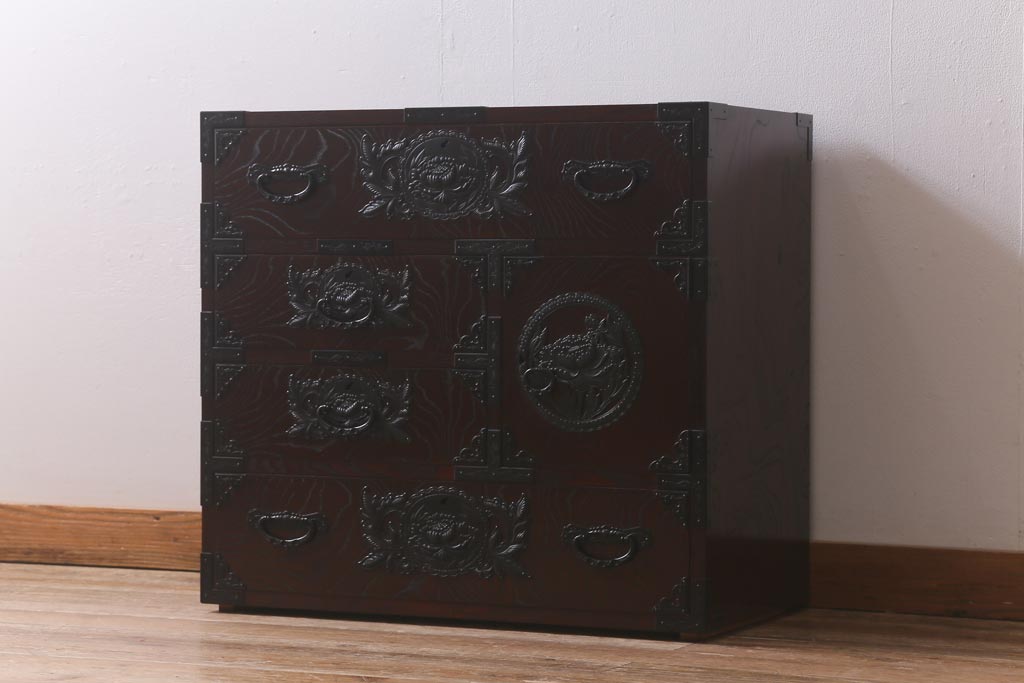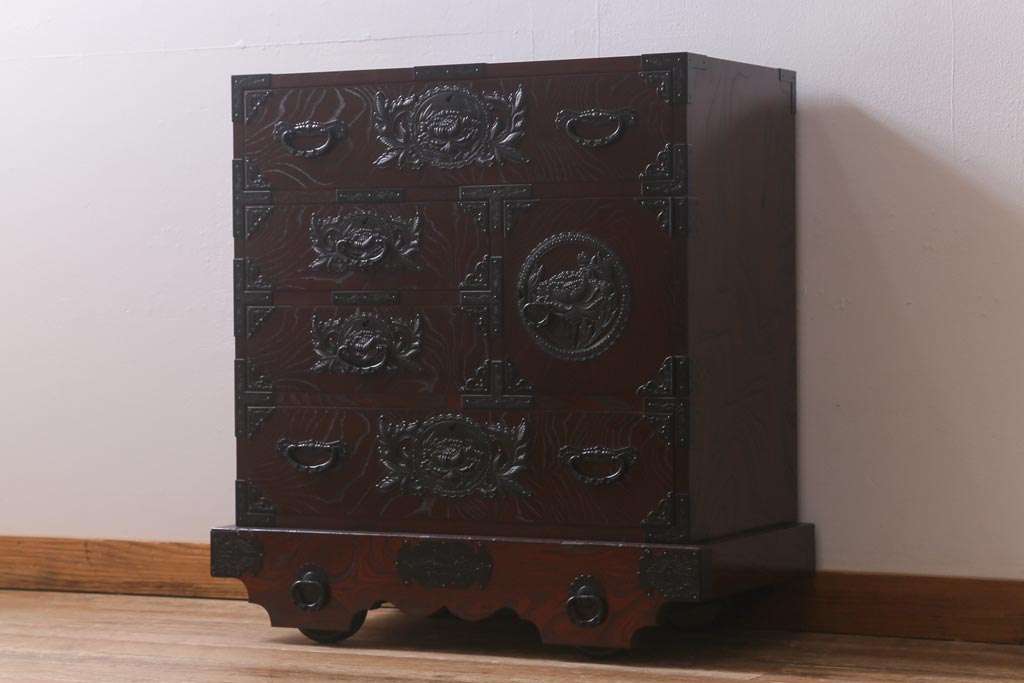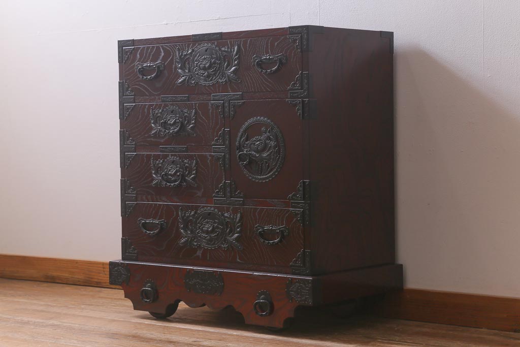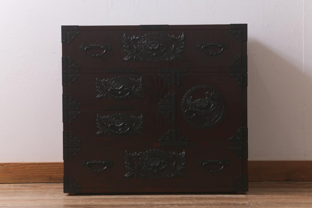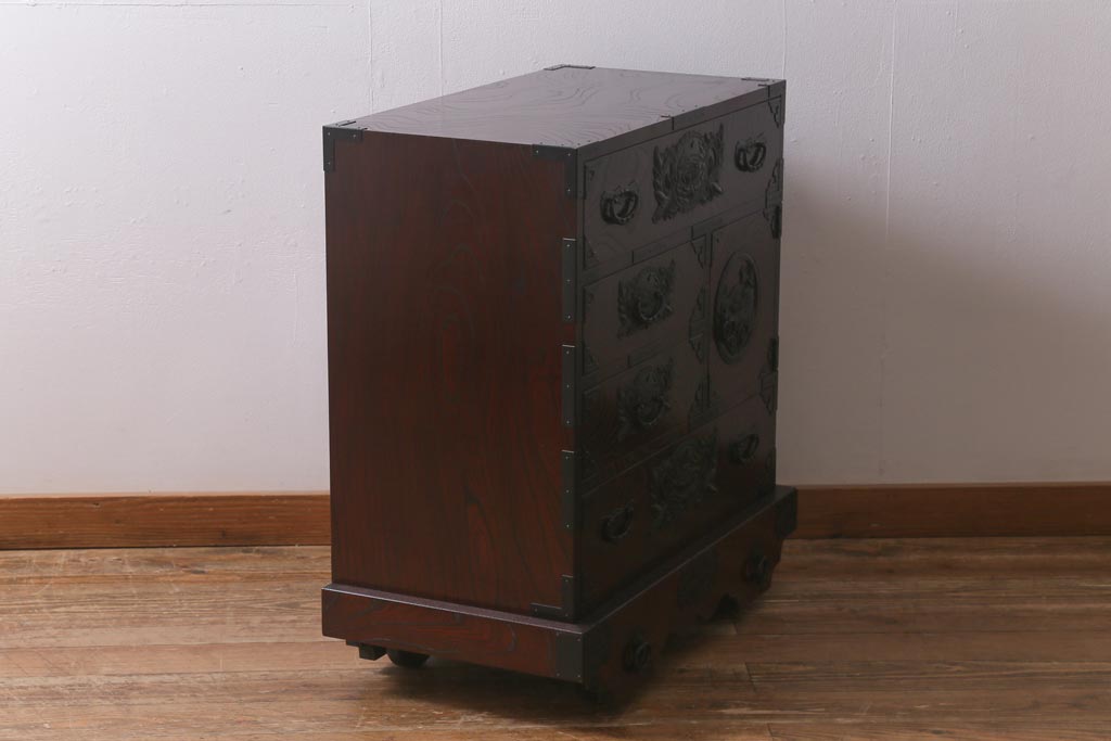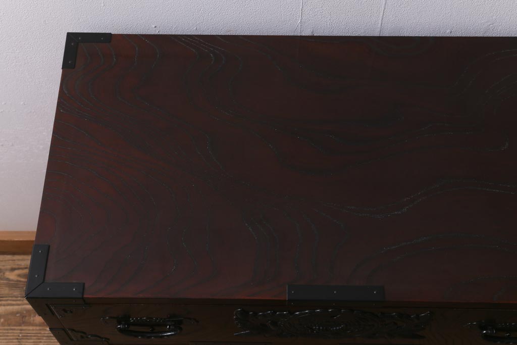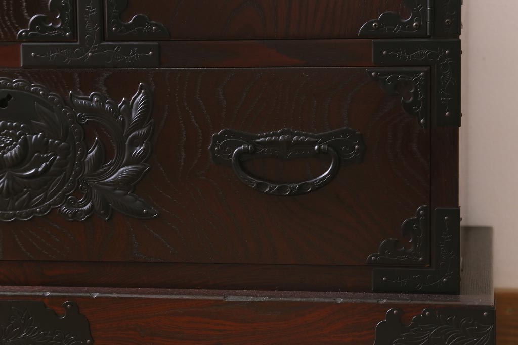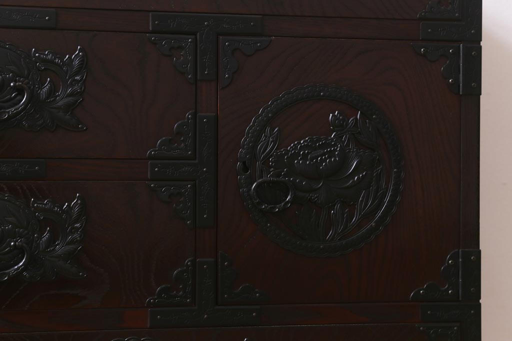 和箪笥 > 中古 欅産業 漆塗り 仙台箪笥 KC-18 力強い杢目が目を引く中型車箪笥(小タンス、チェスト、引き出し)(R-041692)