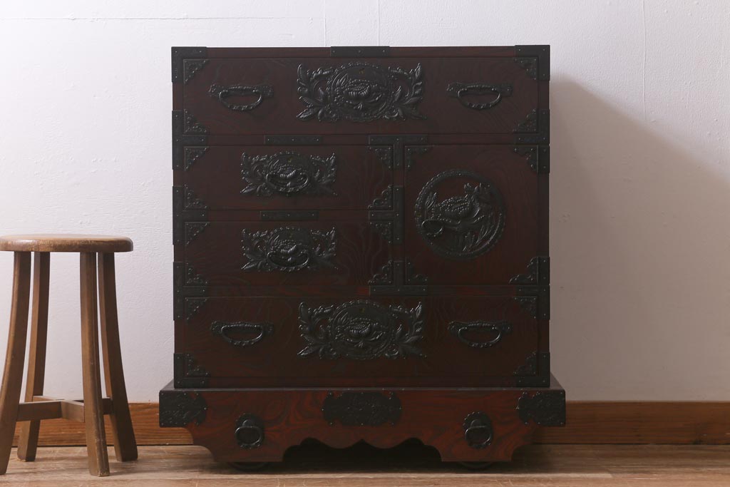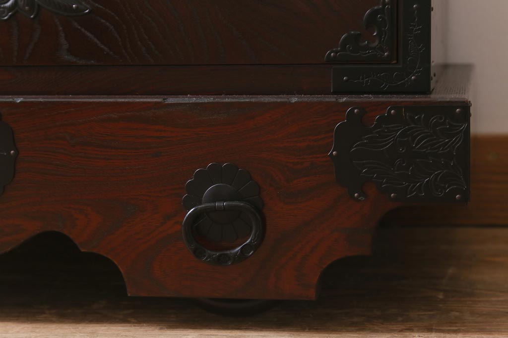 和箪笥> 車箪笥 > 中古 欅産業 漆塗り 仙台箪笥 KC-18 力強い杢目が目を引く中型車箪笥(小タンス、チェスト、引き出し)(R-041692)