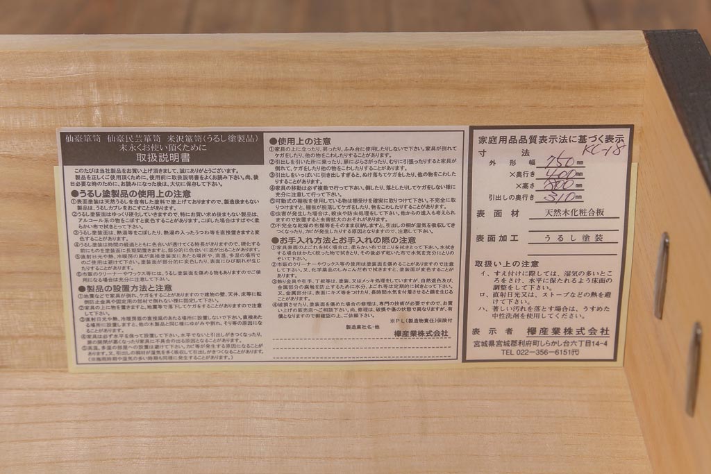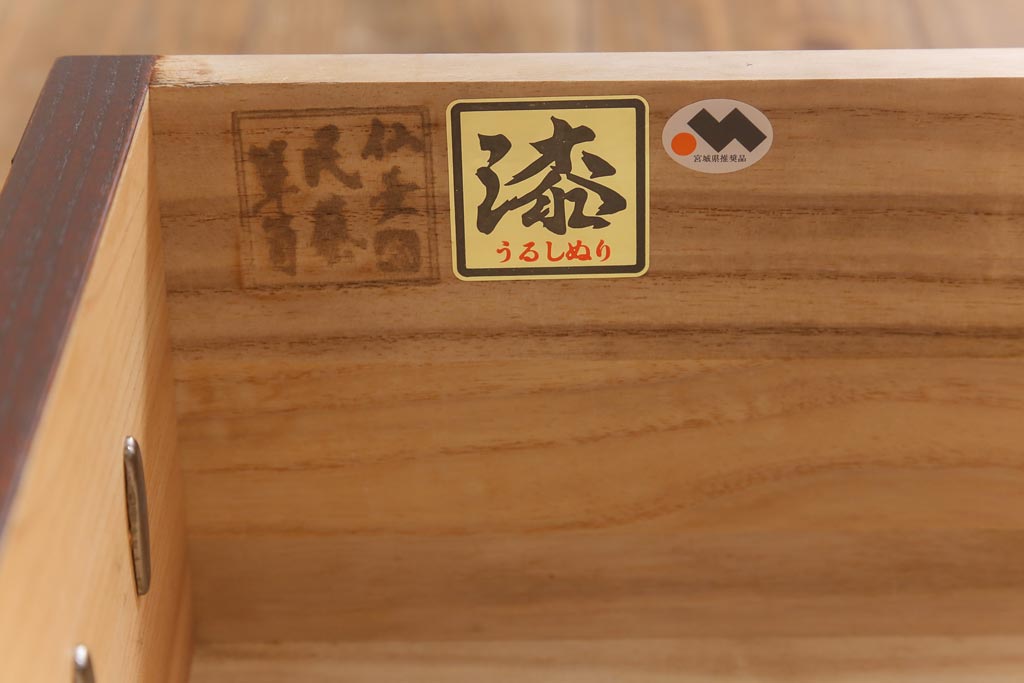 中古 欅産業 漆塗り 仙台箪笥 KC-18 力強い杢目が目を引く中型車箪笥(小タンス、チェスト、引き出し)(R-041692)